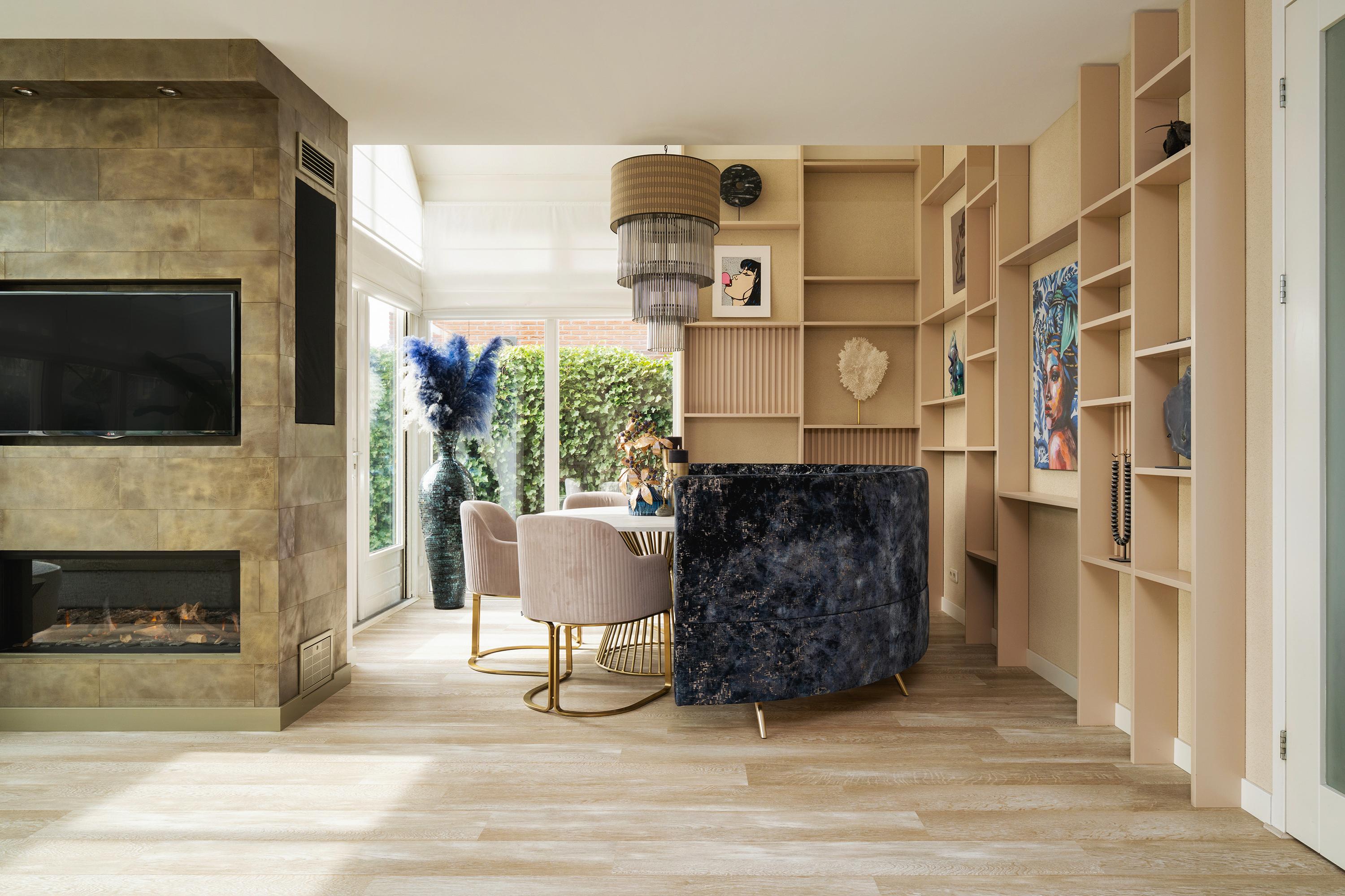 Entrance via the hall with meter cupboard, wardrobe, toilet, and staircase. From the hall you reach the spacious and bright living room at the rear, with a beautiful view of the garden and the water. The living room is connected to the dining room and the open kitchen at the front. The kitchen is luxuriously equipped with an extra-large refrigerator and freezer and a Boretti stove with a large oven – a dream for cooking enthusiasts. The bar with 4 stools is ideal for breakfast or for use with guests while cooking.