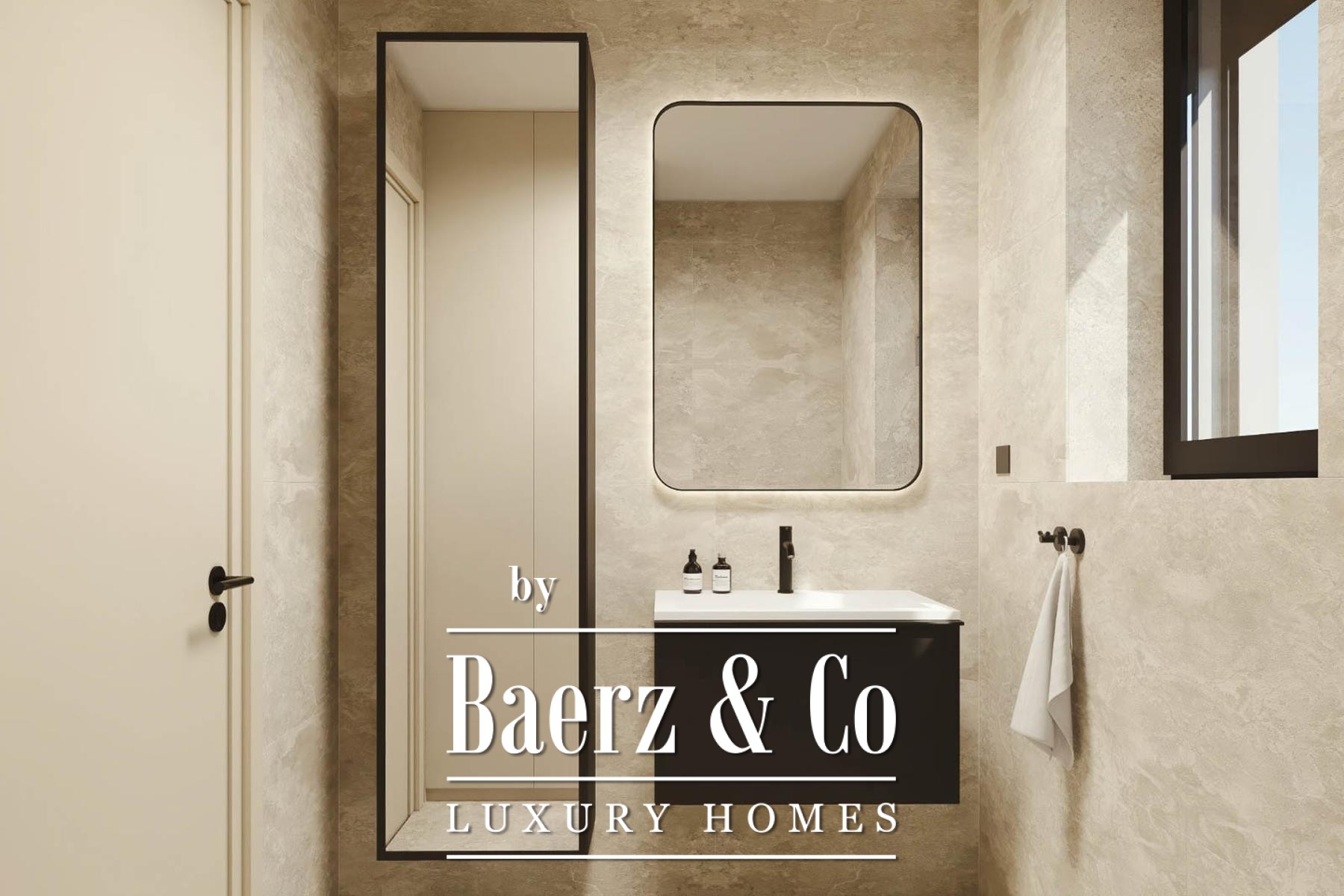 High-quality materials define the architecture, from Wicona aluminium joinery, triple-glazed tempered glass, and Rehau PVC systems, to Mariner Italian ceramic tiles and Hansgrohe bathroom equipment. Underfloor heating, a multi-split cooling system by Mitsubishi Electric, and anti-slip exterior tiles ensure lasting comfort. Completion is scheduled for June 2026.
