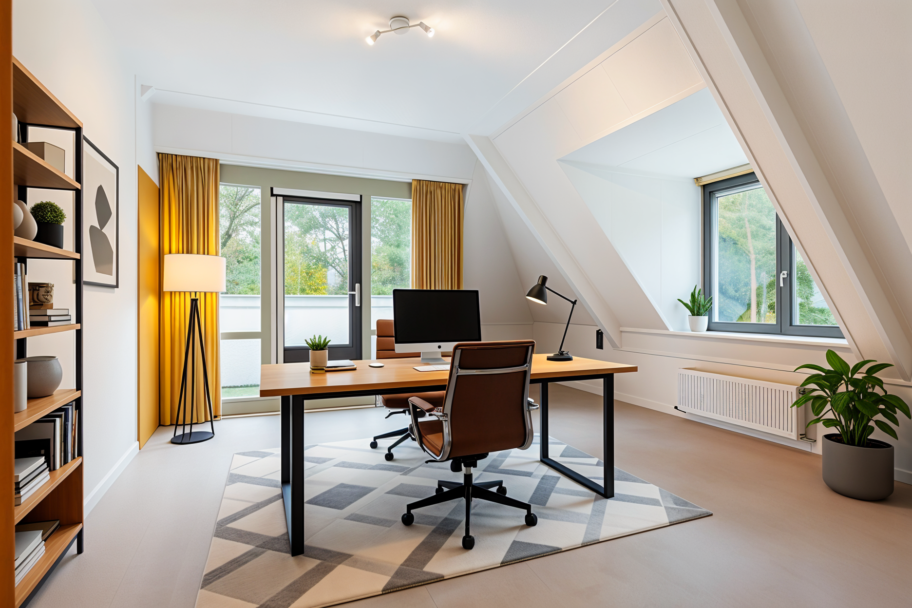 Through double French doors, you access the spacious south-facing roof terrace of 28 m². Here, you can enjoy the sun all day long and take in the magnificent views across the park. The terrace easily accommodates a large lounge set, dining table and even an outdoor kitchen if desired. An electrically operated awning with wind and rain sensors provides shade when needed.