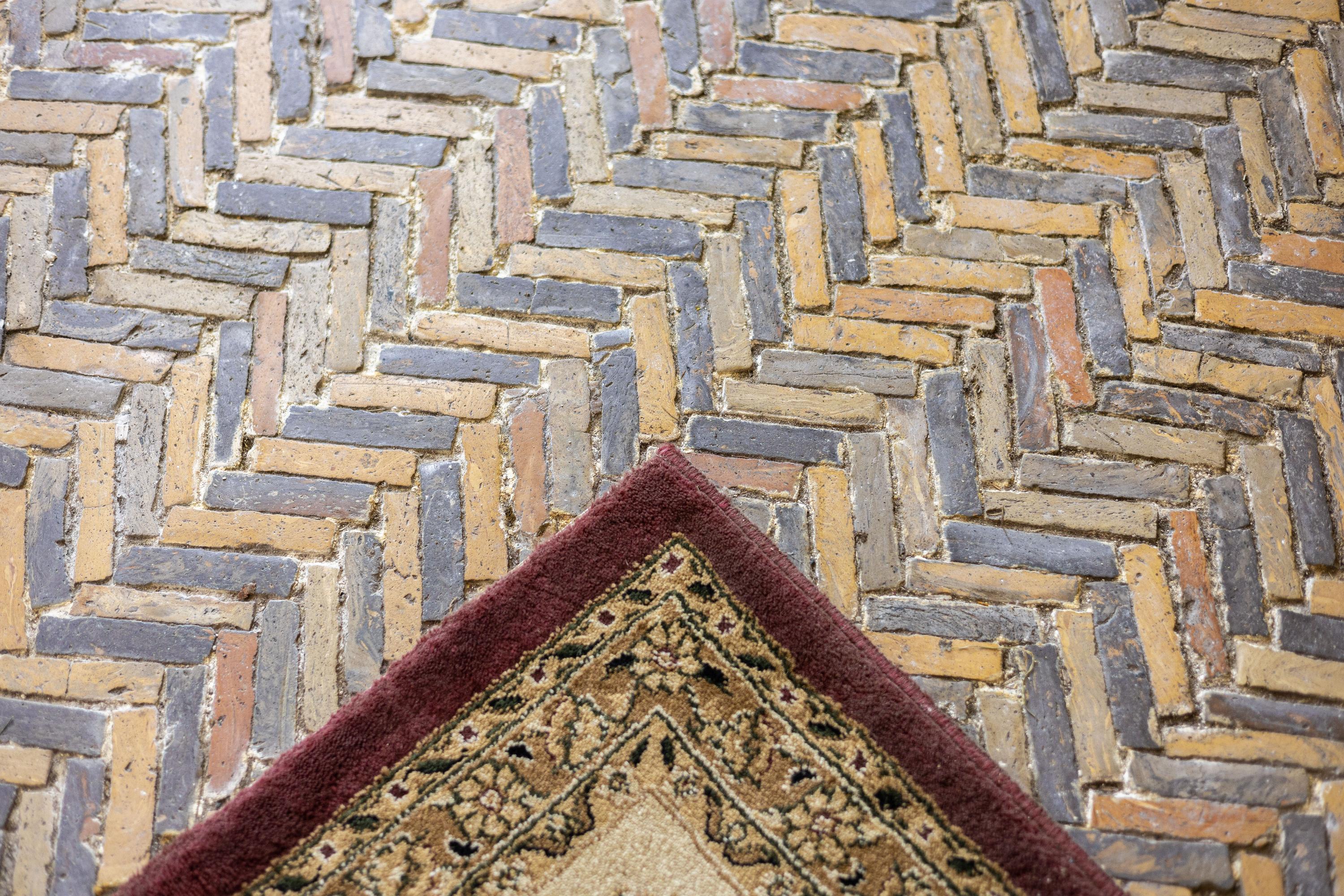 On the ground floor you will find an entry hall with stairs, a spacious kitchen with access to the cellar and a magnificent monumetal living room with an original fireplace, unique earthenware floor and high ceilings. There are also three rooms, one currently used as a temporary bathroom and one as an office. Between the two wings of the farmhouse, there is an additional shower, a storage room with washing machine and dryer connections and access to a cozy patio.