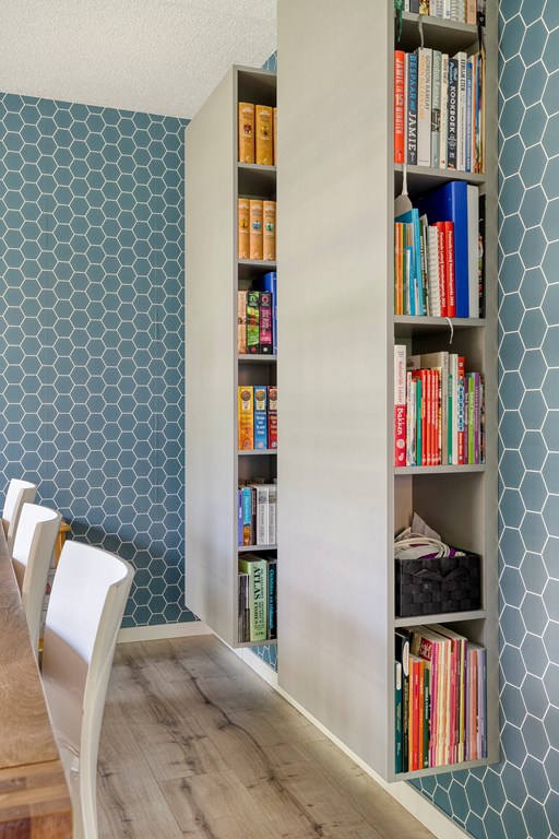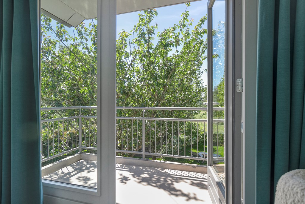 This generous living room is the heart of the home, with an open view towards the floodplains. Large windows allow abundant daylight, giving the space an open, airy feel. The flexible layout offers plenty of options for a cosy seating area. French doors connect seamlessly to the garden, and the modern finishes complete the picture.