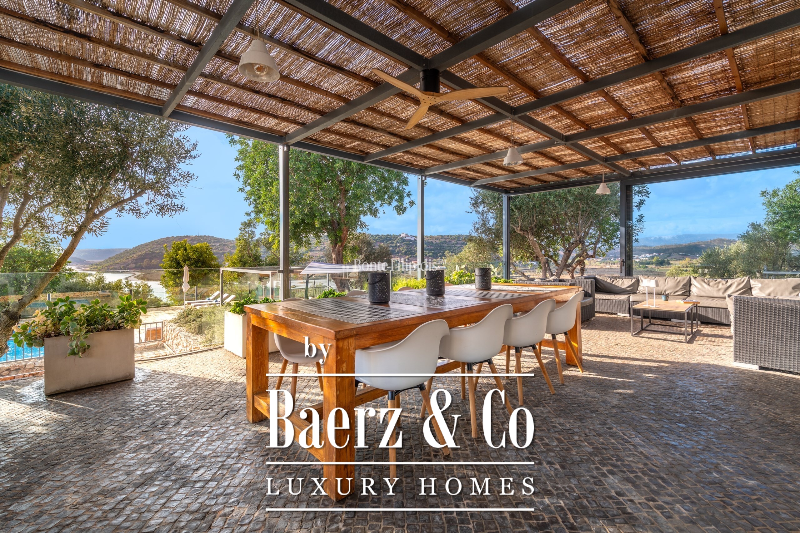 Villa in Silves offers a distinctive balance of contemporary architecture and natural serenity along the banks of the River Arade. Designed by Studio Arte of Portimão, this four-bedroom villa places you a short distance from the medieval heart of Silves, while ensuring each day is shaped by the soft cadence of the Algarve countryside. The property encompasses 180 m² of refined interior living space across two levels, with four spacious suites and a guest bathroom. Walls of glass open to a 260 m² covered terrace, drawing in river and mountain views and bridging interior and exterior with thoughtful simplicity.