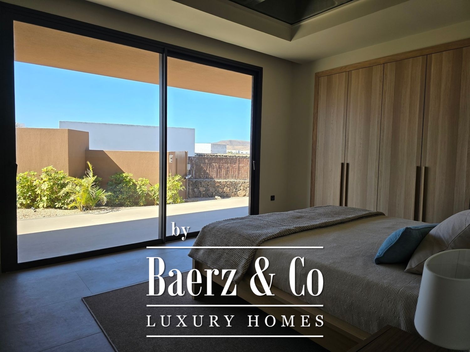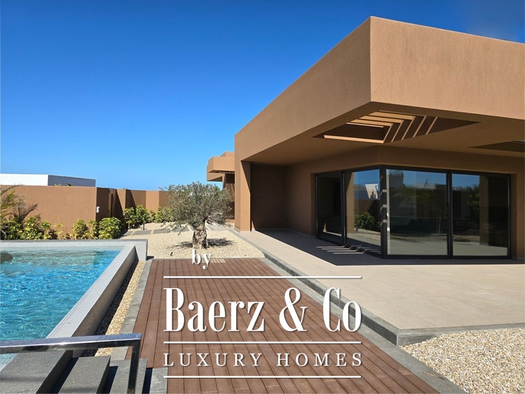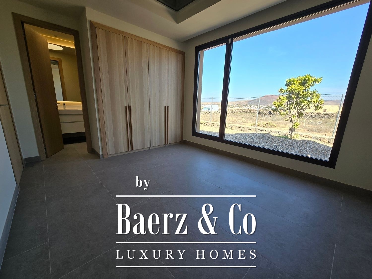 Outside, a private swimming pool is framed by manicured gardens, creating a calm setting for repose or entertainment. Two parking spaces complete the ensemble. Villa Fuerteventura is thoughtfully designed for comfort, discretion, and a seamless lifestyle where every detail is purposeful.