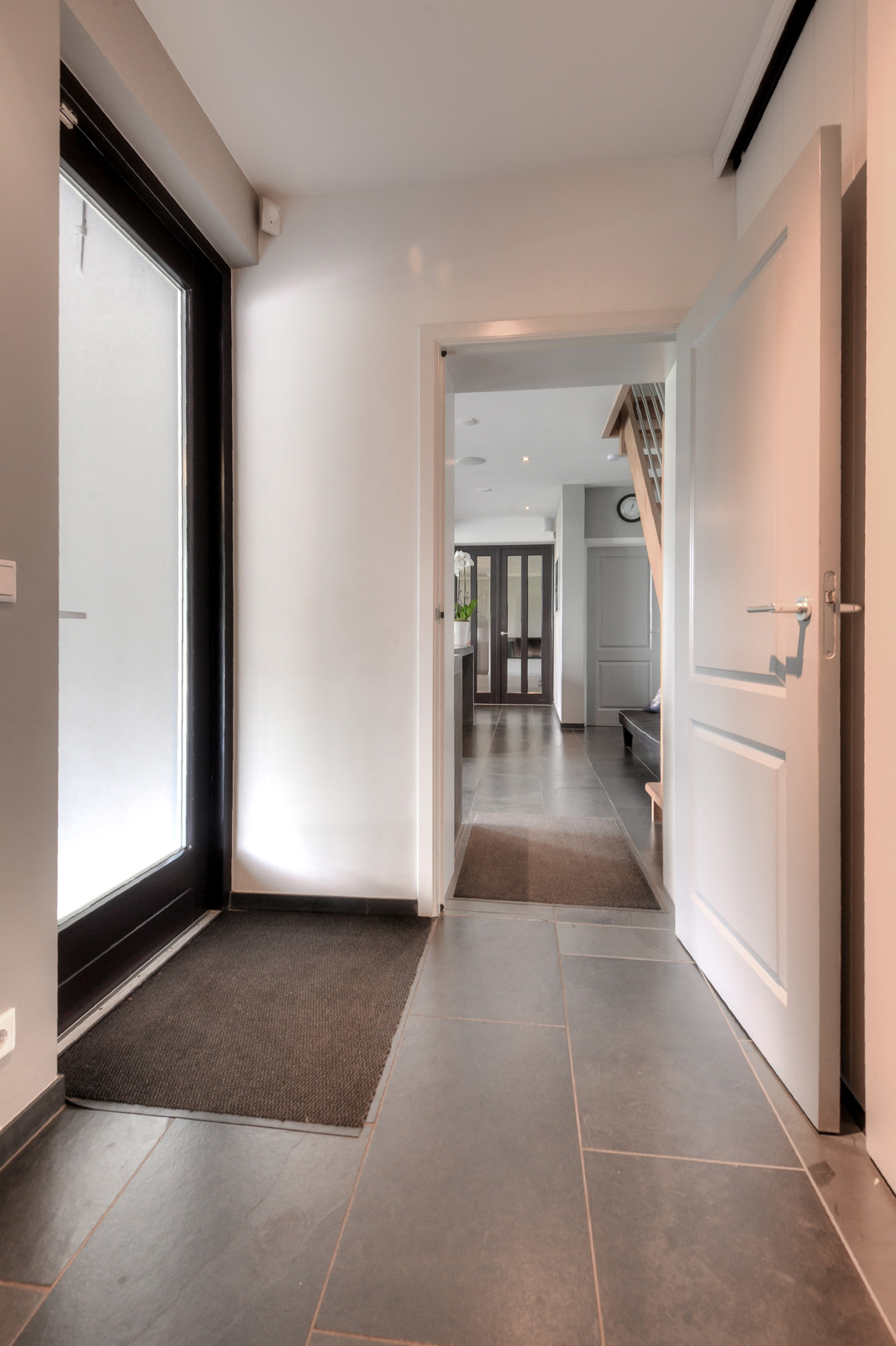 Hallway with a (cloakroom) cupboard and access to: