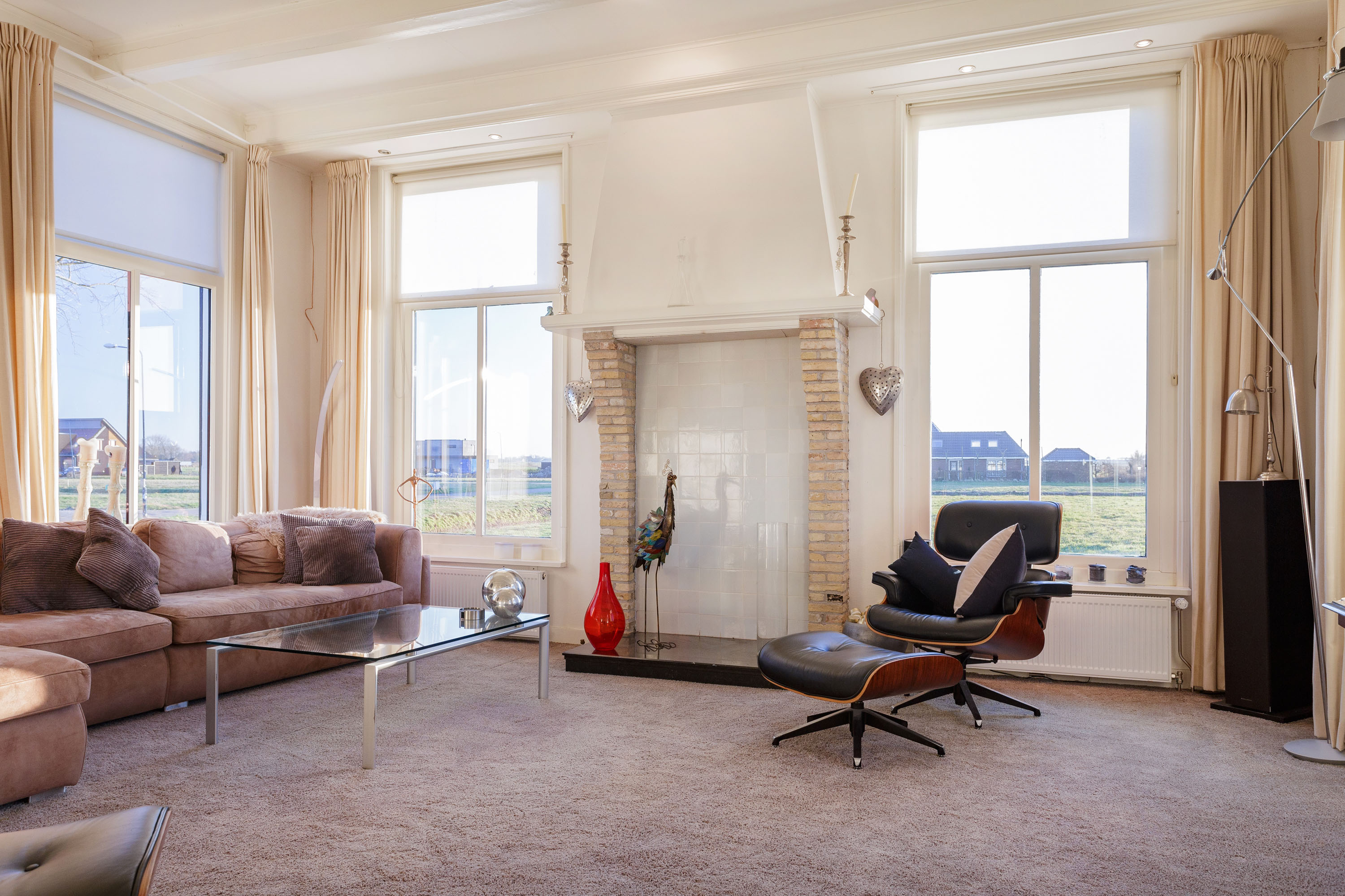 The modernized front house on the south side of the farmhouse can be entered via the terrace with front door to the hall on the side of the house or inside through a connecting door in the former barn. It has a bright attractive spacious upstairs room used as a living room where the old fireplace and authentic round "box bed" doors catch the eye. The upper room gives a panoramic view of its own pasture, the bird nesting area, the Harlingervaart and the dike with the Wadden Sea beyond. The new modern kitchen with beautiful oak floor is spacious, equipped with a pantry and all possible luxury appliances and has doors to the "conservatory" terrace where you can sit in the shade overlooking the beautiful garden and the waterfront. The wrought iron gas stove gives the kitchen a nostalgic look. Under the kitchen is the former milking parlor with original estriken floor transformed into a recently insulated entertainment room, equipped with radiators.