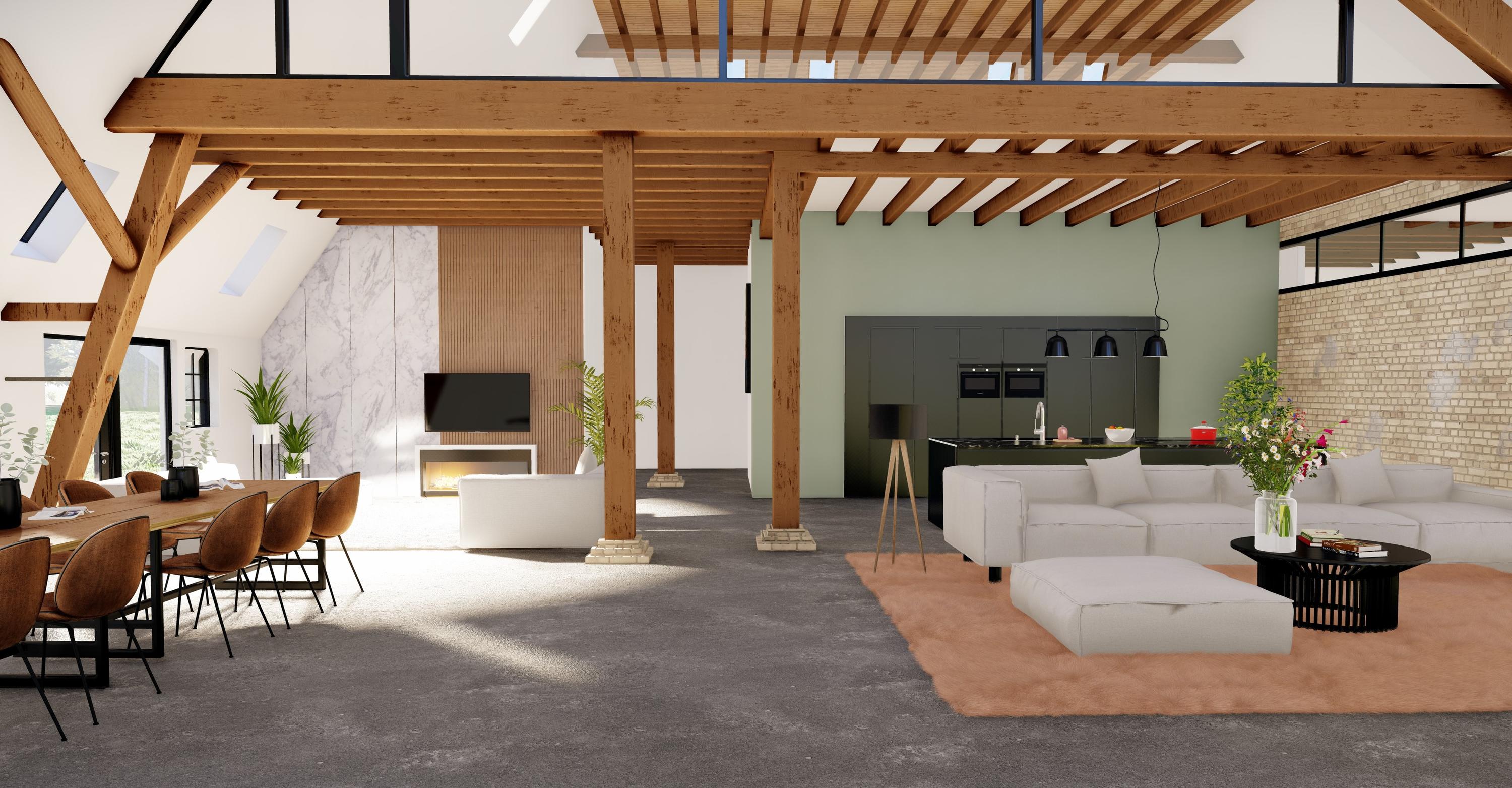 It is quite easy to transform the barn or just the ground floor into a fully independent home for a large family. See our artist impressions.