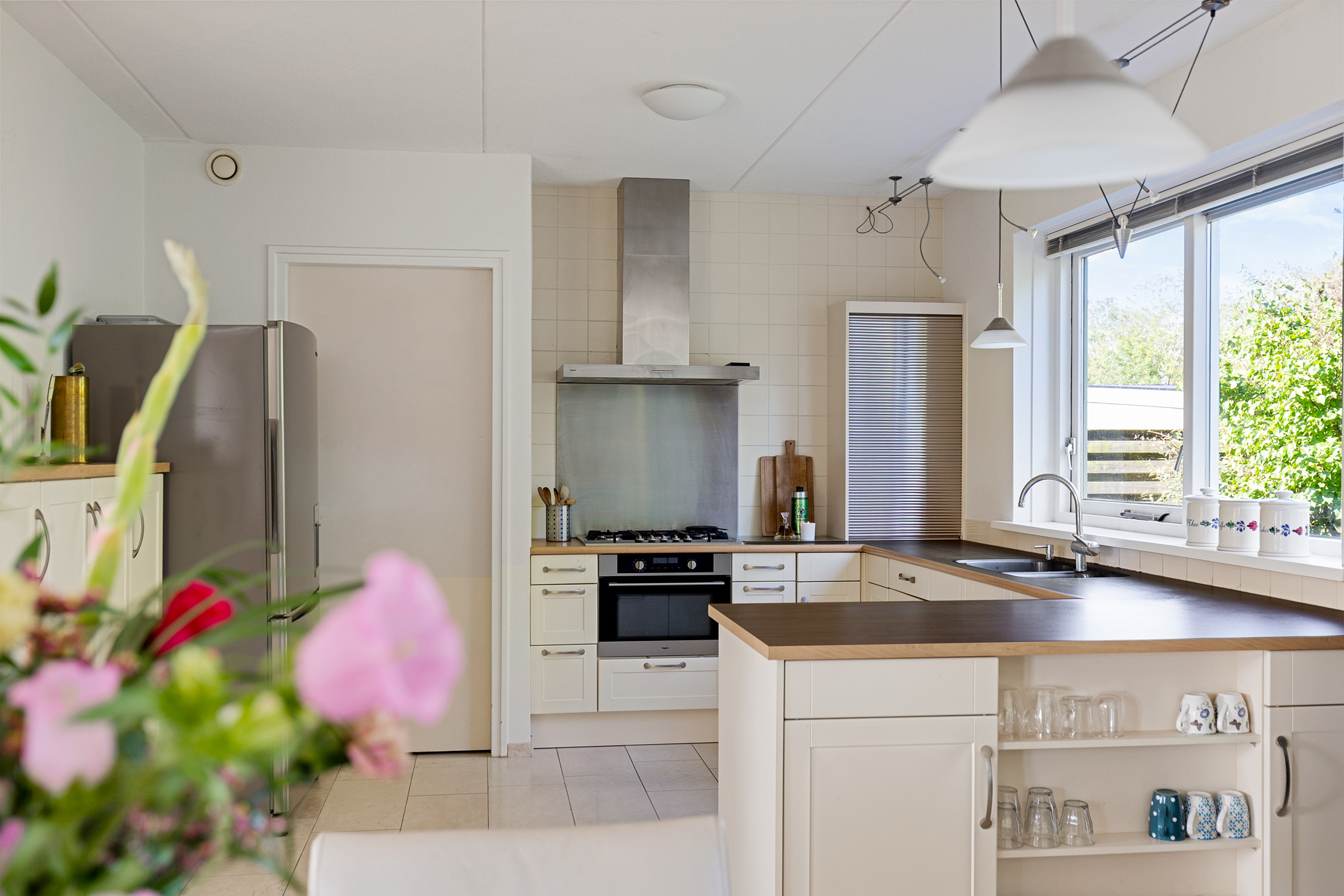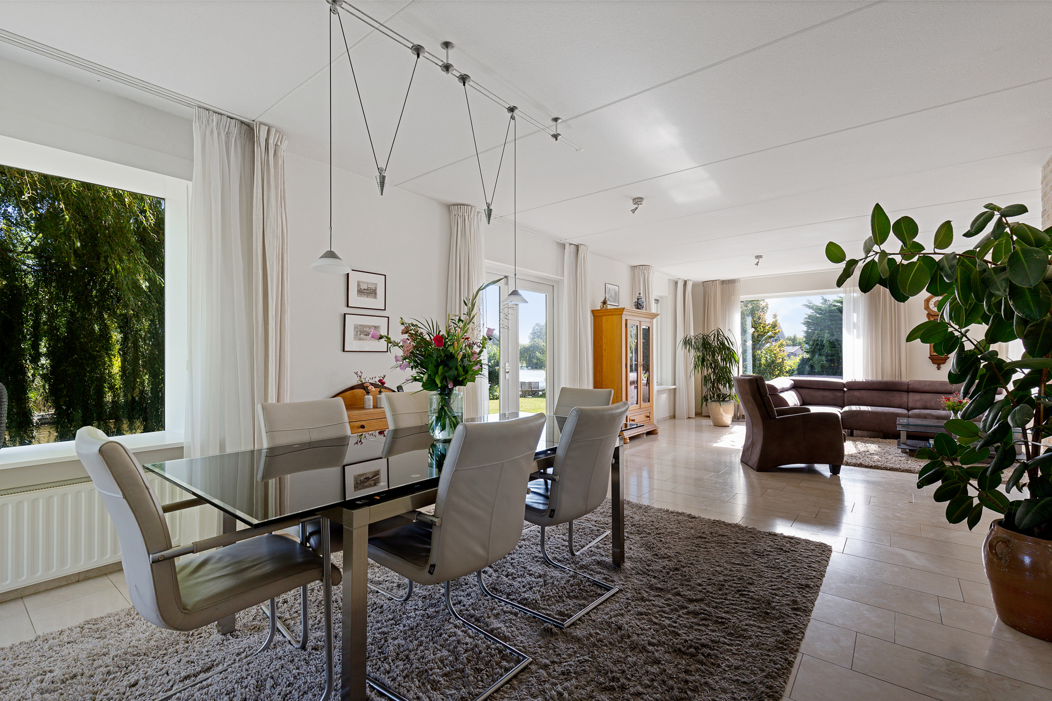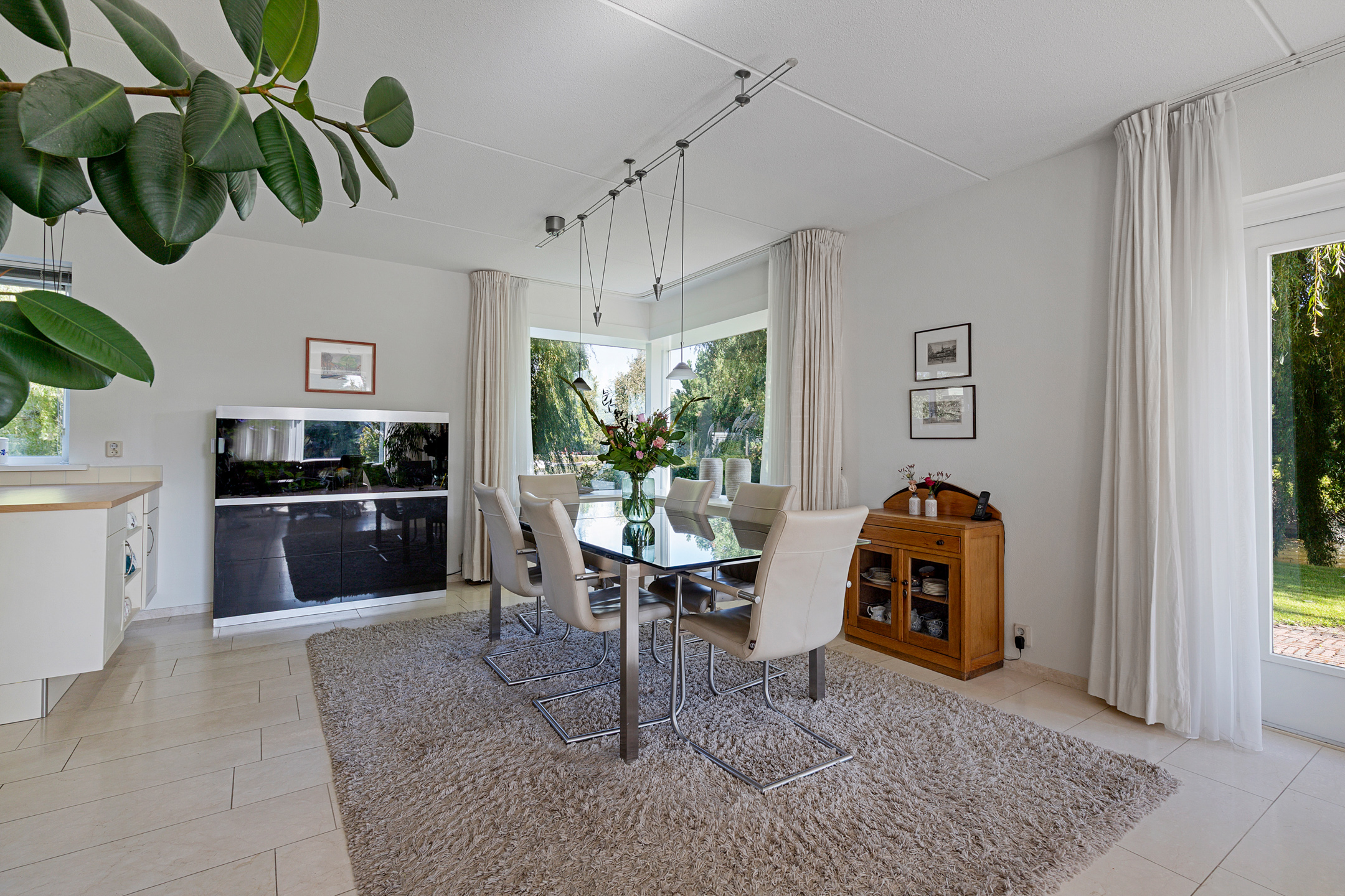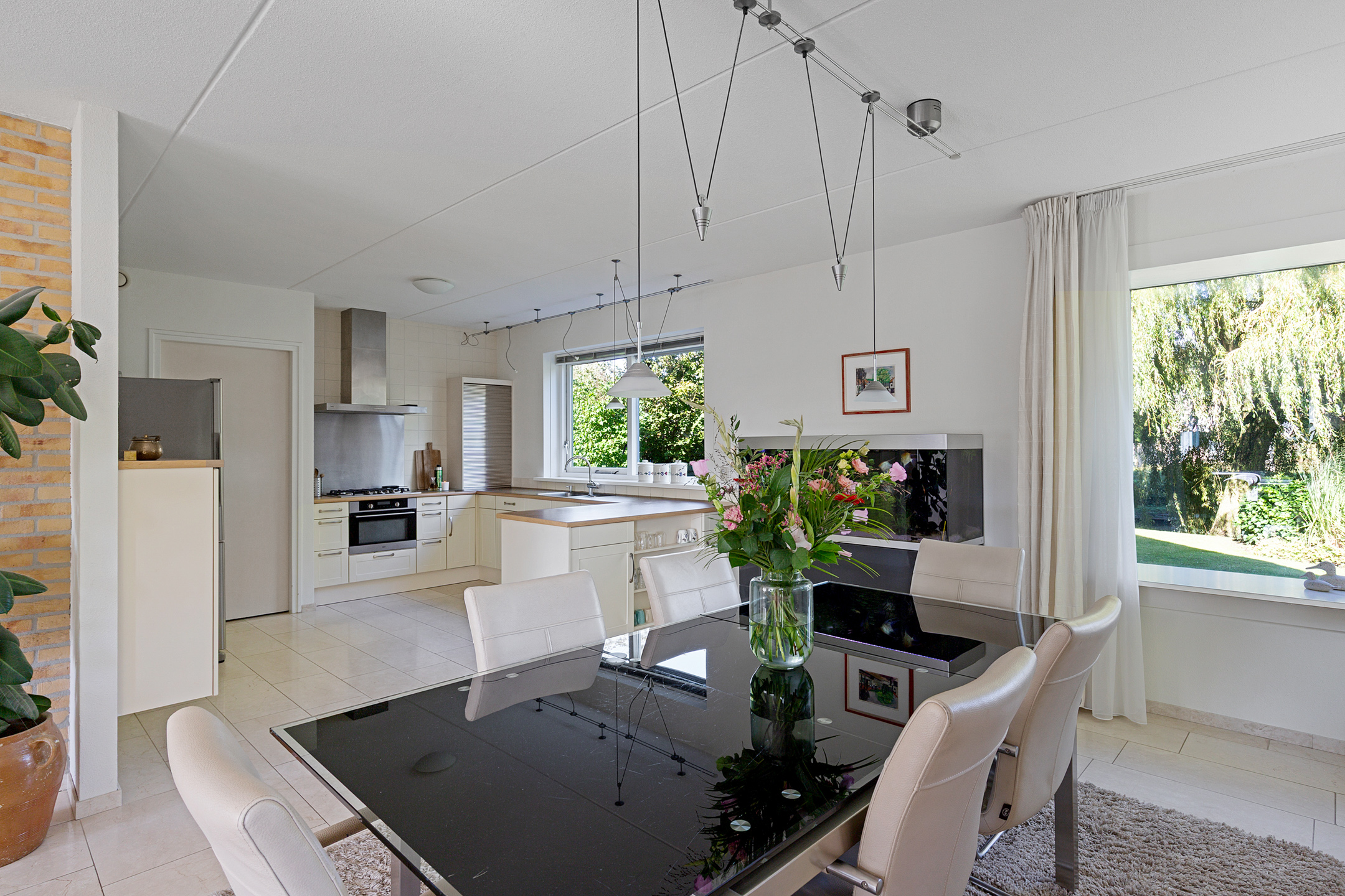 This well-maintained villa with indoor garage is situated directly on the water in one of Harlingen’s most desirable and spacious residential neighbourhoods, bordering the bird reserve *It Hegewiersterfjild*. From both the living room and kitchen, the home offers panoramic views of wide waterways and lush greenery.