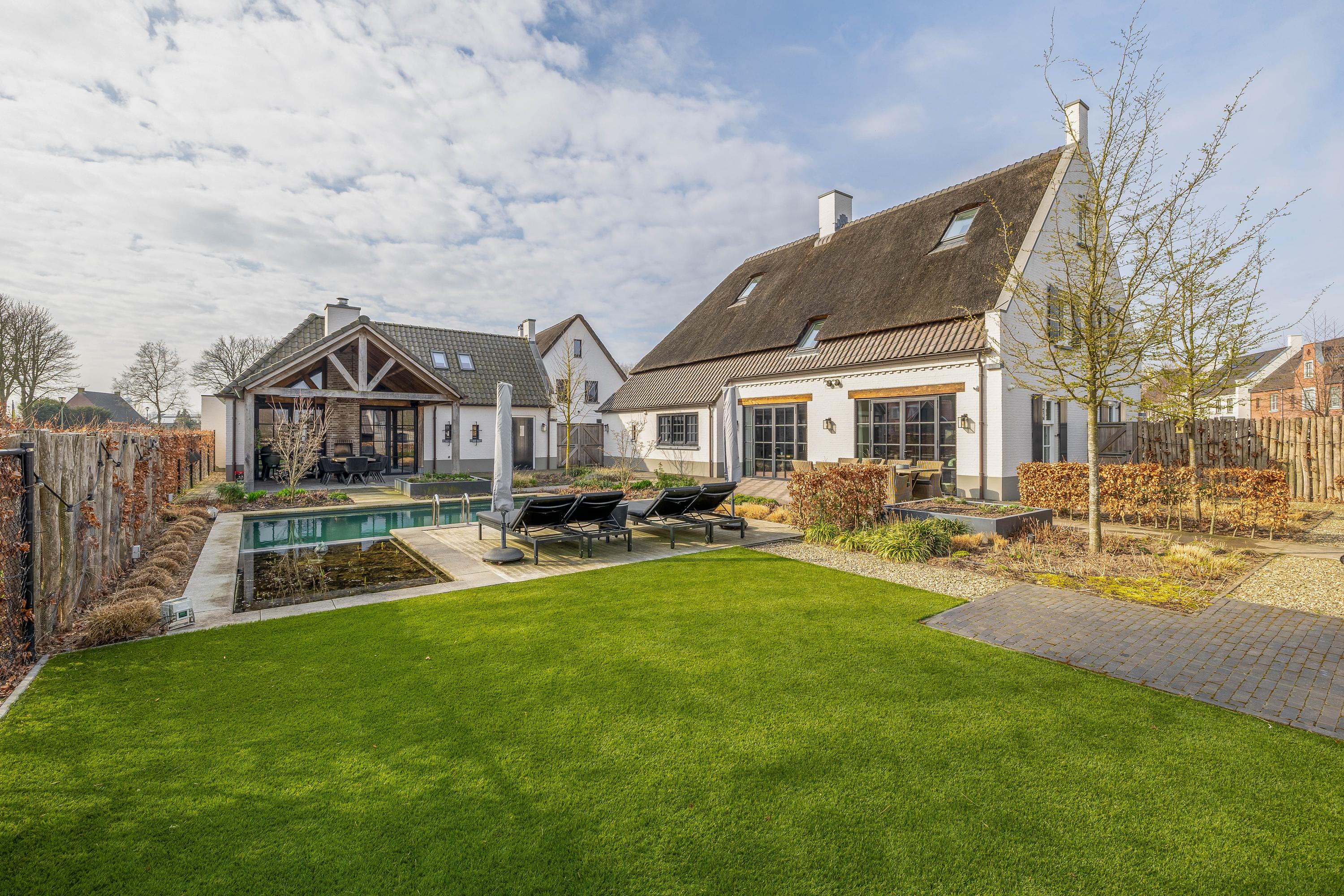 This farmhouse offers you a rare opportunity to live in an oasis of luxury, comfort, and privacy. With attention to detail, high-quality materials, and a thoughtful layout, every floor showcases a cohesive design where ceramic tiles, an oak herringbone floor, and meticulously applied stucco unite to form a warm and elegant whole. The seamlessly coordinated materials and finishes give every space a refined, consistent look.