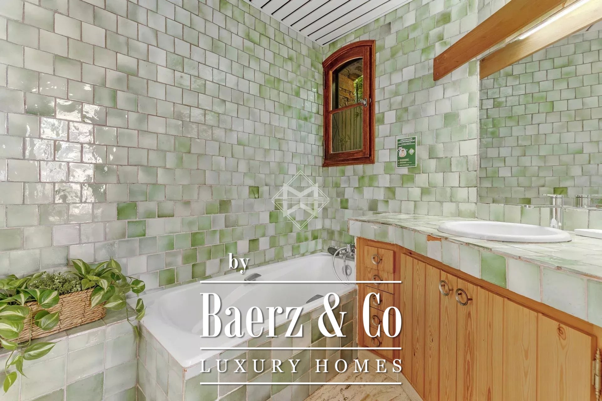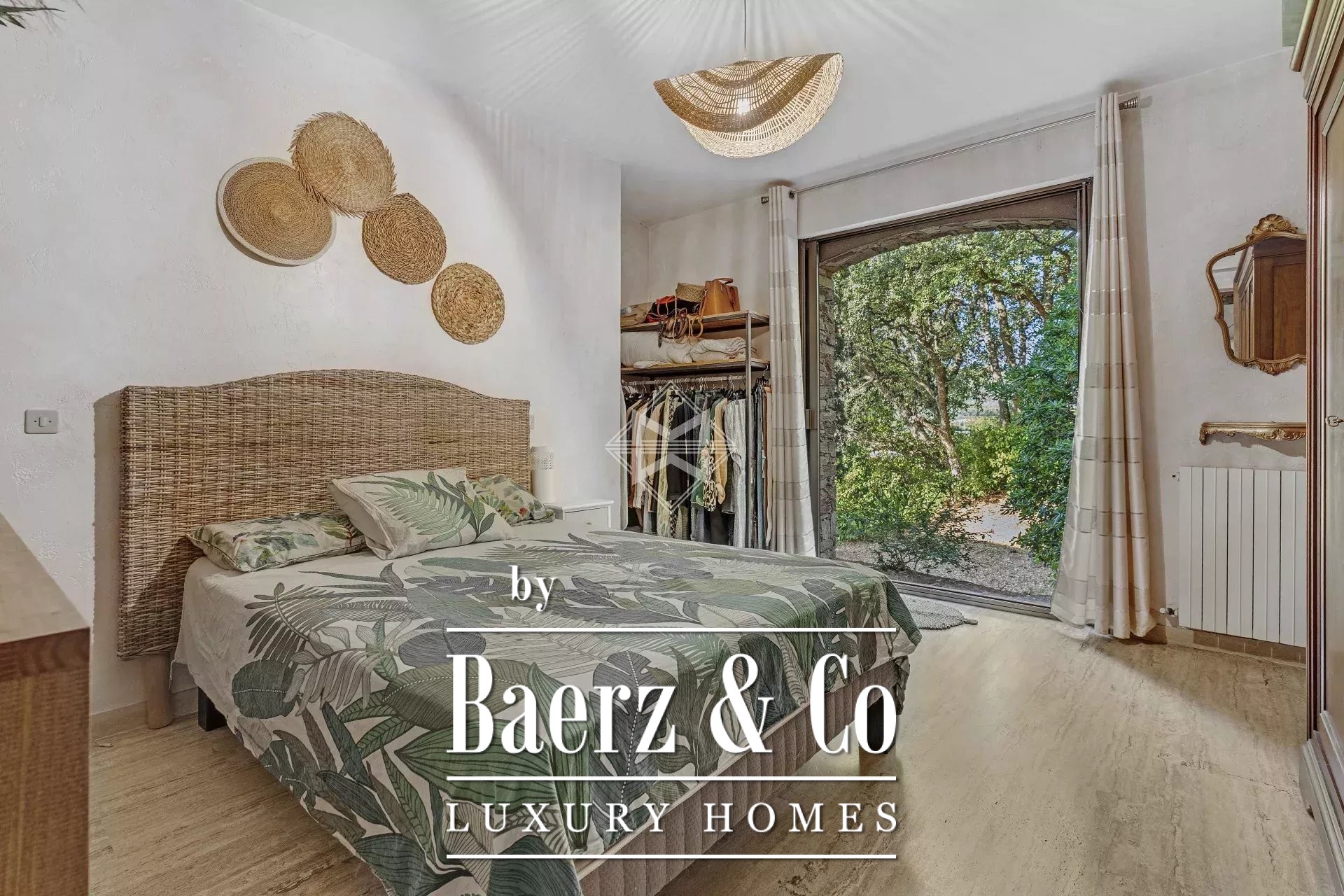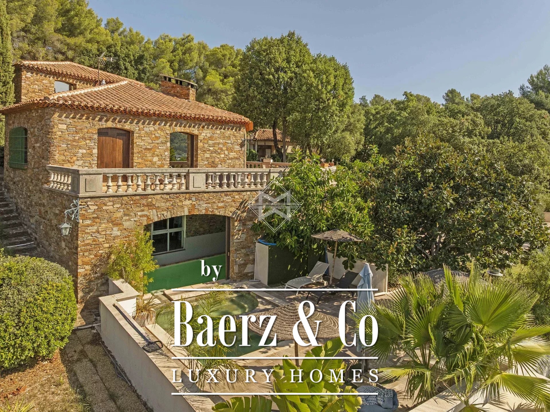 On the lower floor, a reception hall of nearly 100 m² transitions seamlessly to both indoor and outdoor pools, facilitating effortless gatherings and moments of calm. The separate 85 m² guest house extends privacy with three bedrooms, private garden, and its own terrace. The one-hectare plot is both wooded and landscaped, affording unobstructed hills views and enveloping the villa in tranquility. Modern amenities include sliding windows, flyscreens, crawl space, optical fiber, and a condominium garden. This luxury villa for sale in Hyères offers a singular opportunity to inhabit the Bayorre area, where the timeless allure of stone and the serenity of Mediterranean living quietly prevail.