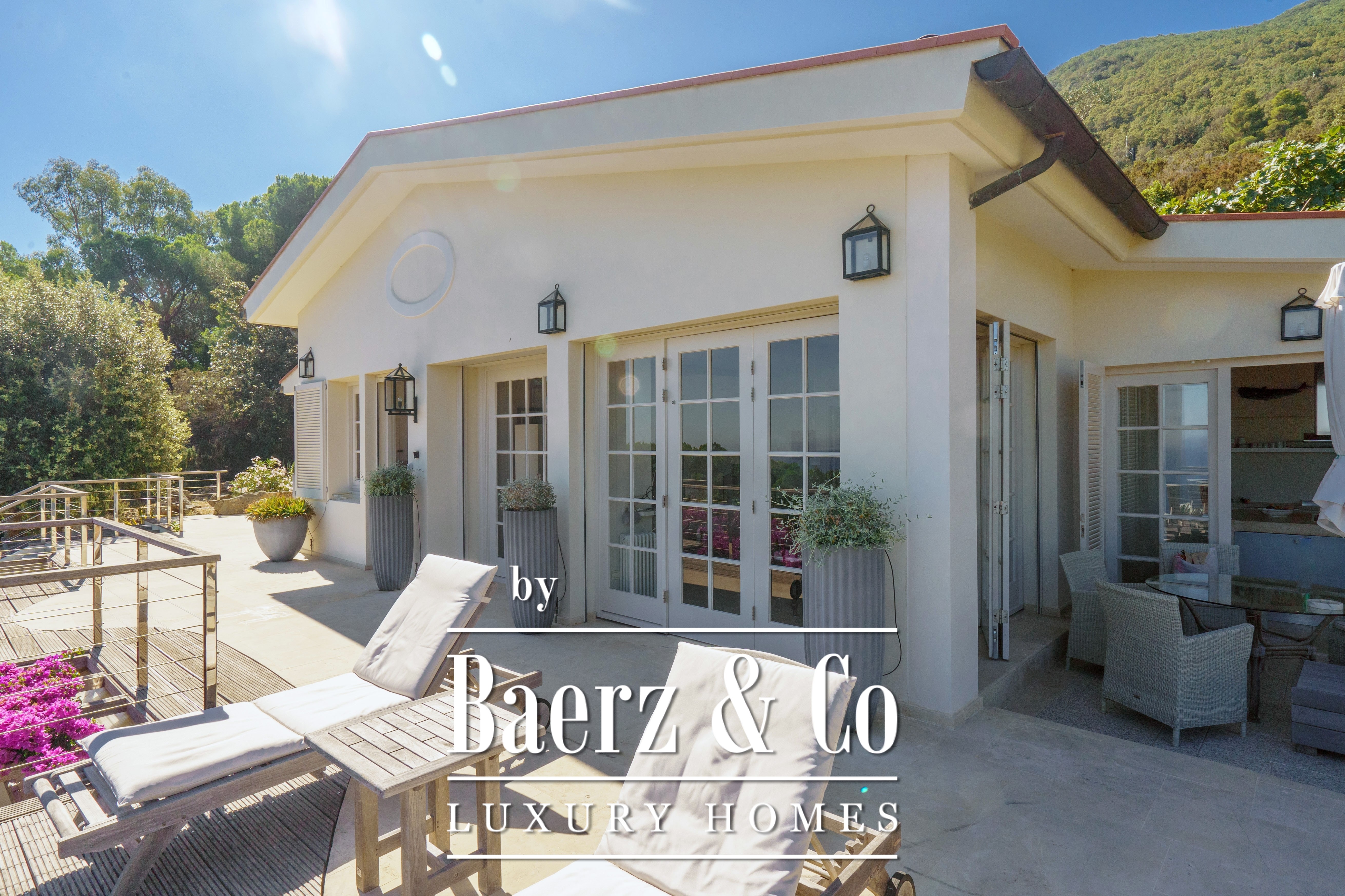The original villa, designed in the 1950s by a noted architect, was restored in the early 2000s to preserve both authenticity and architectural integrity. Terraced gardens, Mediterranean vegetation and thriving olive groves envelop the 9,000 m² plot, affording calm and privacy. The main terrace looks out to vistas that trace the turquoise sea, Arenella beach, Monte Argentario and the island of Giannutri.