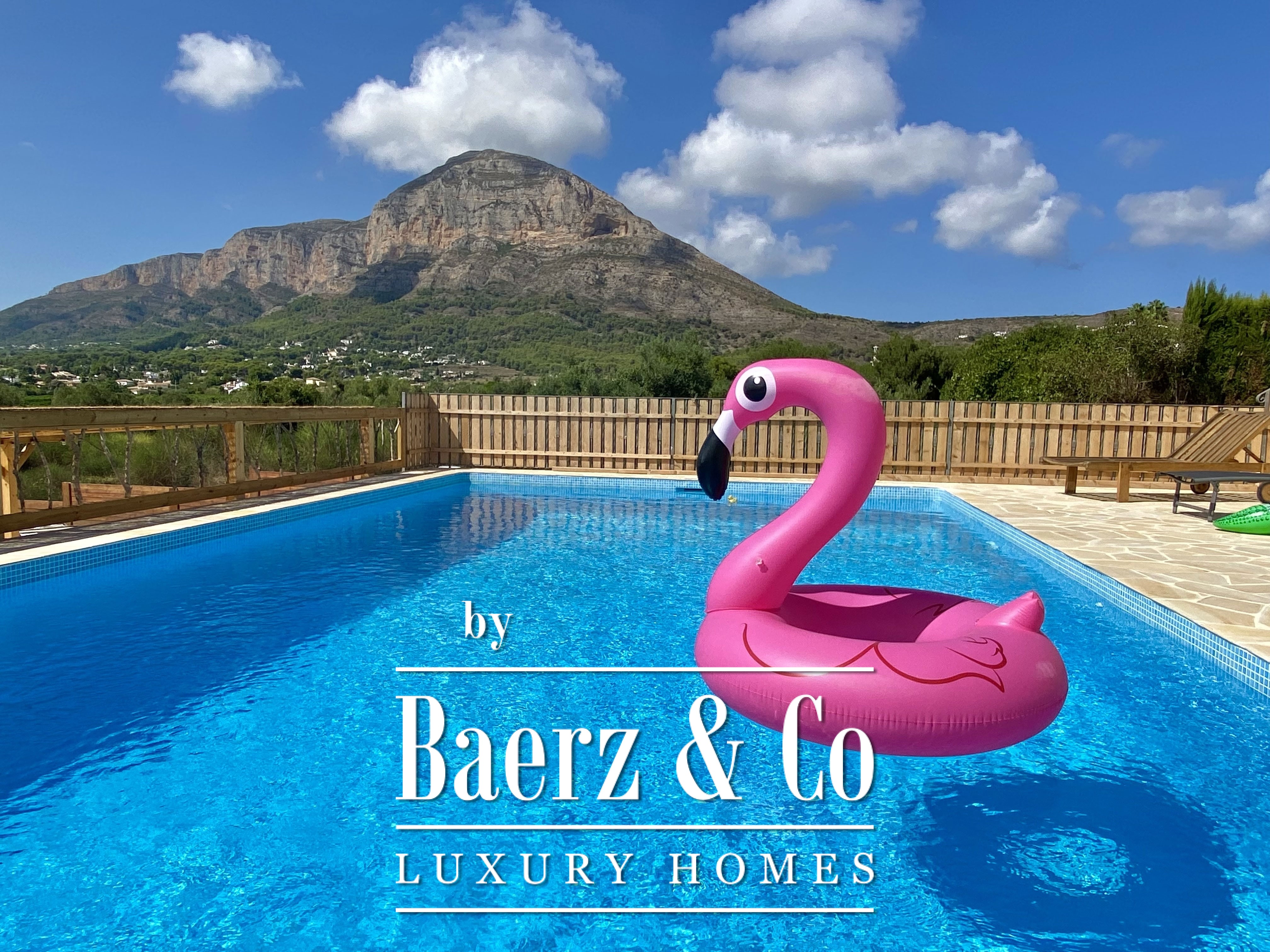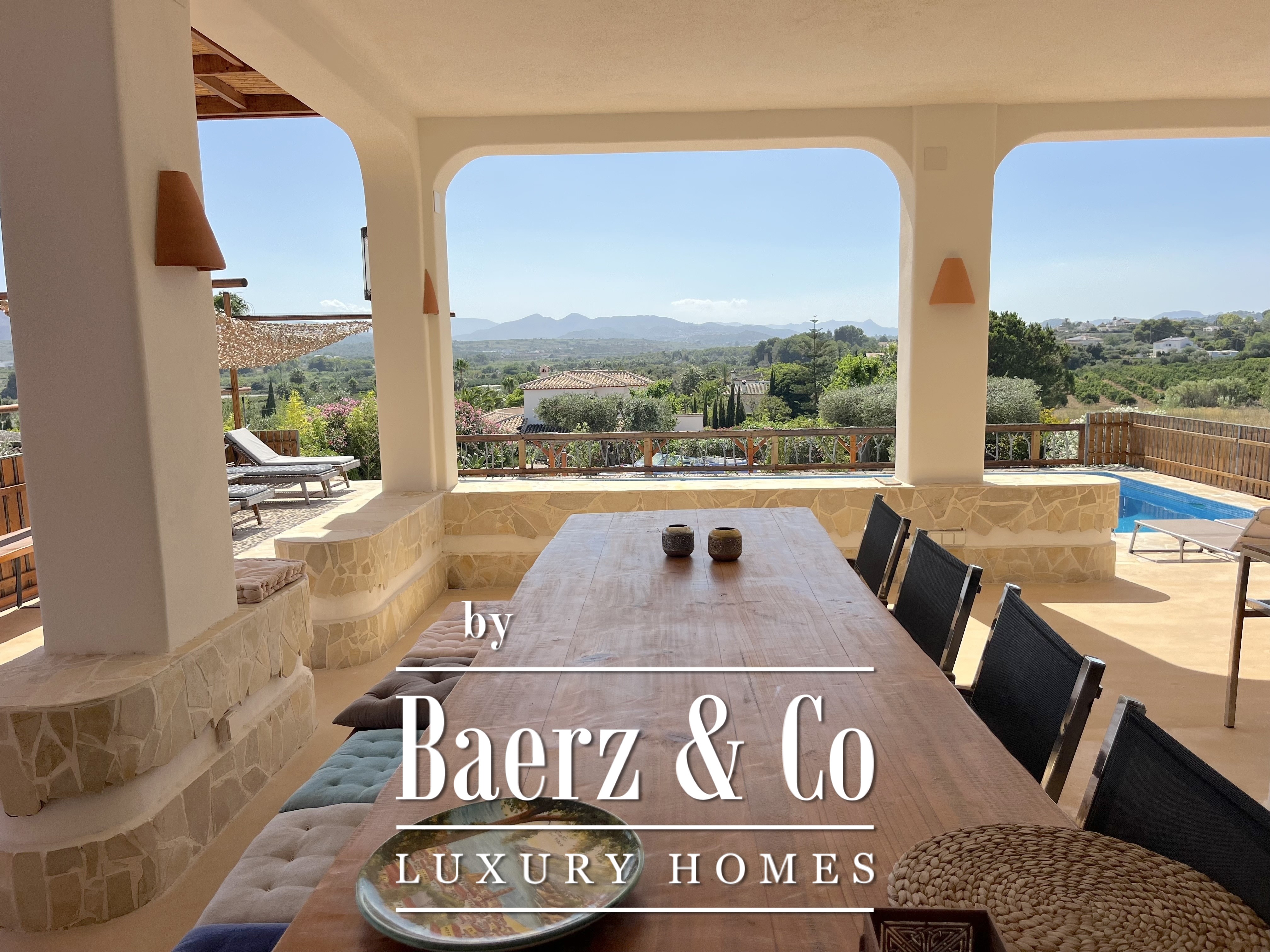 Set on a former olive grove of 1,700 m², the finca enjoys uninterrupted views of the lush green valley and the majestic Montgó Mountain.