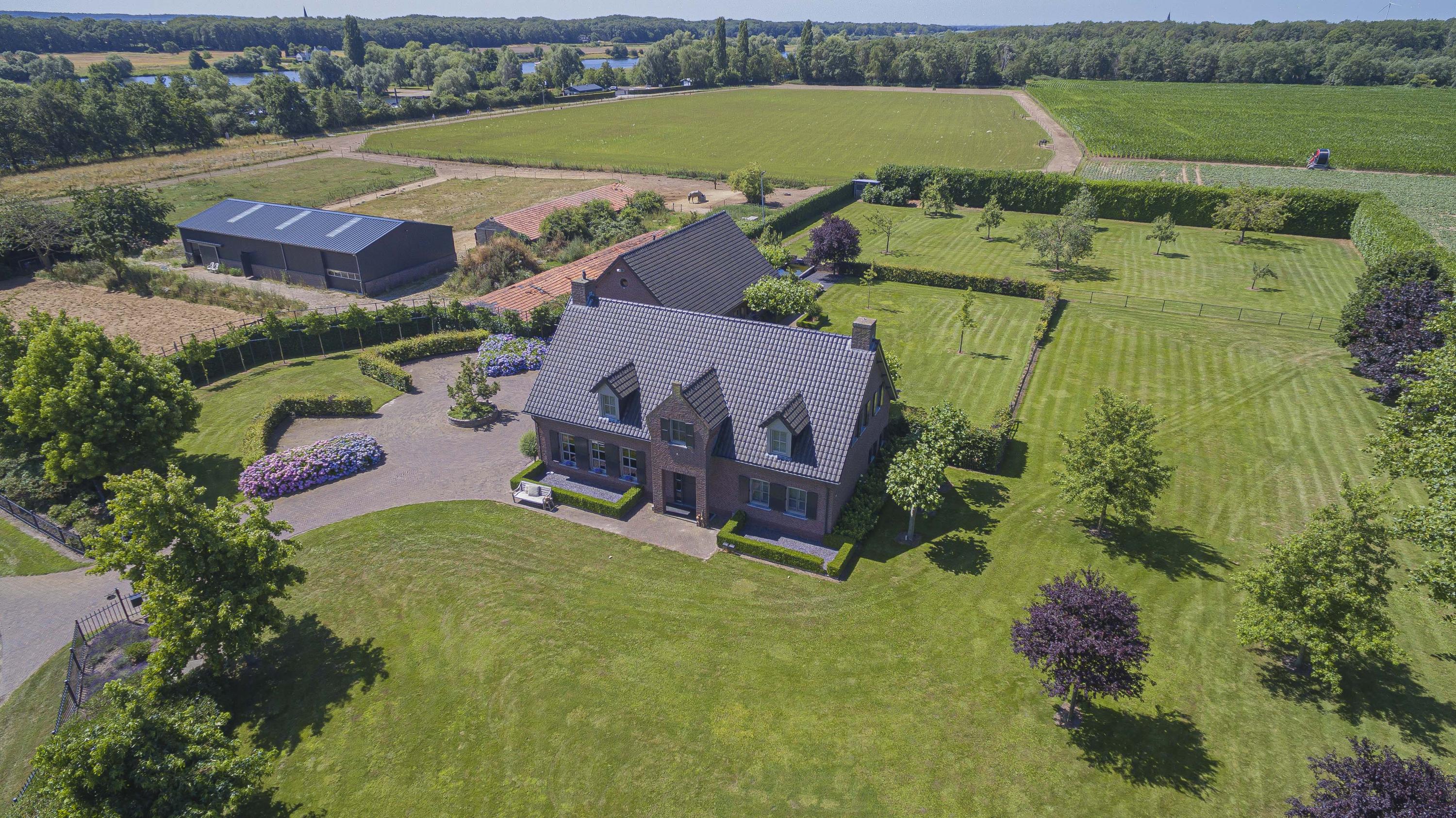 The villa immediately stands out with its distinctive shutters and unique façade colour – a true eye-catcher in Kessel. Elevated on a terp, the property is even visible from the opposite side of the river Maas.