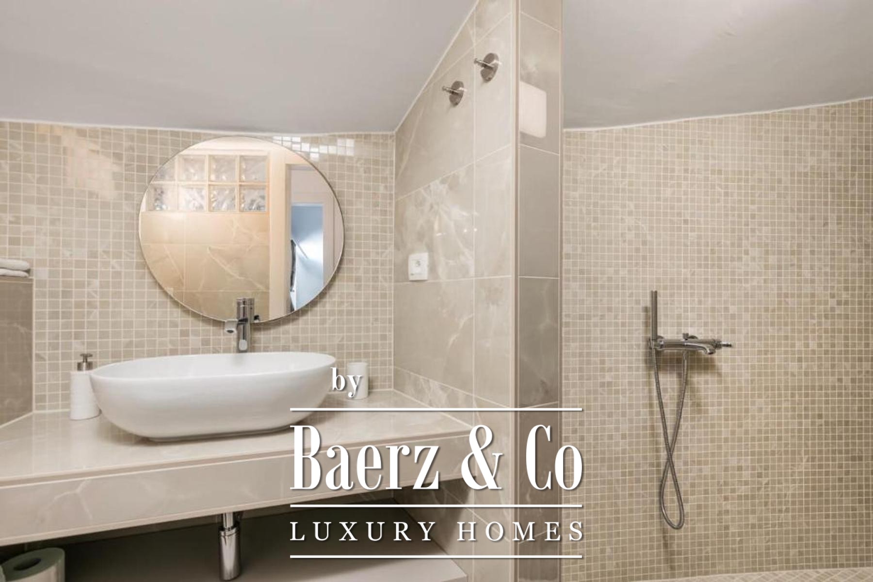 The first floor comprises a sleek three-bedroom apartment, where light ushers through large terraces, drawing the gaze to crystalline sea vistas. In the high attic, two en-suite bedrooms are joined by an elegant living space and access to a contemplative rooftop terrace.