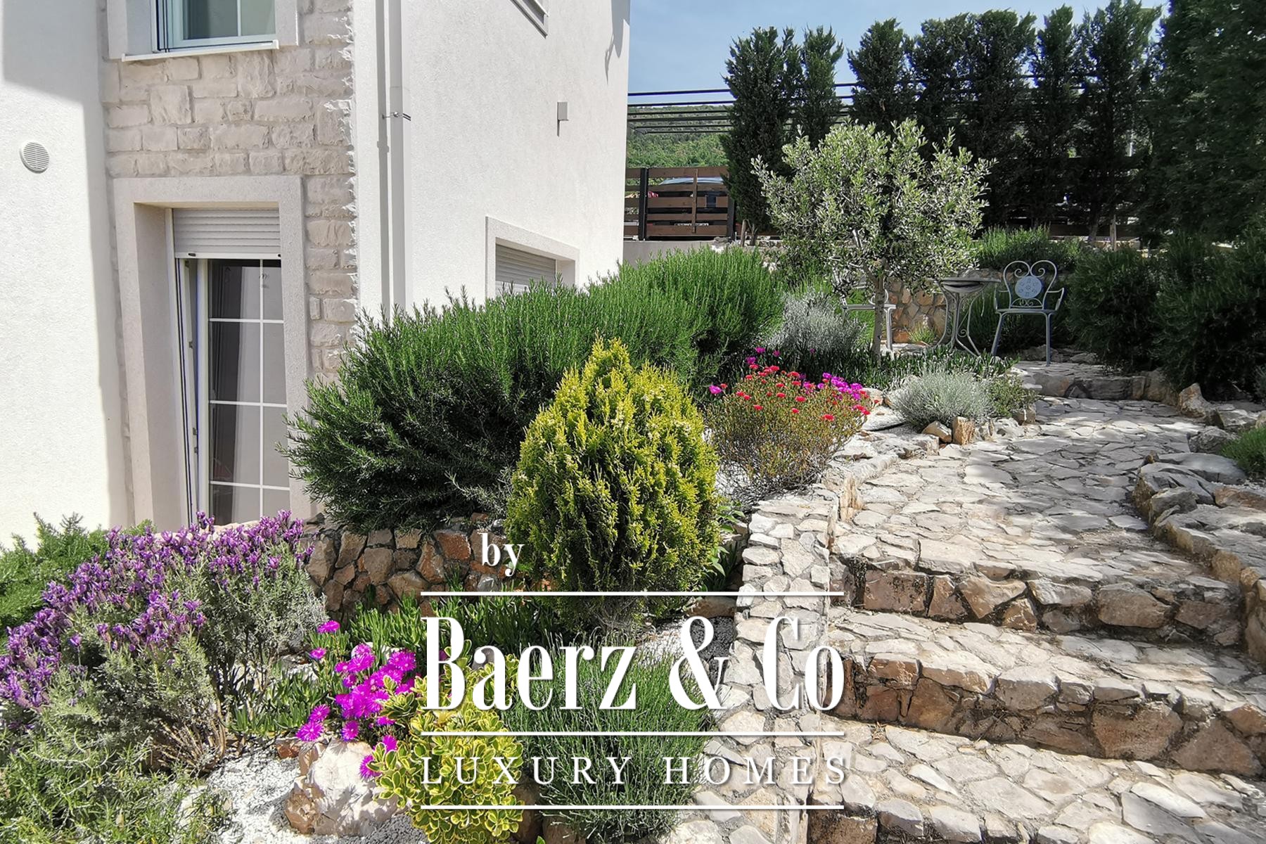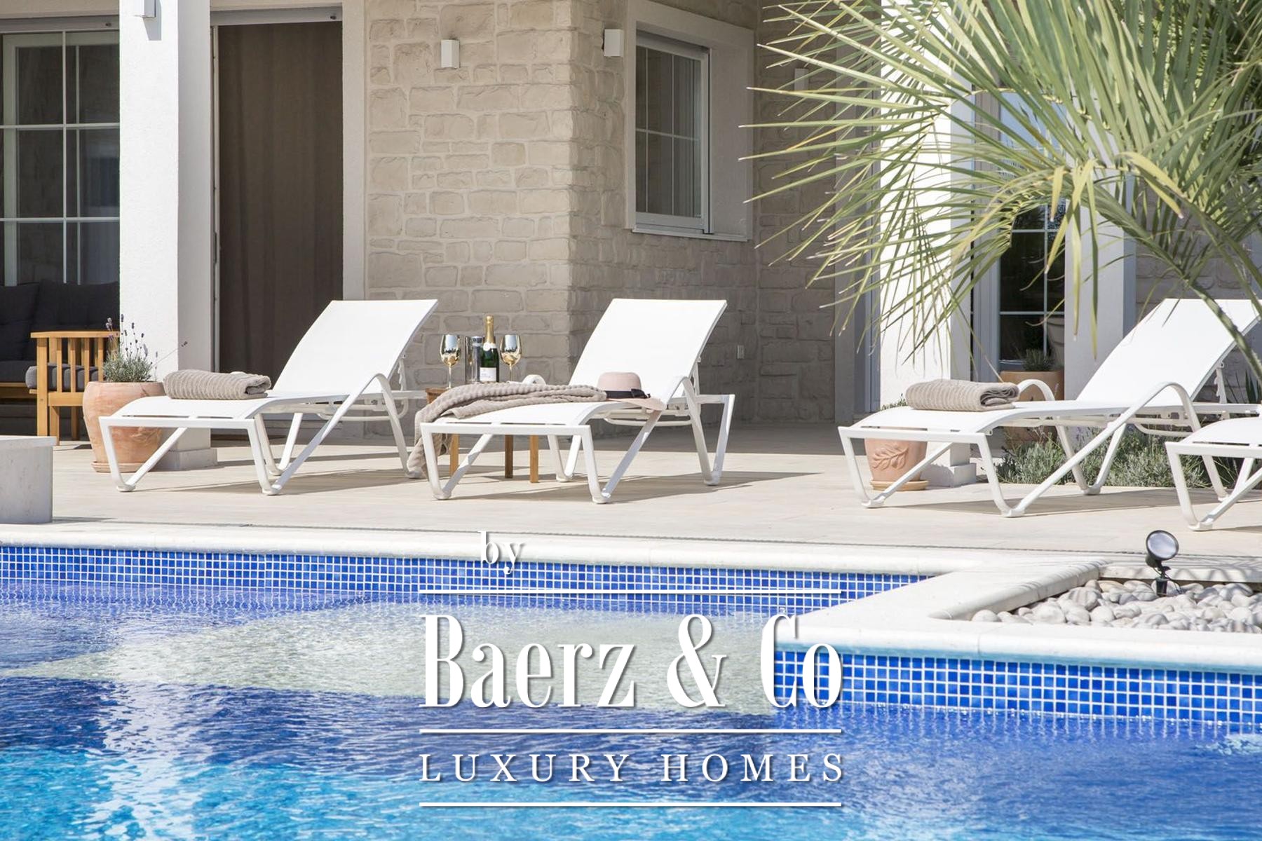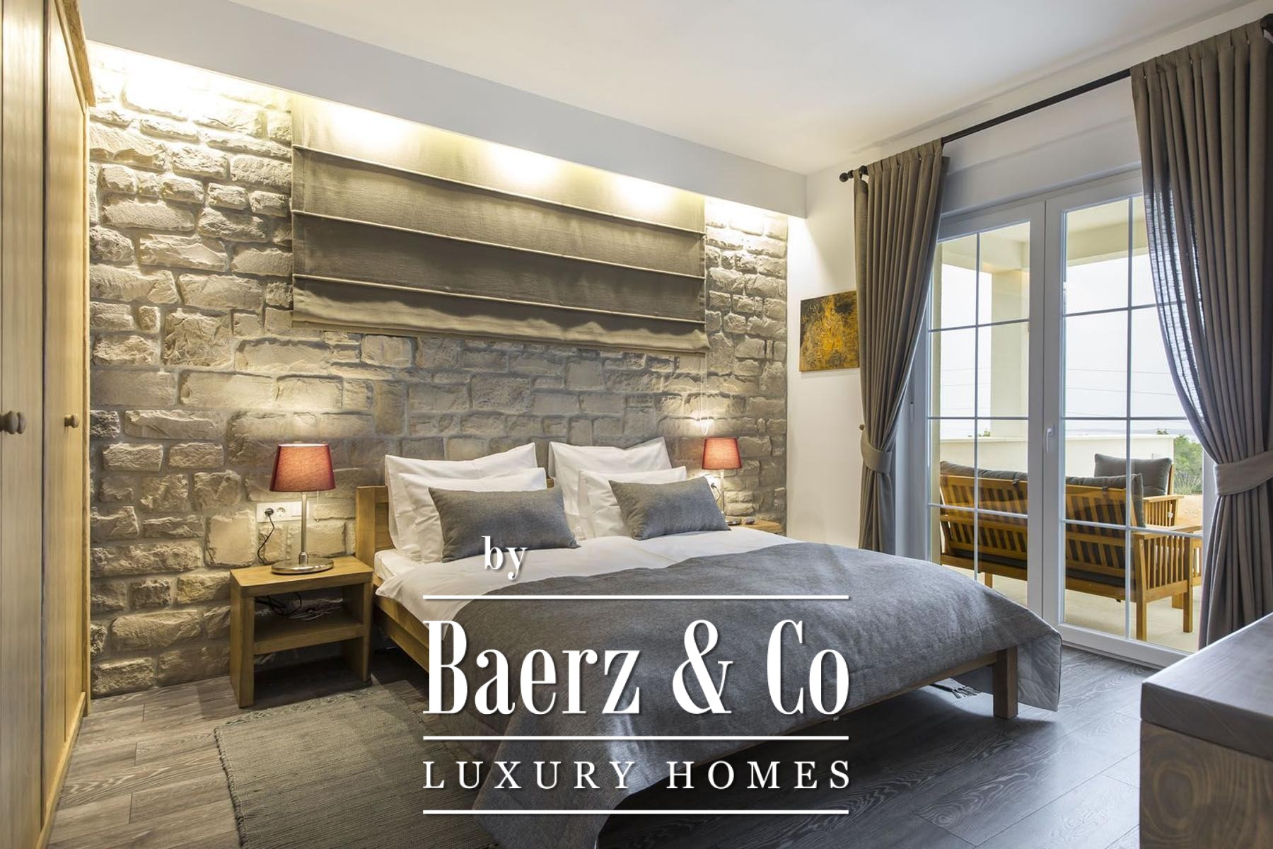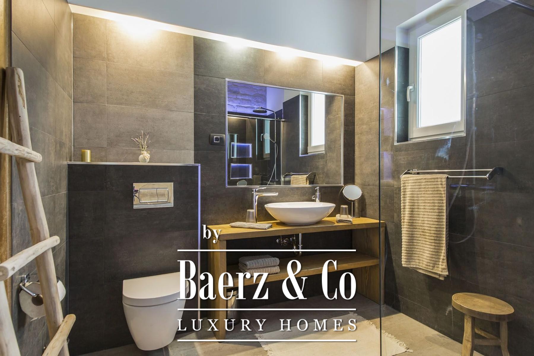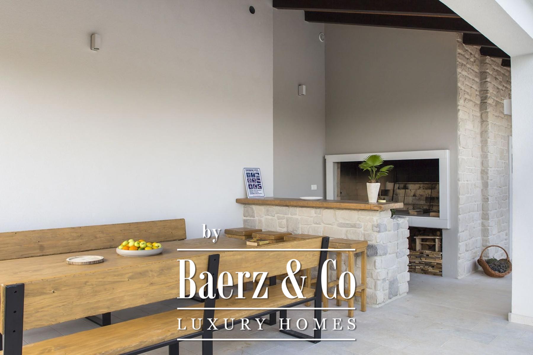 On the ground floor, a refined kitchen with premium appliances merges seamlessly with dining and lounge areas, complete with underfloor heating, fireplace, bar, and integrated audiovisual systems. The luxury of a private wellness zone, including a sauna, heated walls, Laconium relaxation area, and music, transforms daily rituals into meditative interludes. The landscaped 990 m² grounds center on the overflow pool, a six-person jacuzzi, and shaded summer kitchen, ideal for evenings framed by Adriatic light. Additional amenities such as an electric vehicle charger and expansive outdoor entertaining spaces comprise a villa in Labin that balances sophistication with the rhythms of nature. Luxury villa for sale in Labin.