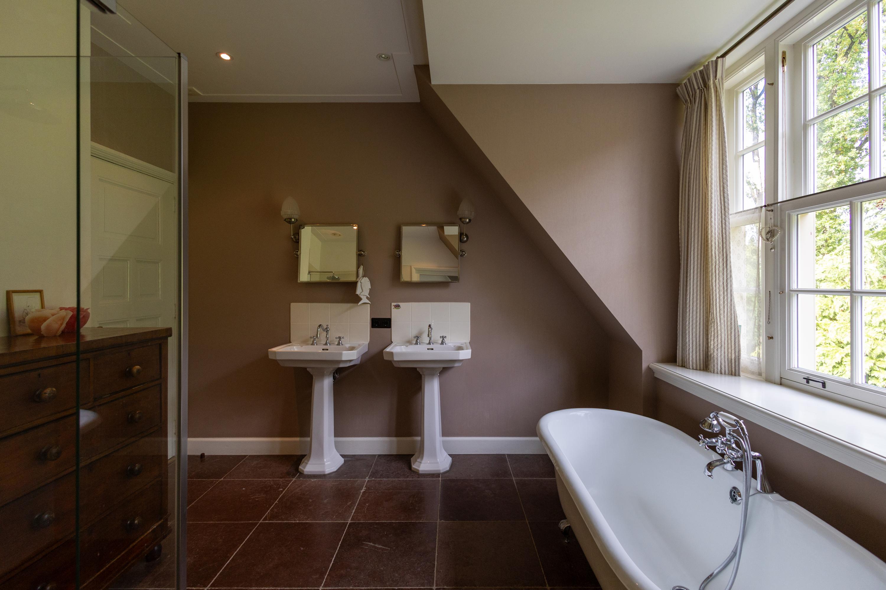 Continuing up the staircase, the second floor reveals a charming attic room, also with a private bathroom.