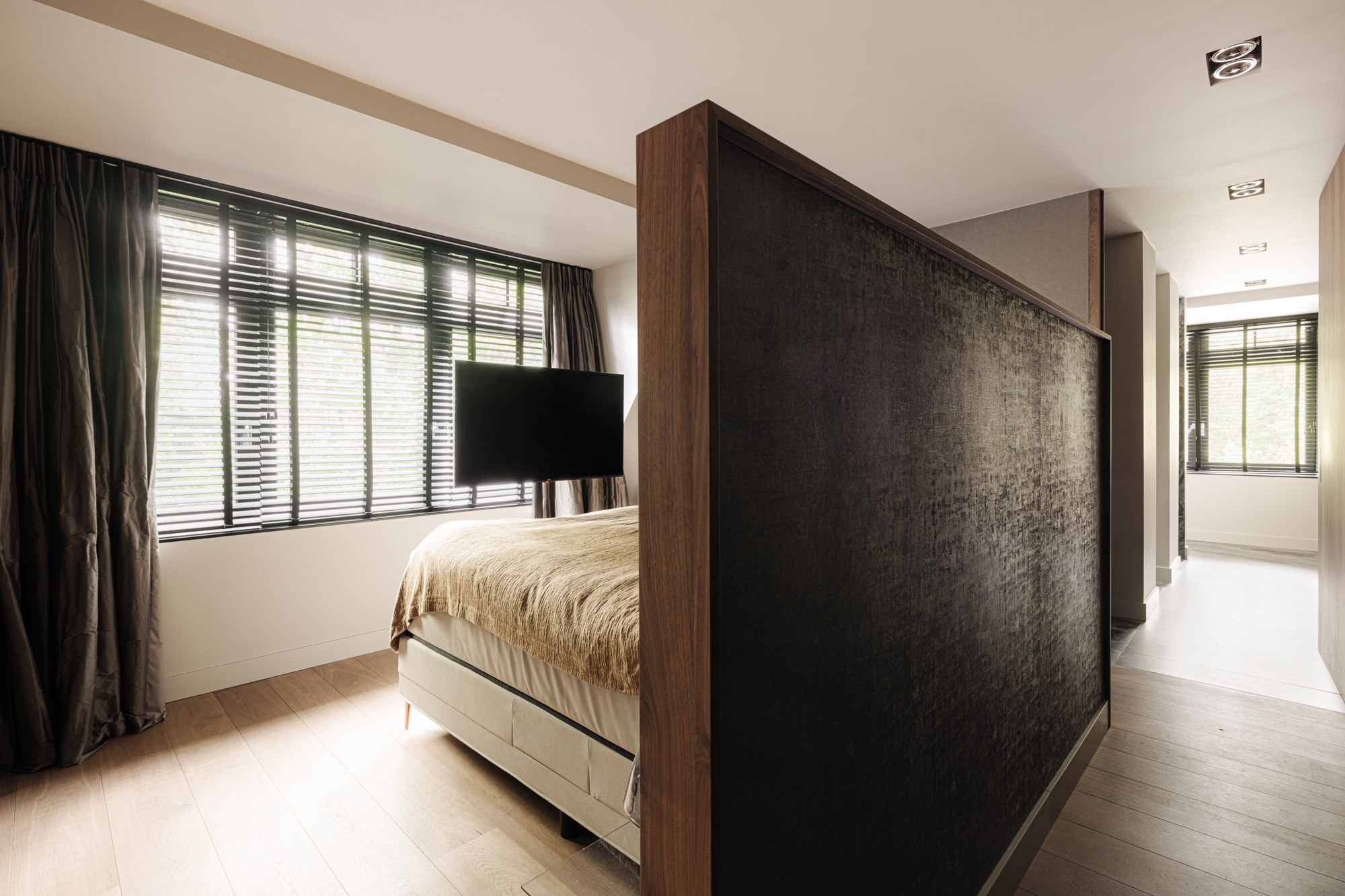 Directly from the living area, you reach the kitchen, a tribute to culinary arts, complete with a luxurious marble countertop and state-of-the-art appliances that will delight even the most demanding gourmet. This includes an XL wine climate cabinet, dishwasher, (steam) oven, built-in coffee machine, and induction hob from the renowned brand Miele. From the kitchen, there is again a seamless transition between indoors and outdoors thanks to the bar at the kitchen island with double French doors to the terrace directly behind it. A perfect spot for a chilled glass of rosé on summer evenings.