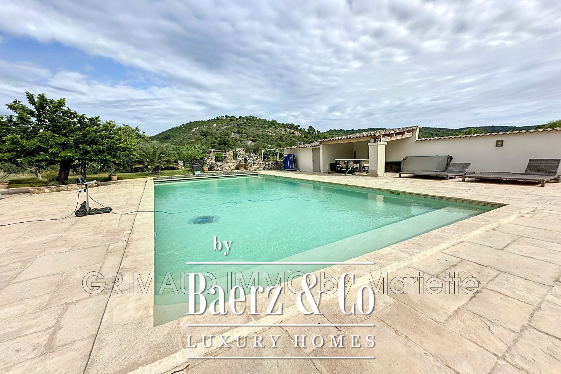 Beyond the main residence, three T2-style guest apartments create separation for extended stays, each featuring a living room, kitchen, bedroom and bathroom. The grounds bear the flowing presence of a stream, lake, and water supplied by the Provence canal, boreholes, and wells. A heated swimming pool and its pool house invite tranquil moments year-round. The 115 m² garage completes the sense of considered luxury. This propriété Le Plan-de-la-Tour offers seclusion, character and a rare continuity between architecture and the Provençal landscape.