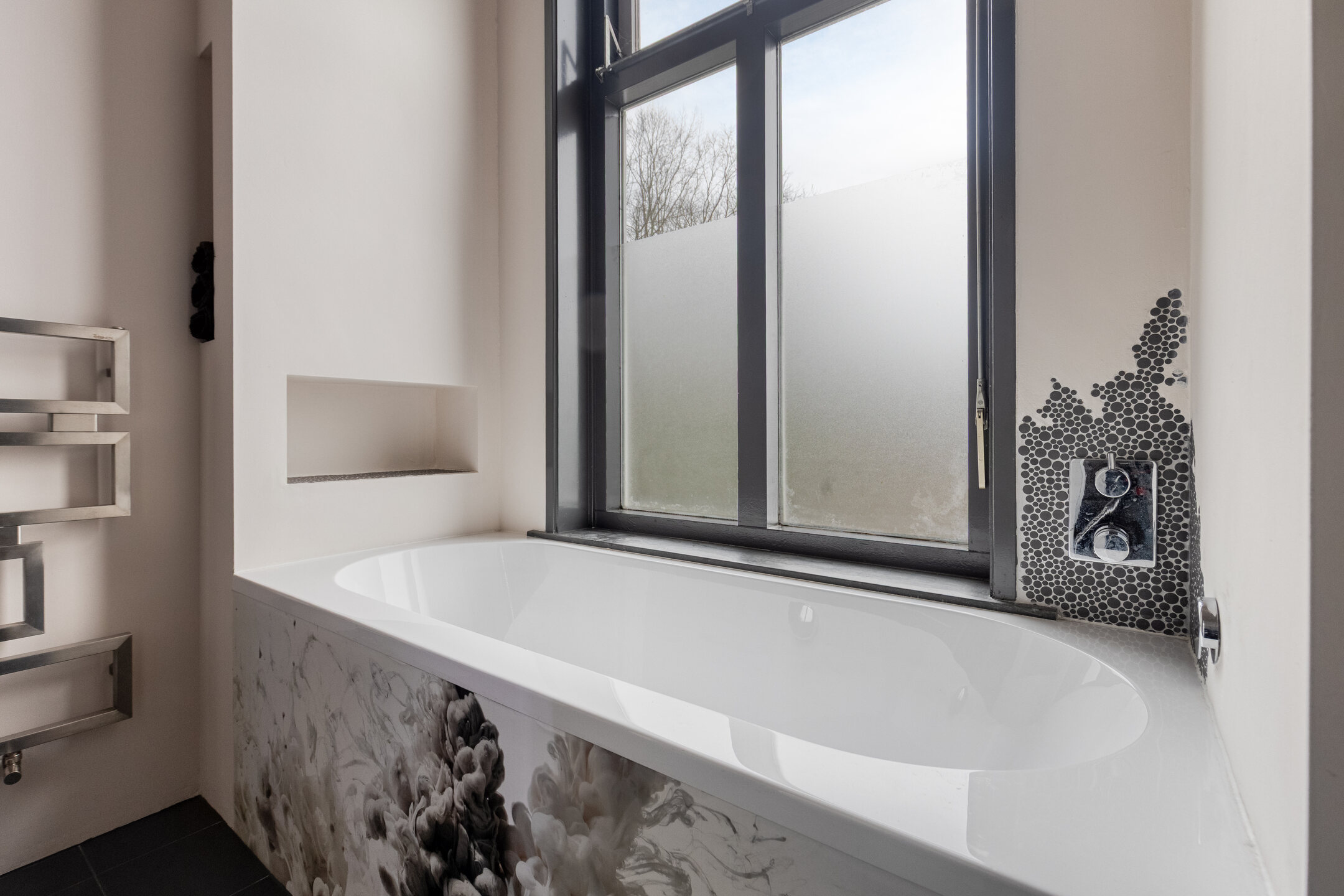 The property is equipped with central heating. The high-efficiency combi boilers are located in the laundry room on the second floor: one boiler (Nefit, 2020) provides heating, and one (Remeha Quinta) supplies hot water