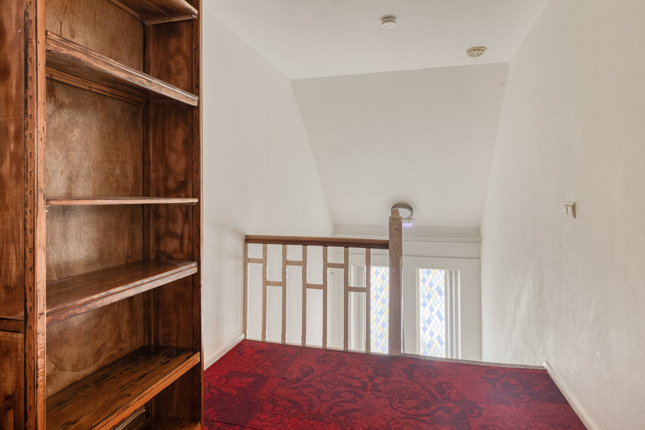 Landing; plastered walls, carpeted floor, plastered ceiling
