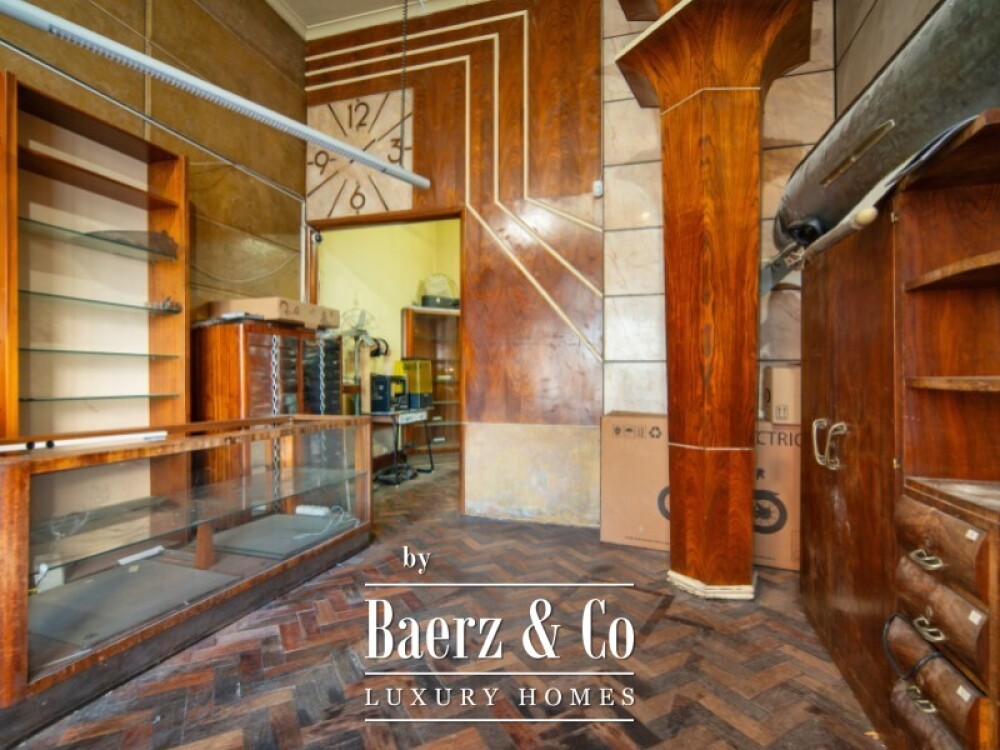 This commercial space Lisboa is available for rent, distinguished by its architectural heritage and original 1930s furnishings. Set across 112 m² with ceilings reaching approximately five metres, the property maintains its authentic cabinetry, display cases, and period woodwork. Two generous shop windows connect the interior to the city, complemented by a marble façade and independent street access.