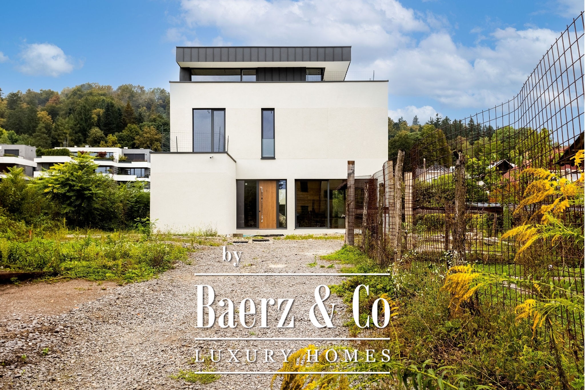 In one of the most desirable and elite locations in Ljubljana, in the heart of Rožna Dolina, a spacious and bright villa in the extended third construction phase is for sale. With its contemporary architecture, high ceilings, and panoramic windows, it creates a sense of space, airiness, and openness towards nature.