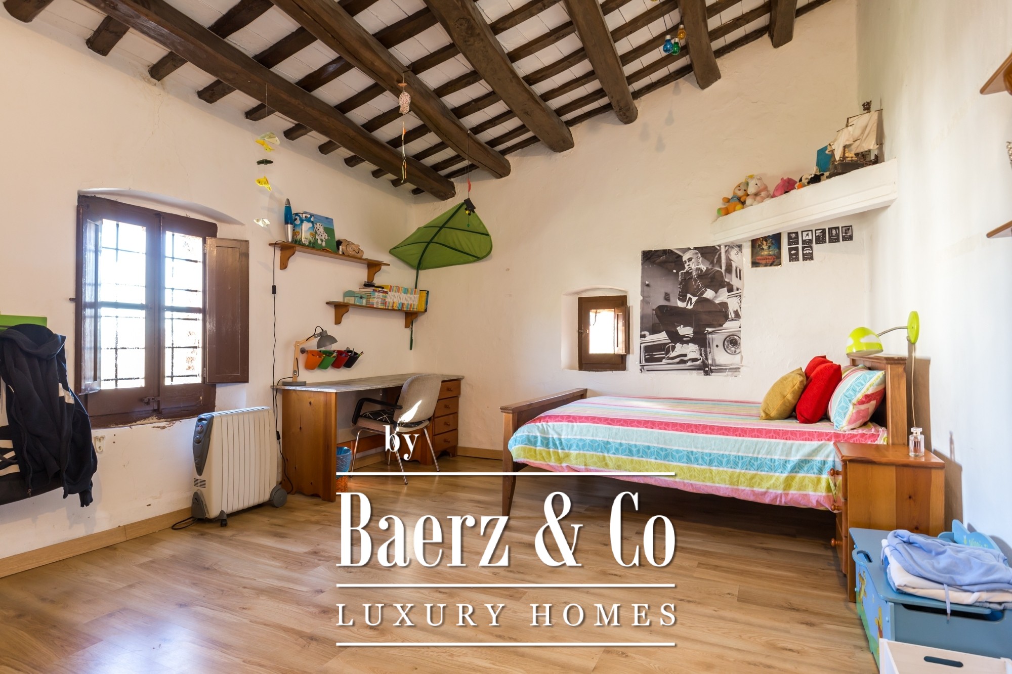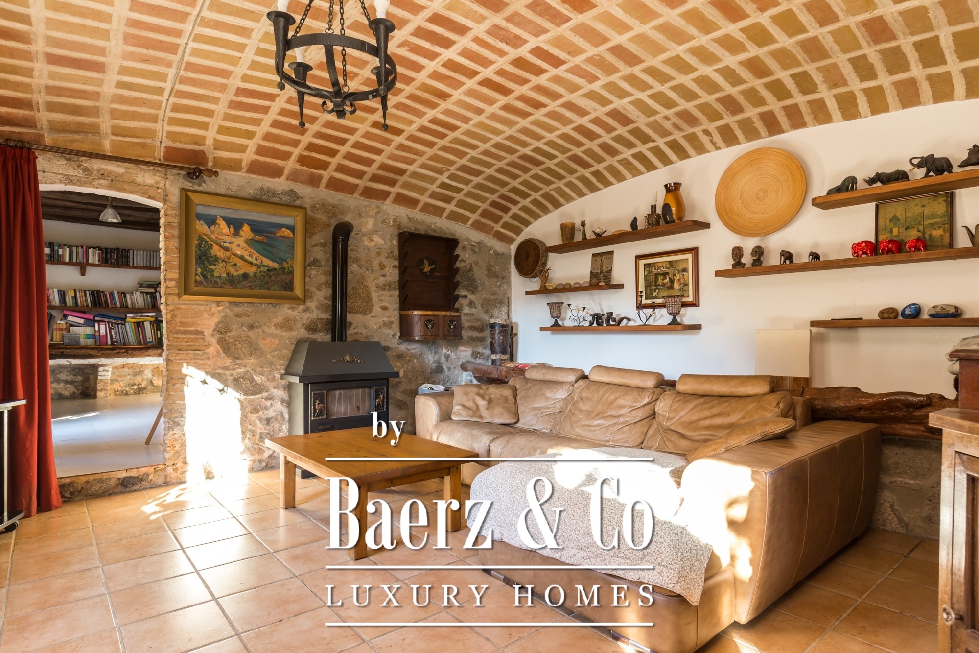 The pool is situated in an elevated location, creating a tranquil retreat within the estate’s natural rhythm. An elegant driveway approaches the property, where a garage enhances convenience. Opportunity exists for bespoke refinement within spaces ready for renovation, suited both for residential use or as an exclusive retreat. This farmhouse for sale in Llagostera is poised between history and possibility, in the heart of inland Costa Brava.