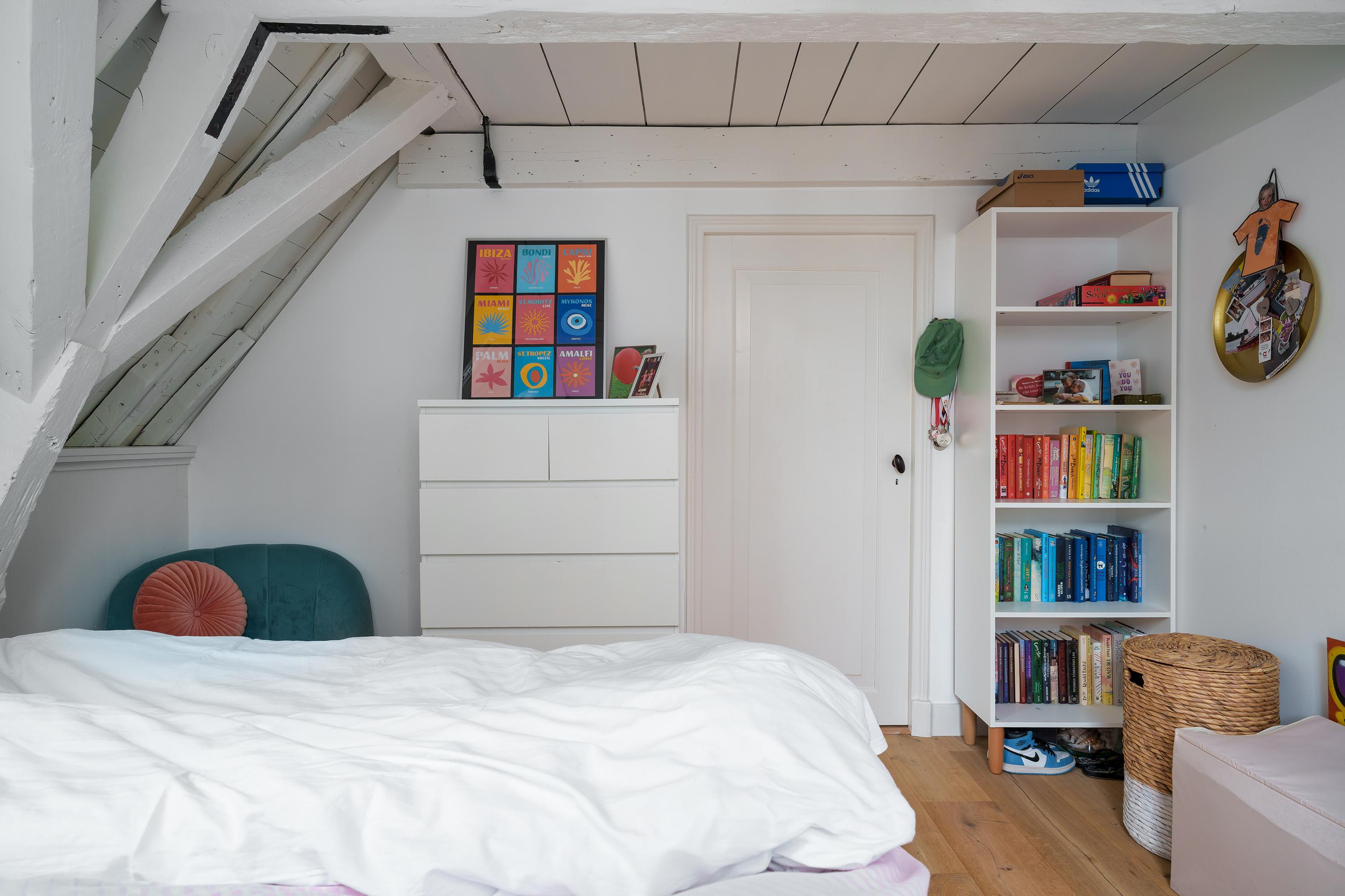 The characteristic beam construction is also clearly visible on this floor and underlines the historic character of the house. At the front of the house are two comfortable bedrooms, both with a view of the characteristic Dorpsstraat. Both have large windows and a skylight, allowing plenty of pleasant daylight to enter.
