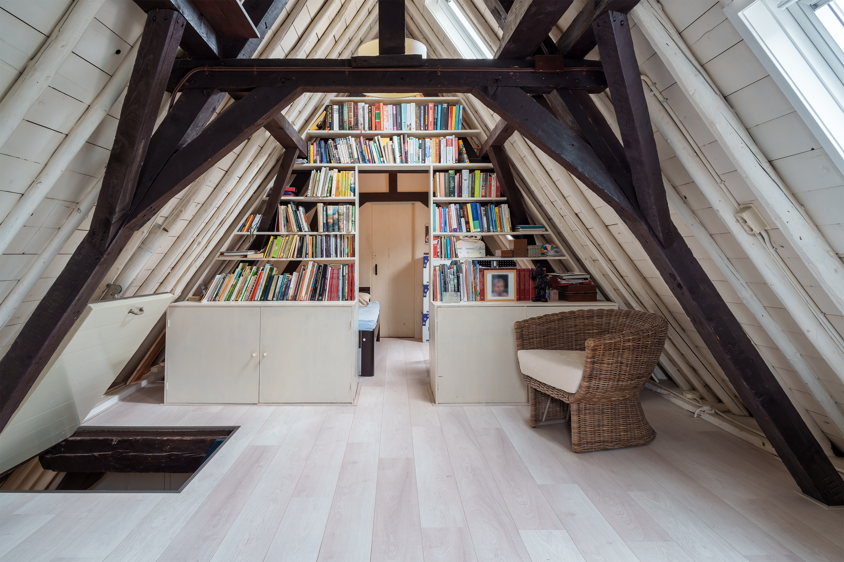 Layout of the attic floor: A fixed staircase leads to the spacious open attic with a ridge height of approximately 3.20 metres. This floor is an absolute plus point of the house. The washing machine connection and central heating system are also located here. The space is ideal for creating one or more extra bedrooms, a workshop or studio, gym, playroom or a combination of work and accommodation. There is also a separate storage room.