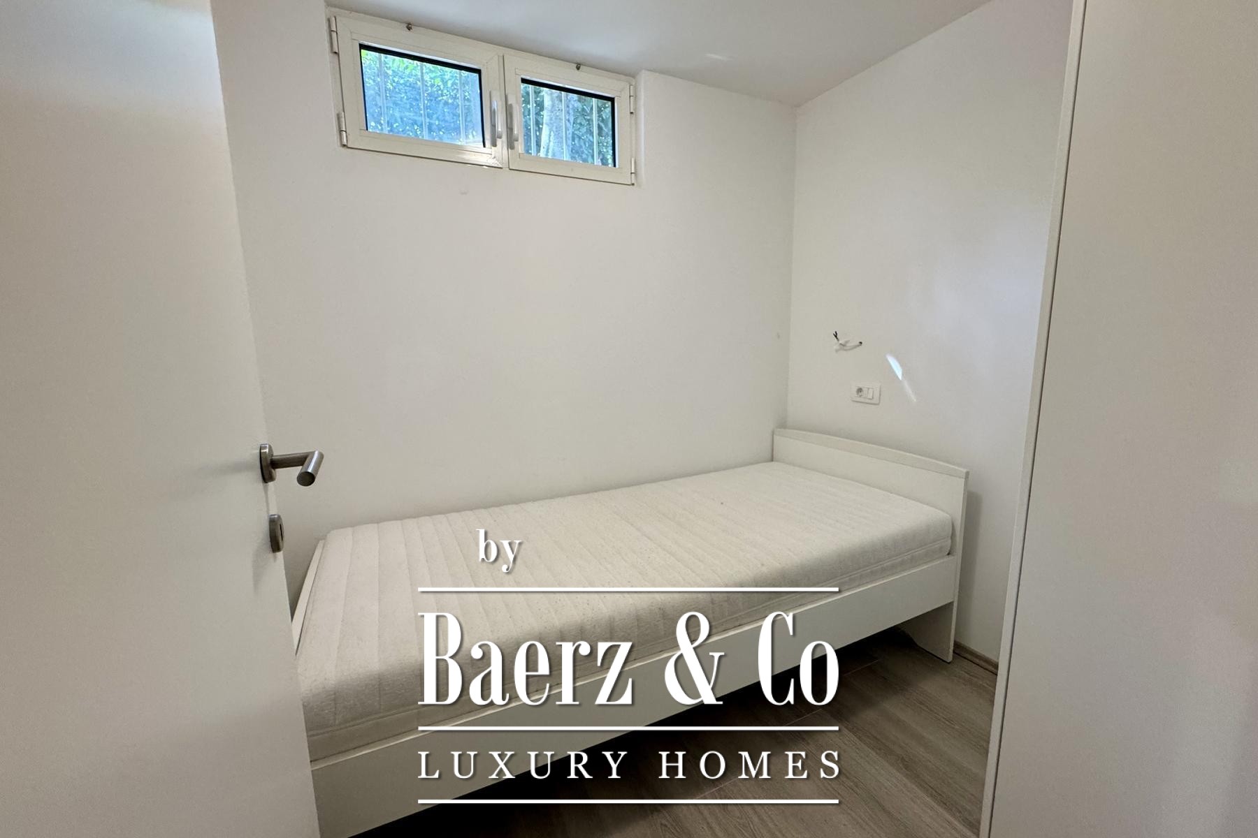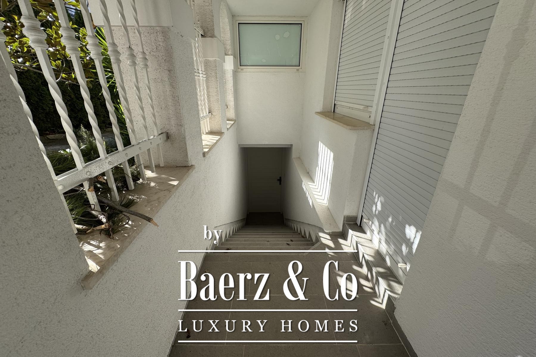 Four additional apartments, each thoughtfully self-contained with bedroom, bathroom, kitchen, living space, and terrace, offer flexibility for hosting guests or extended stays. A further apartment in the basement adds two more bedrooms, a kitchen, bathroom, and storage room. The property includes eight bedrooms and eight bathrooms in total, and a garage set within gardens planted with mature Mediterranean flora. Parking for four cars is provided within the grounds, enhancing both security and ease.