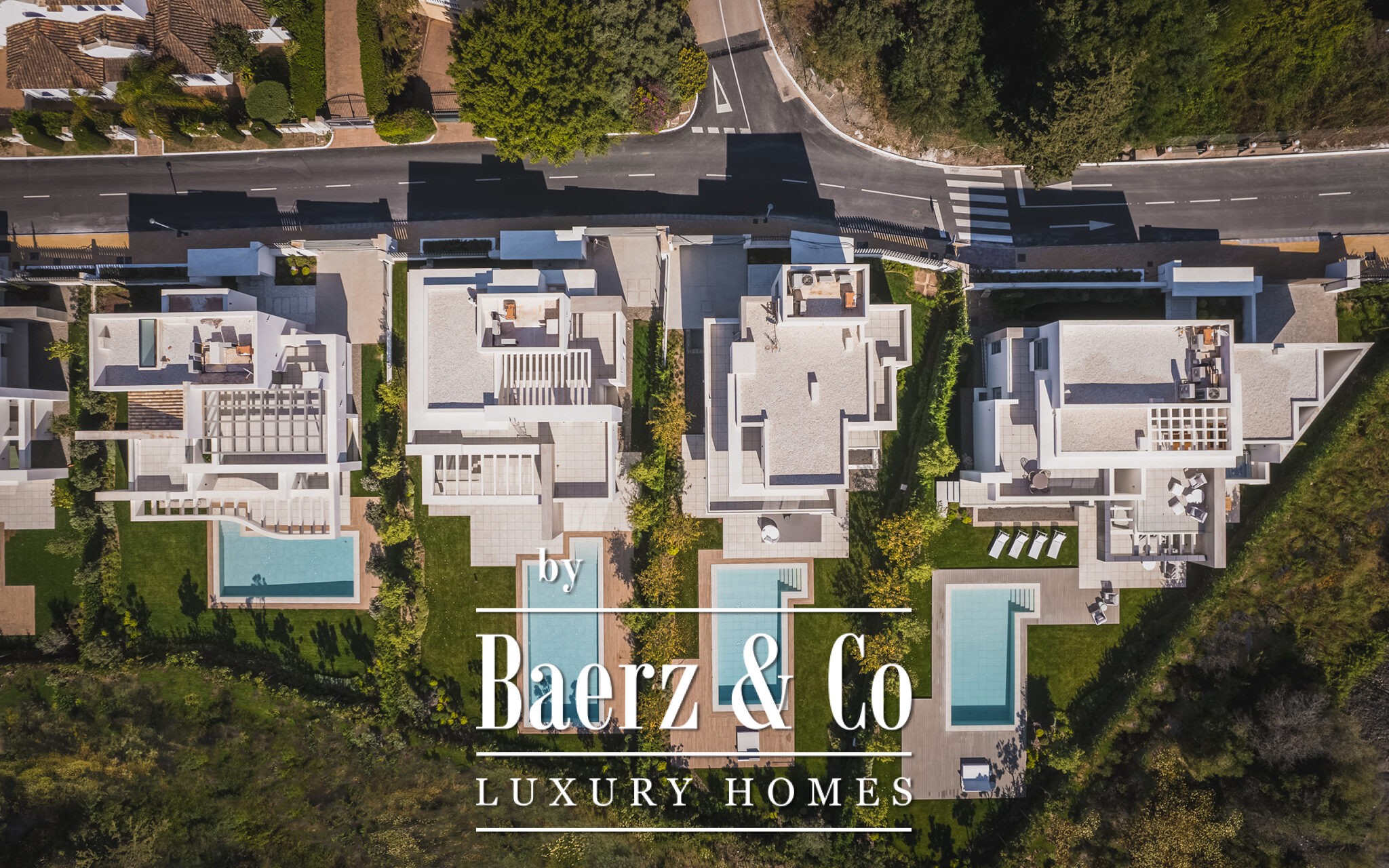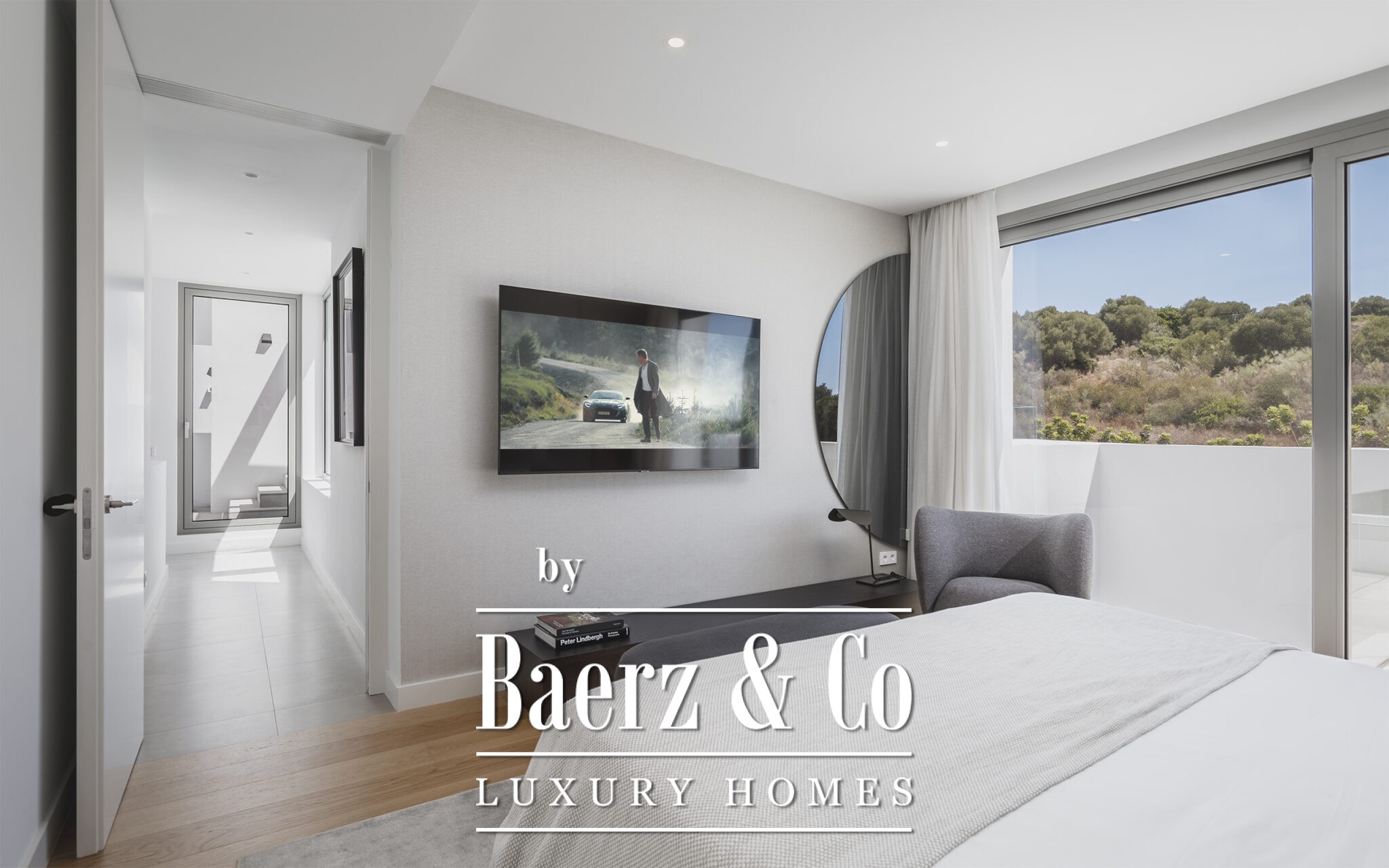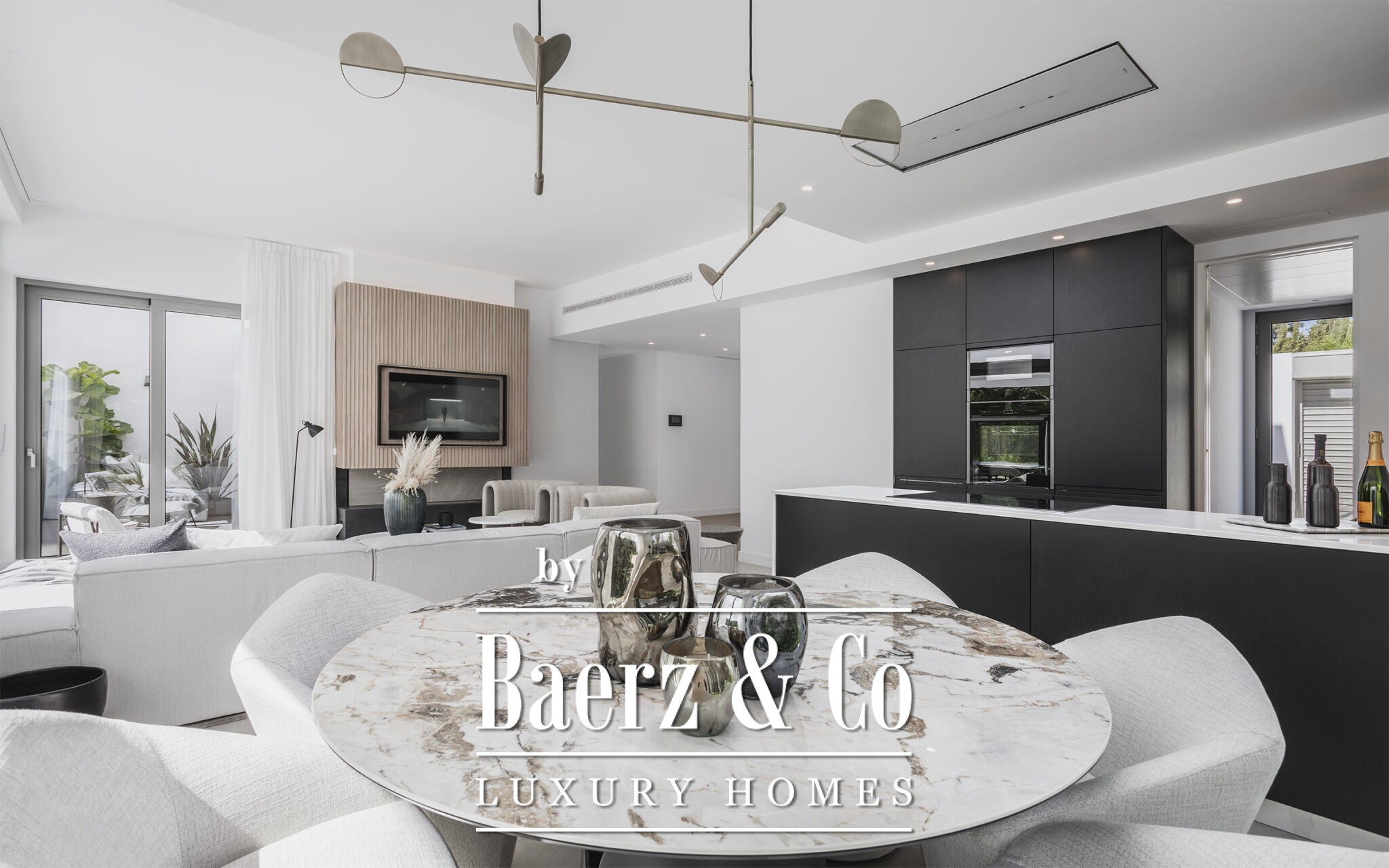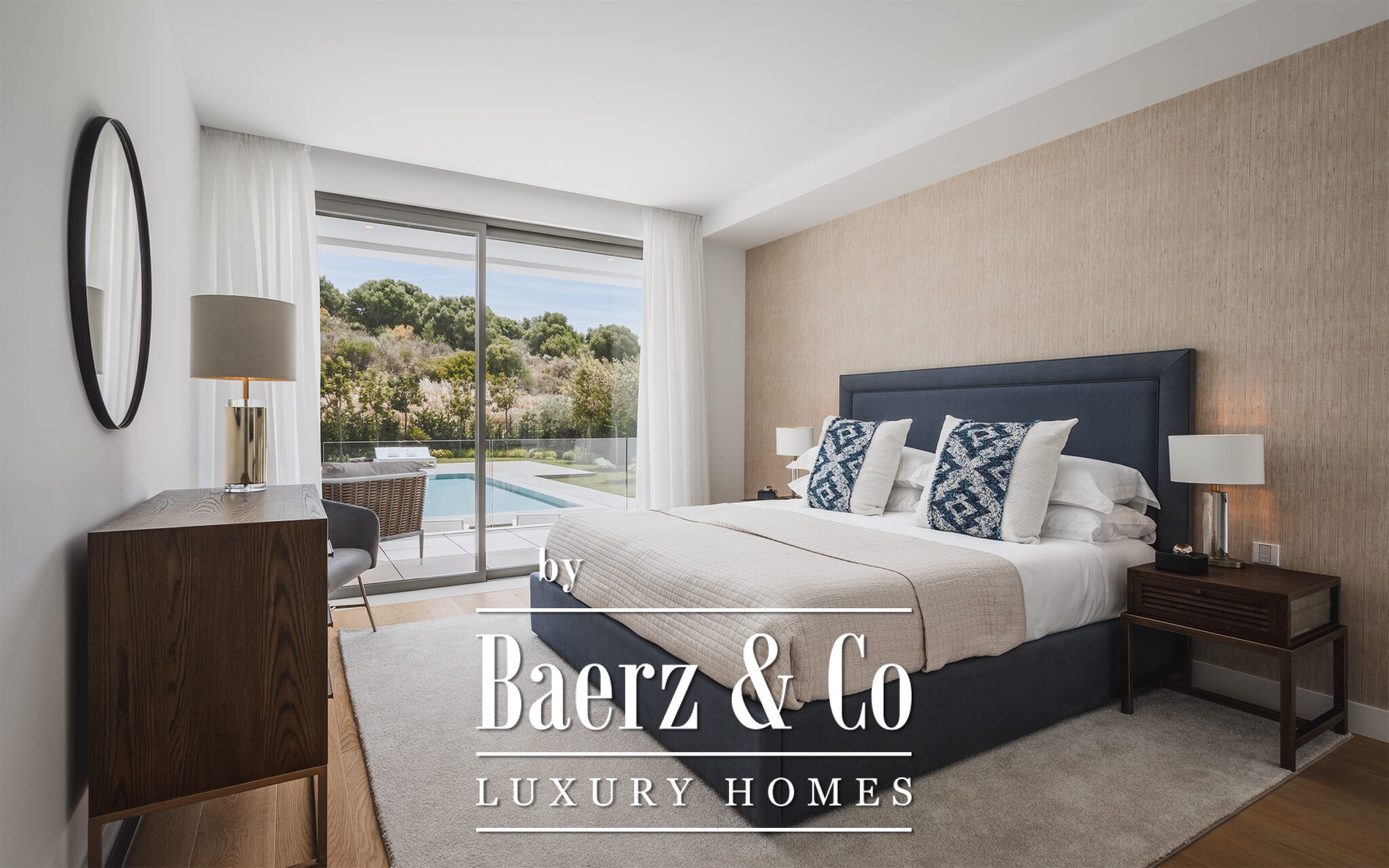 Villa Marbella in El Paraiso offers a tranquil and sophisticated setting among the Andalusian hills, surrounded by the exclusivity of a select gated community of just nine residences. This villa, with 626 m² of living space set upon an 808 m² plot, is designed for those seeking seclusion and easy proximity to Marbella, Estepona, and the coast. Villa Marbella in El Paraiso presents clean lines and generous south to southeast orientation, ensuring interiors are flooded with natural light. Floor-to-ceiling glazing connects open-plan living spaces and a sculptural, high-end German kitchen to terraces, private landscaped gardens, and a personal swimming pool. Each bedroom features en-suite bathrooms, elegant wood flooring, and muted, contemporary finishes—combining Villeroy & Boch fixtures, grey marble tiling, and thoughtful lighting. The residence privileges comfort and refinement, with amenities such as underfloor heating, hot and cold air conditioning, home automation, and a fireplace. Two covered parking spaces, intelligent movement sensors, and a multi-purpose basement—ideal for a gym or cinema—complete the offering. The surrounding El Paraiso enclave is serviced by renowned golf courses, international schools, boutiques, and fine dining, supporting a pace of life defined by discretion and access.