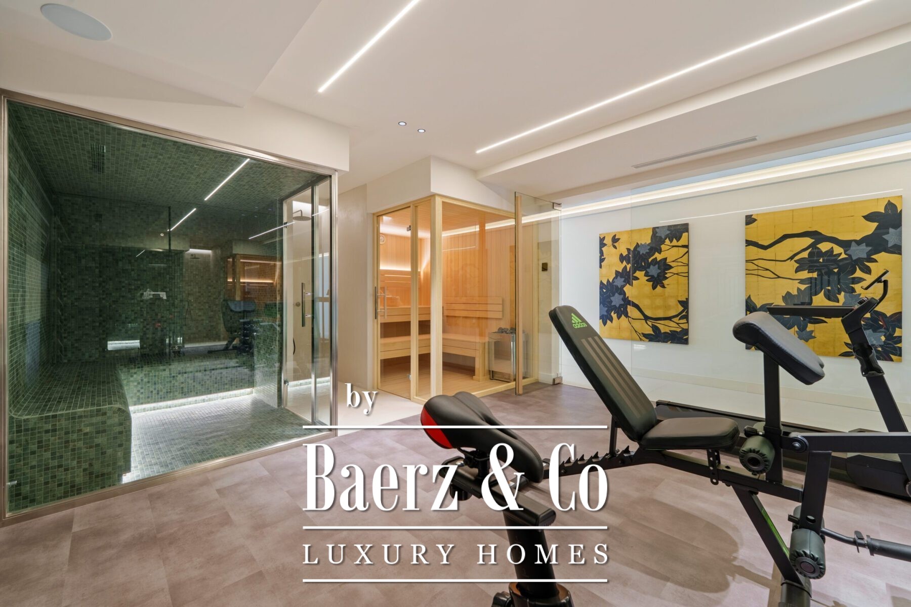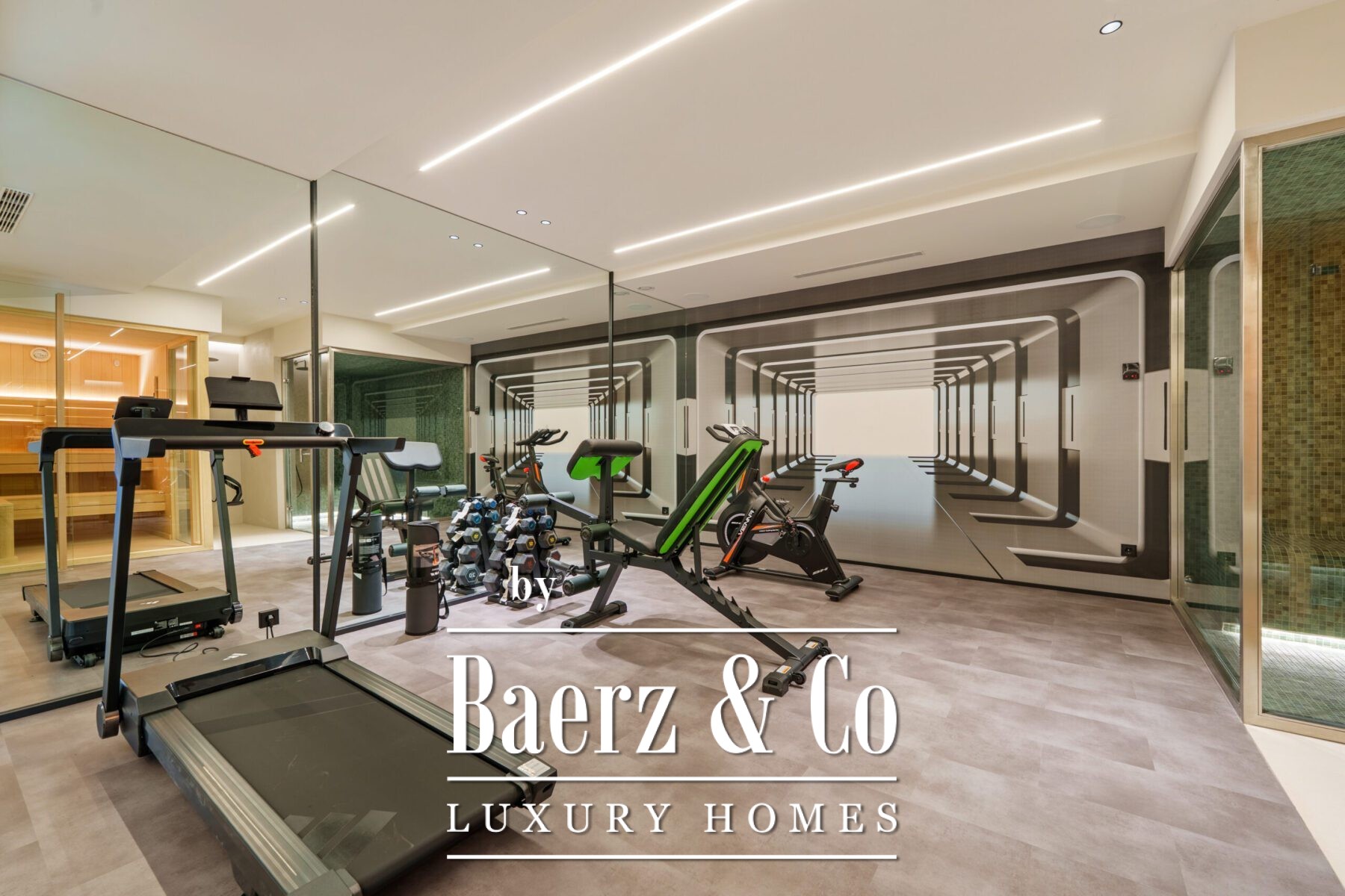 Five serene bedrooms offer direct terrace access and en-suite bathrooms with marble finishes, floating vanities, and freestanding tubs. The primary suite stands out for its grand scale and sunlit private terrace, offering a tranquil refuge. On the lower level, a fully equipped gym, glass-enclosed sauna, and steam room provide a personal wellness sanctuary. A secure garage, sophisticated entry, and mountain views add further refinement to this 612 m² plot, placing every modern comfort within close reach of Marbella’s golf, beaches, and local amenities. This luxury villa for sale in Marbella represents an elevated approach to Mediterranean contemporary living.