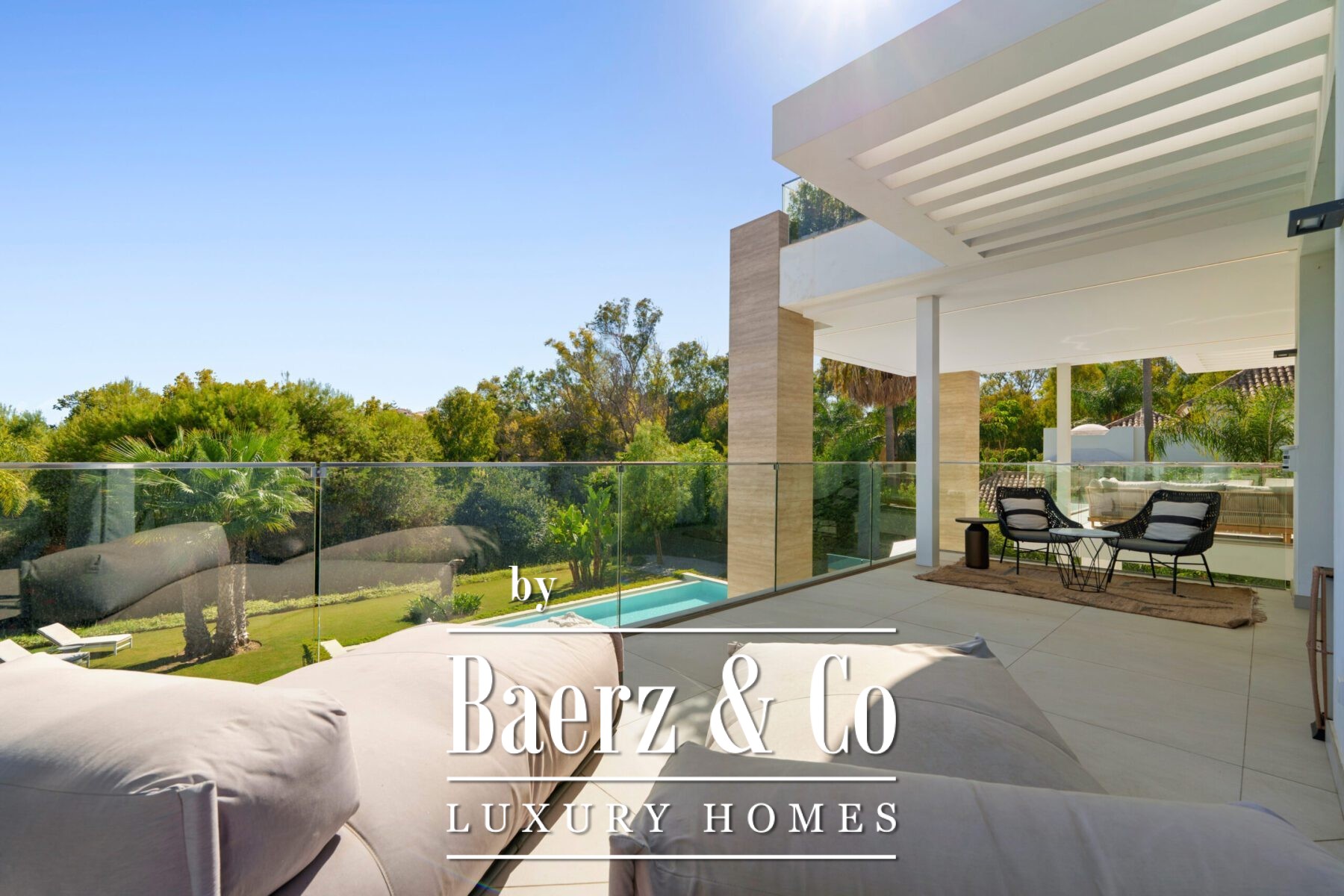 Set within a 24-hour security gated community, this villa complements its serenity with a private garage, advanced amenities, and proximity to golf, the renowned Puente Romano Hotel, and Marbella Club Hotel. The residence delivers the essence of the Marbella lifestyle, blending privacy and sophistication with rare access to both urban vitality and tranquil indulgence. For those seeking a luxury villa for sale in Marbella’s Golden Mile, this property offers a rare union of architectural clarity and luminous southern living.