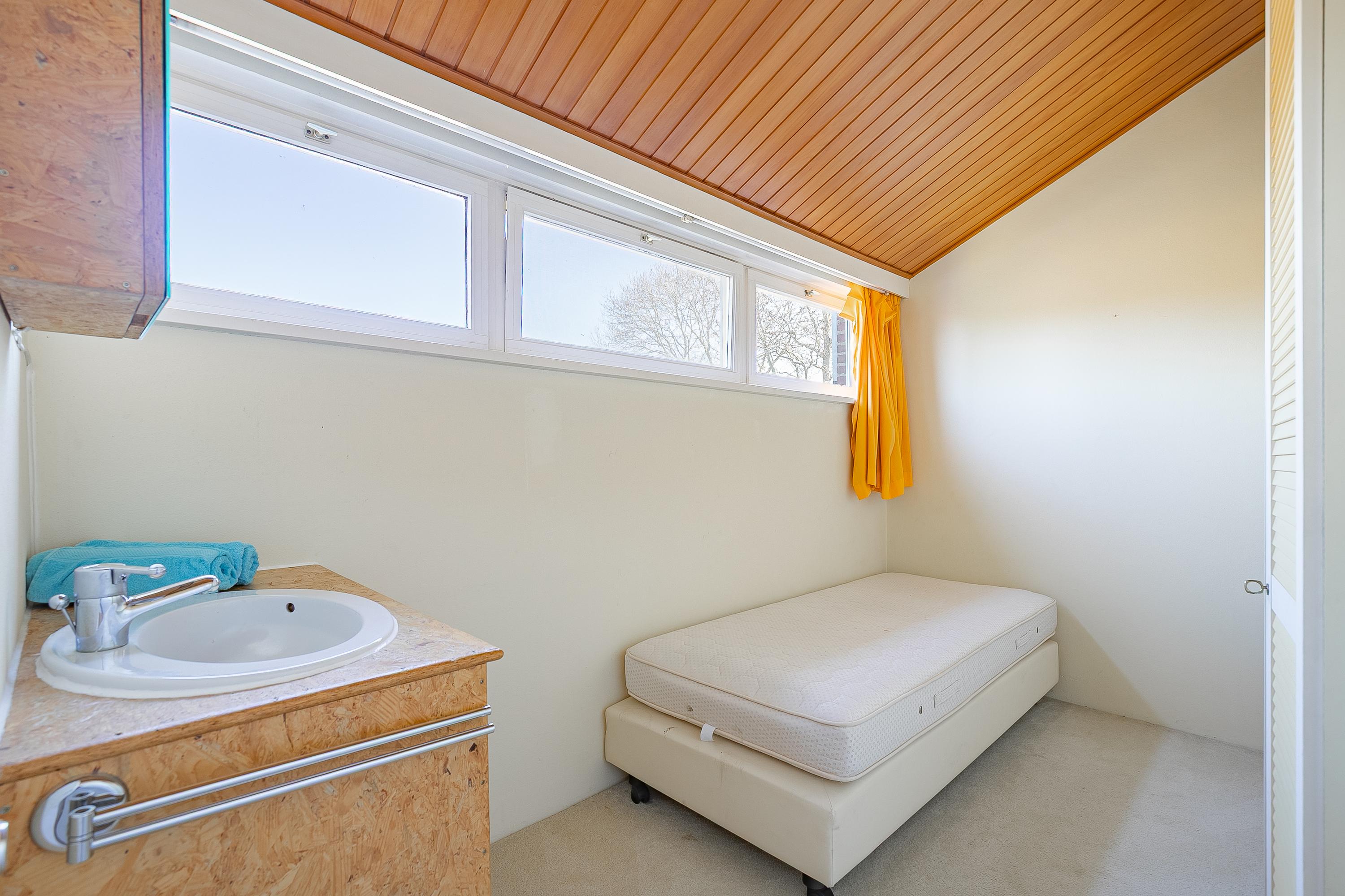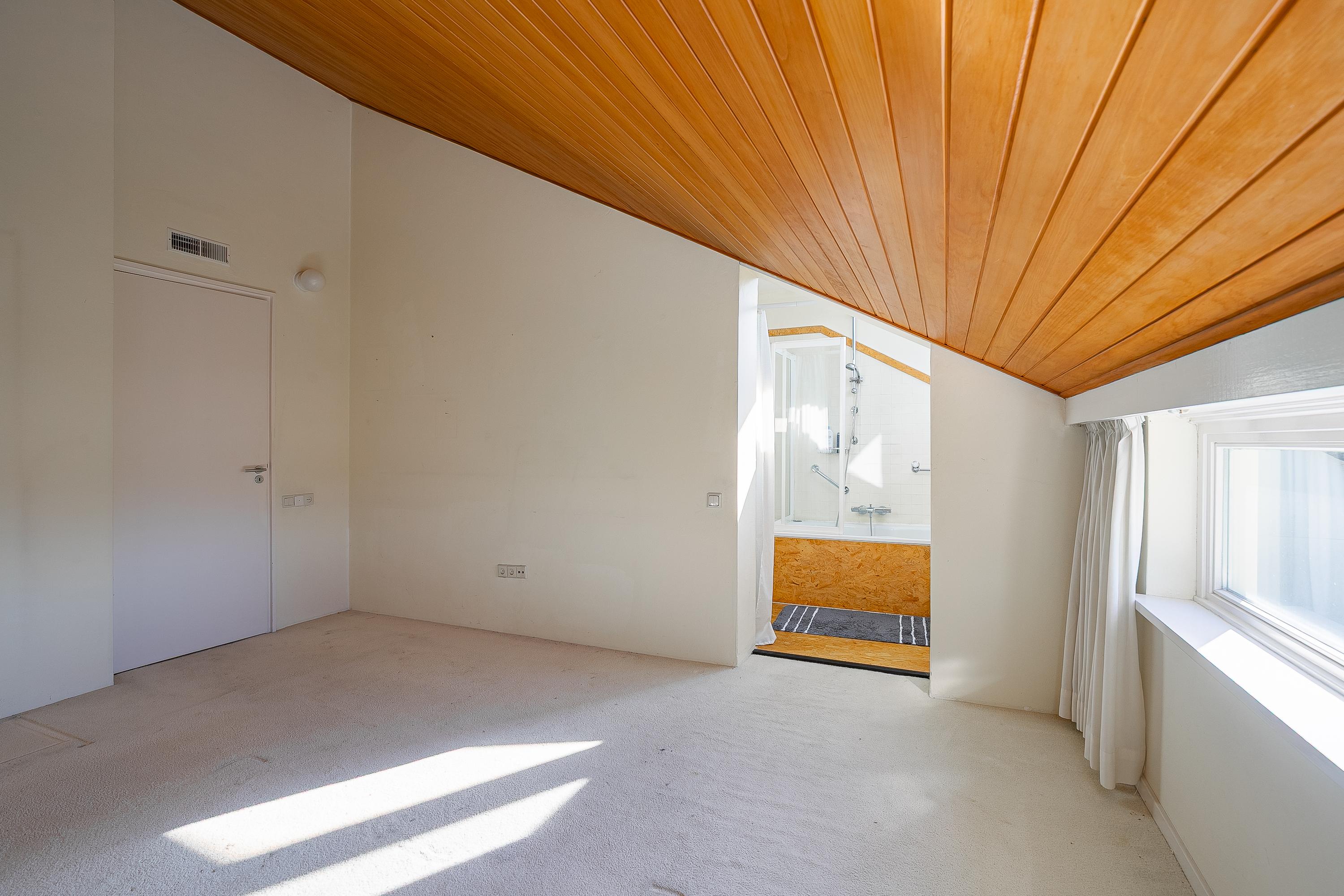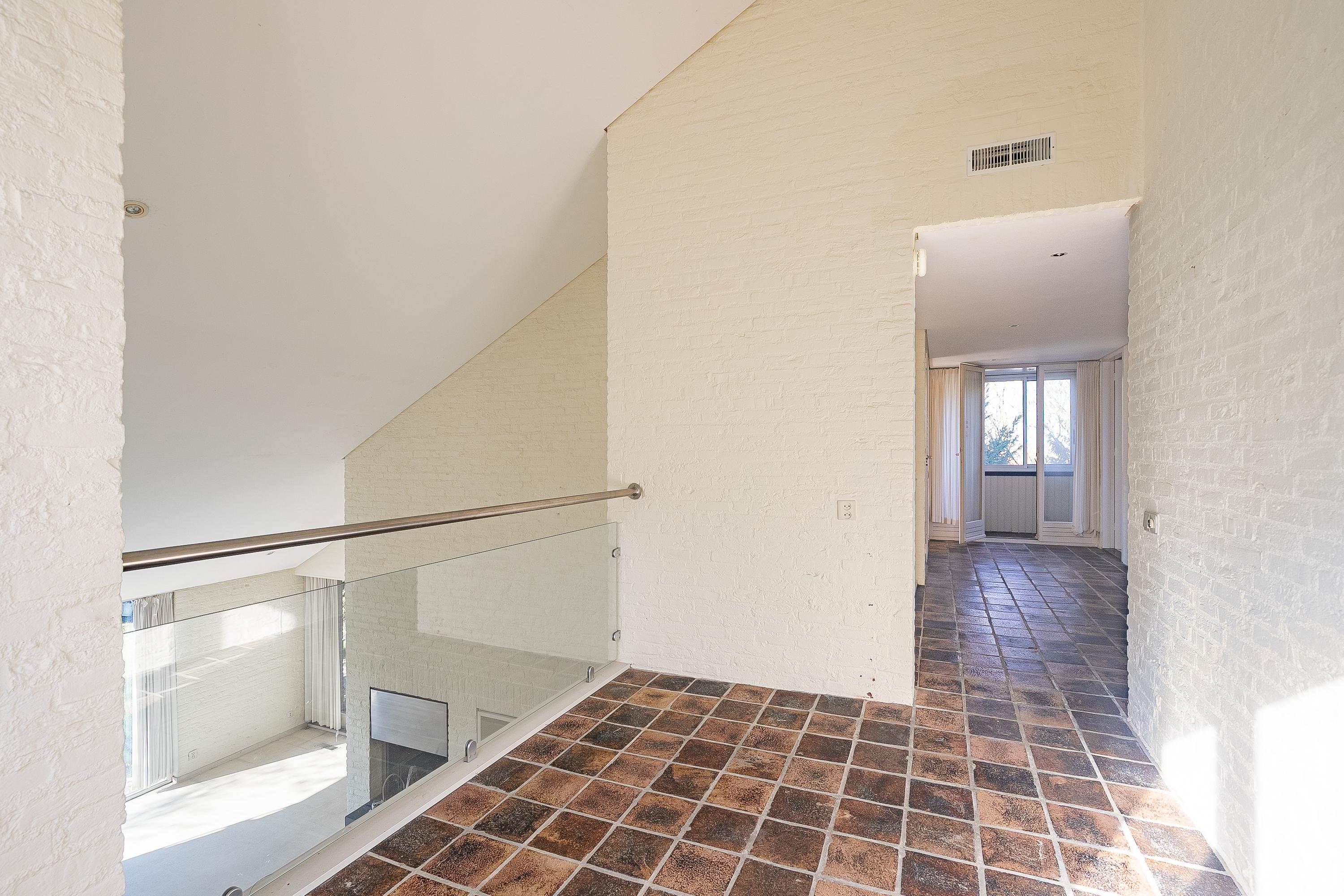 The beautiful semicircular staircase leads to the spacious landing with access to three bedrooms, a bathroom, separate toilet, and a hallway. The bedrooms at the front are approx. 7 and 9.5m² in size and offer beautiful views. The bathroom is approx. 4m² and has a shower, sink, skylight, and access to a storage room. The master bedroom is located at the rear (approx. 17m²) and has an en-suite bathroom. This bathroom (approx. 6m²) has a bath/shower combination, sink, and a dormer window. The porch of approx. 8m² overlooks the living room but can easily be transformed into an extra bedroom.
