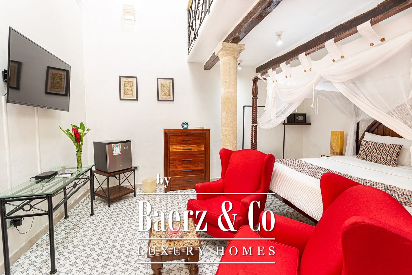 Furnished and operating with all permits in place, the hotel includes amenities such as air conditioning, internet, a well, fans, swimming pool, jacuzzi, and a tranquil yard. The living experience is enriched by the soft sound of the fountain and filtered light moving through the arches, set in the heart of a city known for its culture, gastronomy, and discretion. A rare hotel Merida Historic Center opportunity of provenance and operational simplicity awaits.