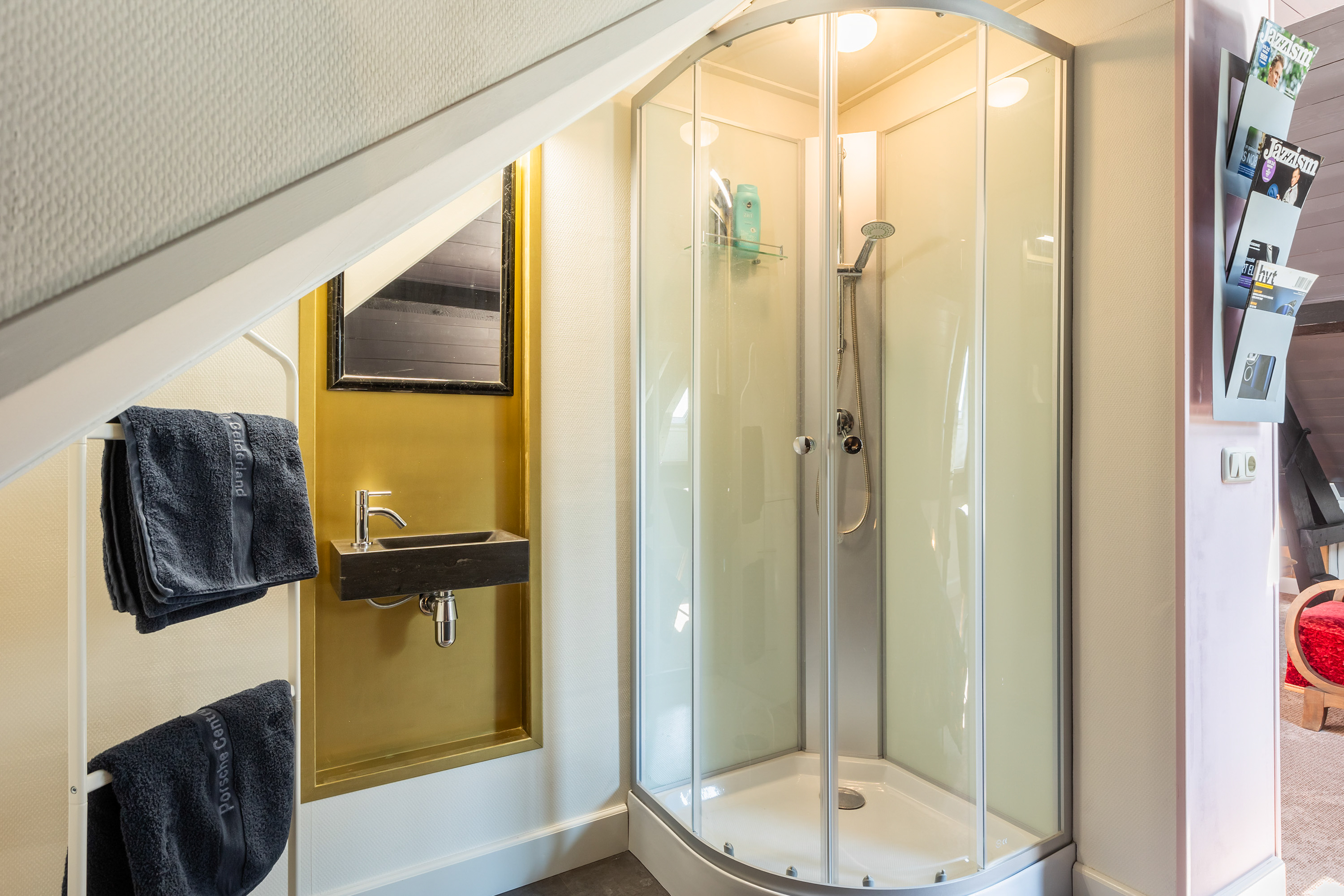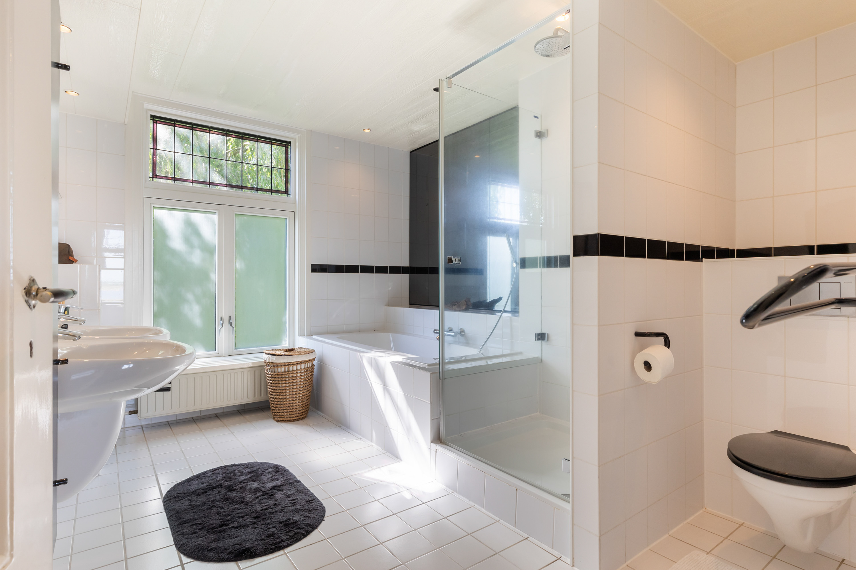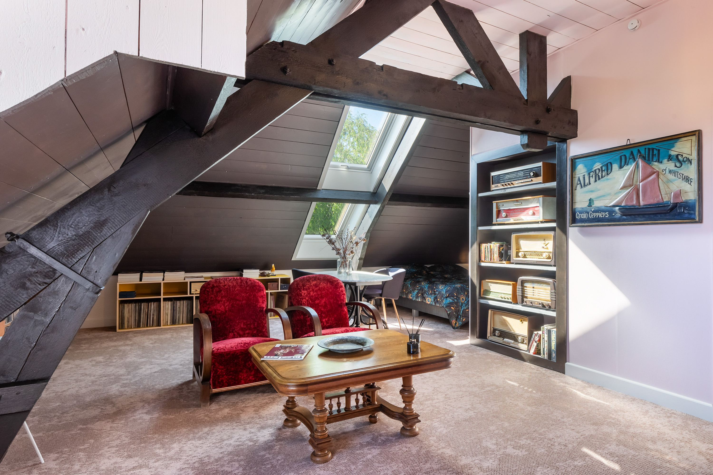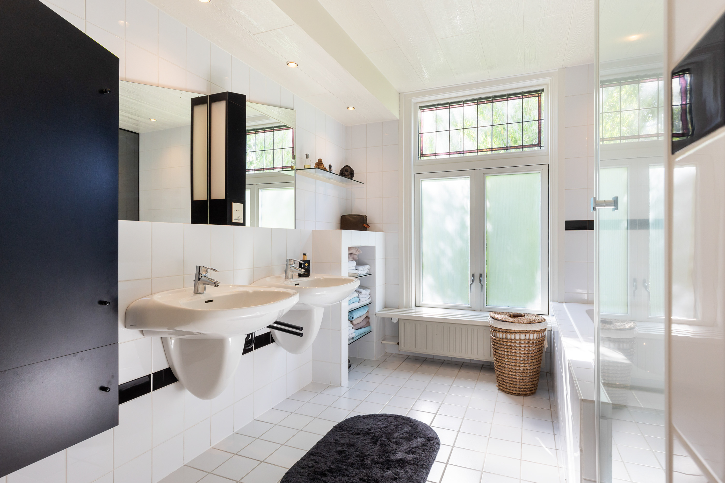 One floor above, a remarkable feature reveals itself: the fully restored conservatory. Surrounded by glass, this space offers breathtaking views of the river landscape and serves perfectly as a lounge or retreat. An intimate roof terrace adjoins this area. This level also accommodates three comfortable bedrooms, a walk-in dressing room and a spacious bathroom equipped with a bath, separate shower, double washbasin and WC.
