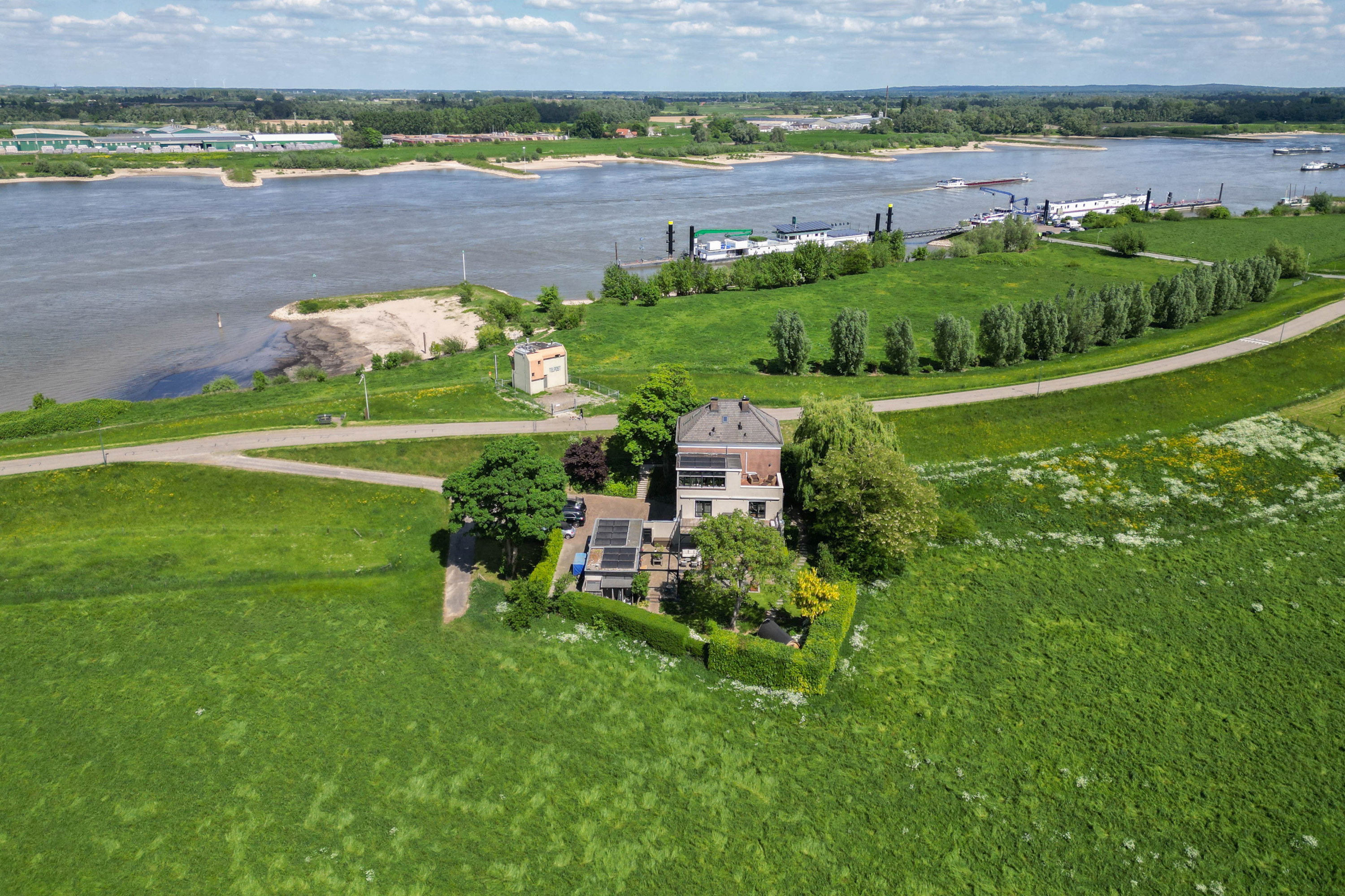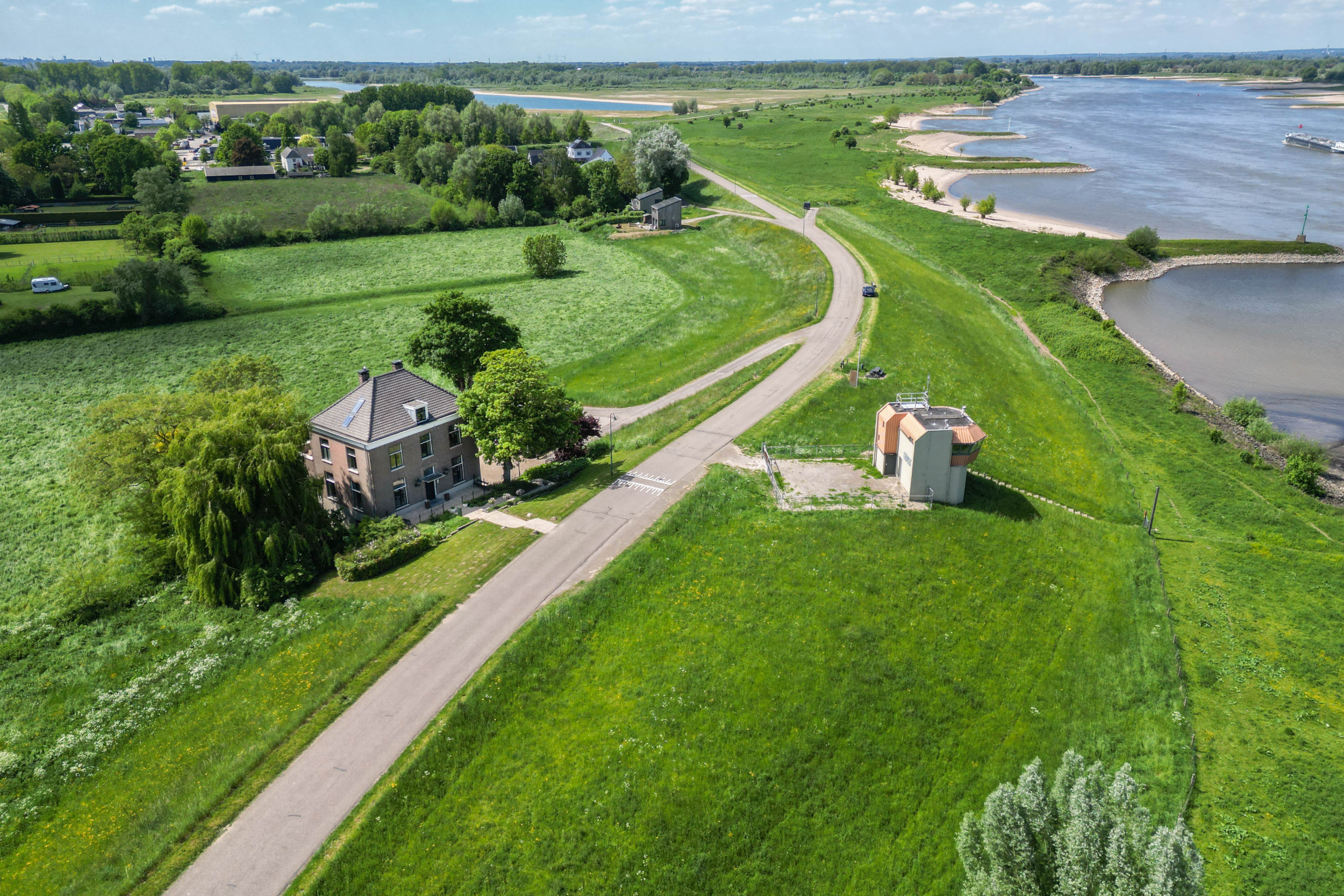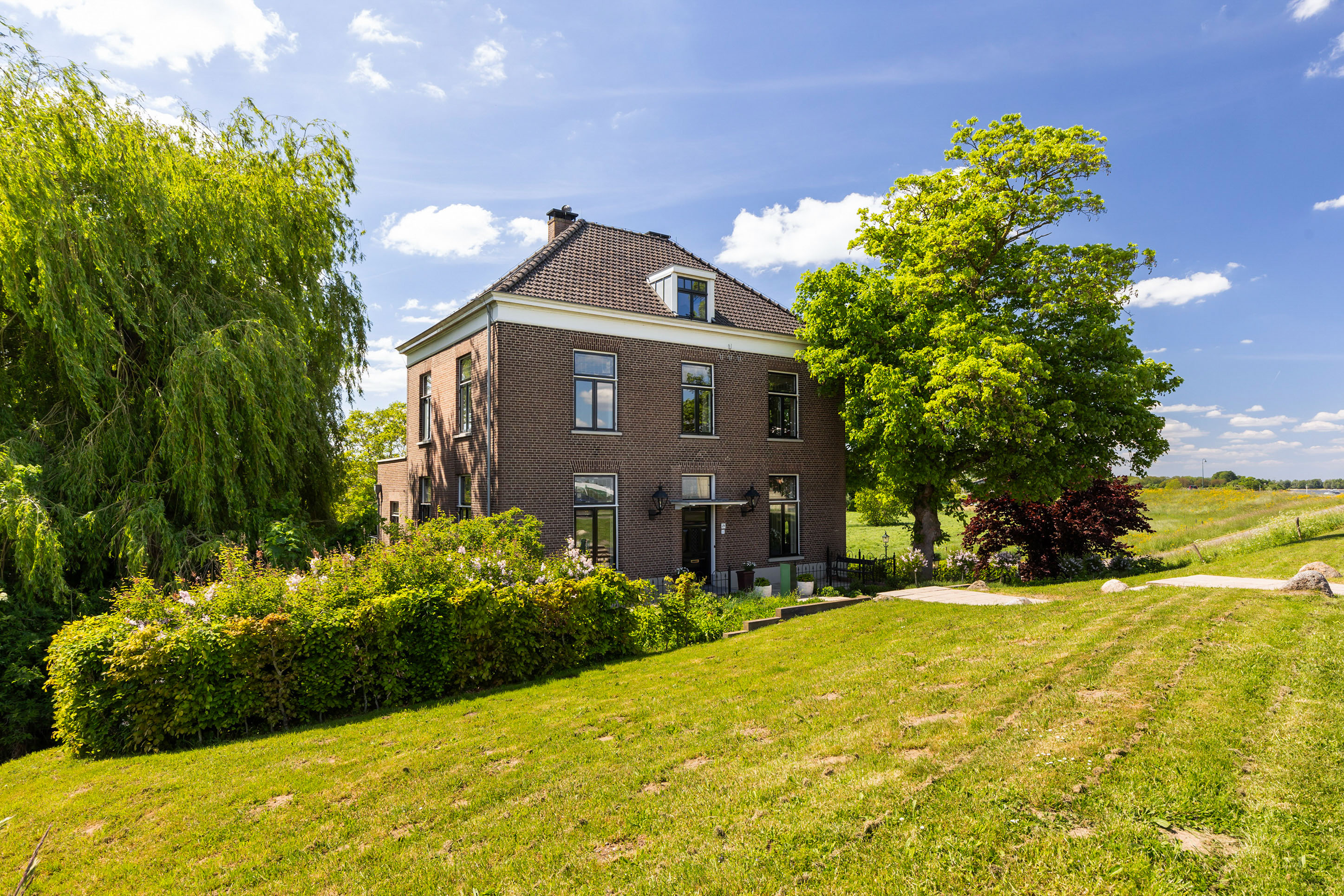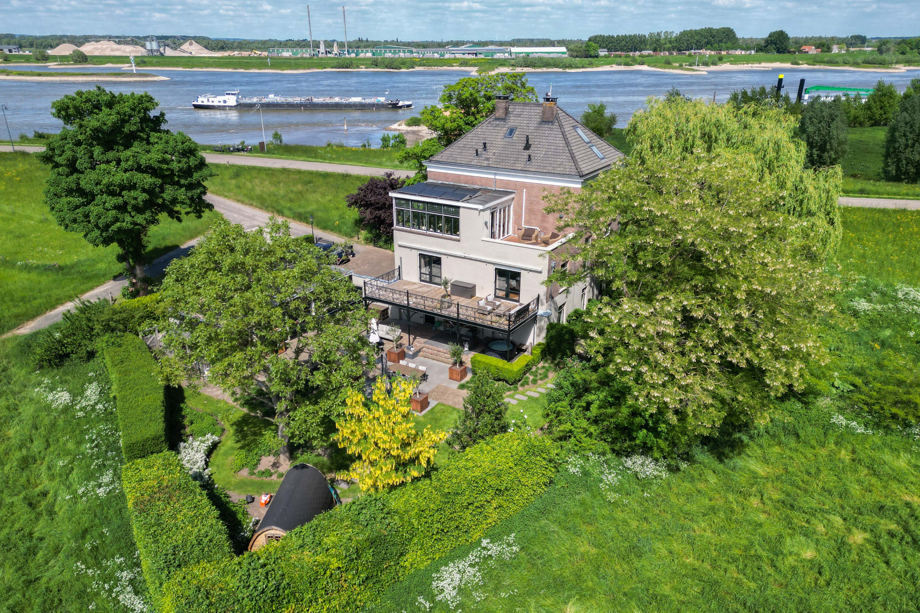 Set in a striking location where water, nature and history converge, this characterful villa presents an exceptional residence of rare distinction. Elevated along the Rijndijk and overlooking the confluence of the Rhine and the Waal, this former estate manager’s house offers a unique combination of privacy, space and panoramic views. The property is situated on a fully enclosed plot, surrounded by a beautifully landscaped garden that complements the quality and stature of the home.
