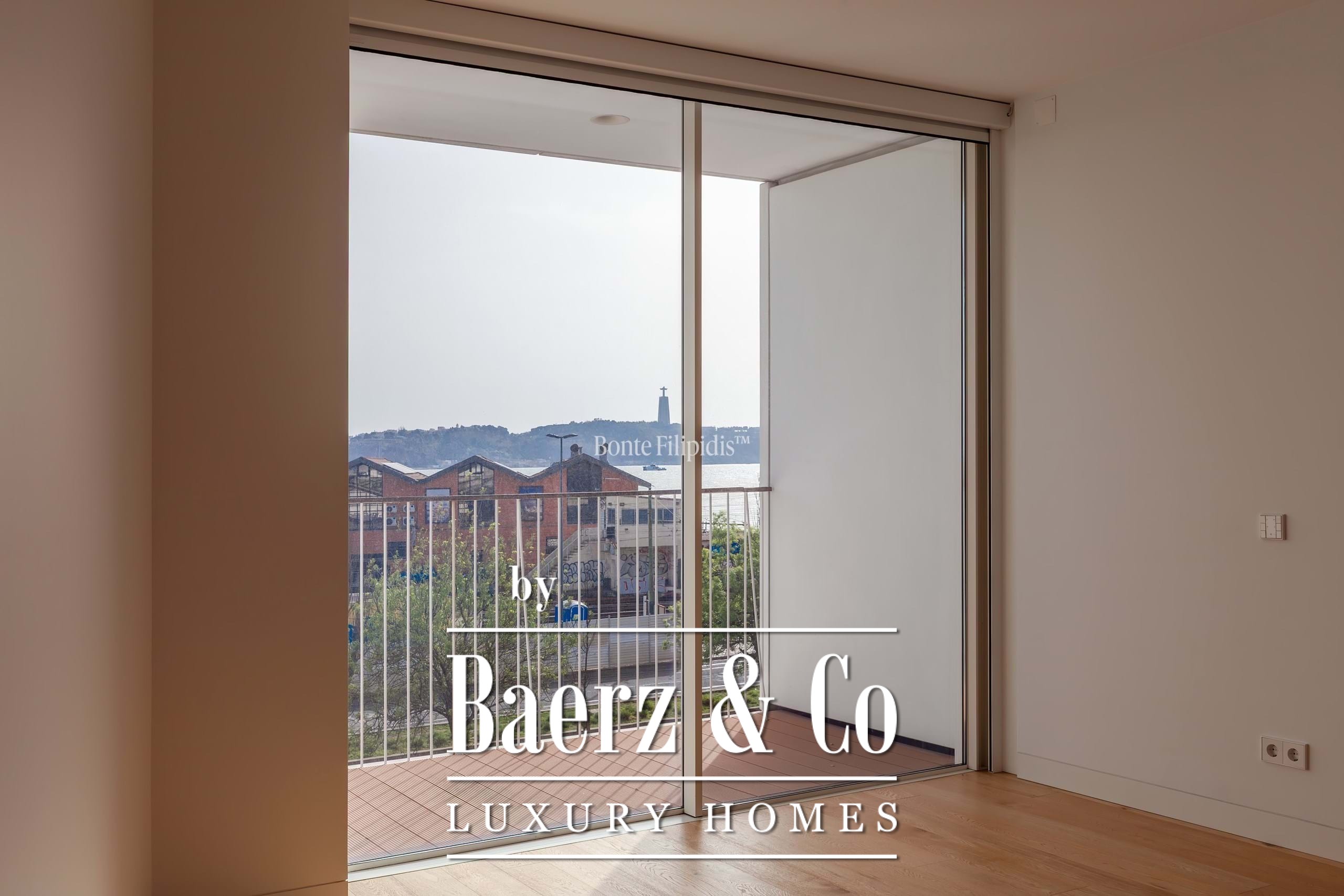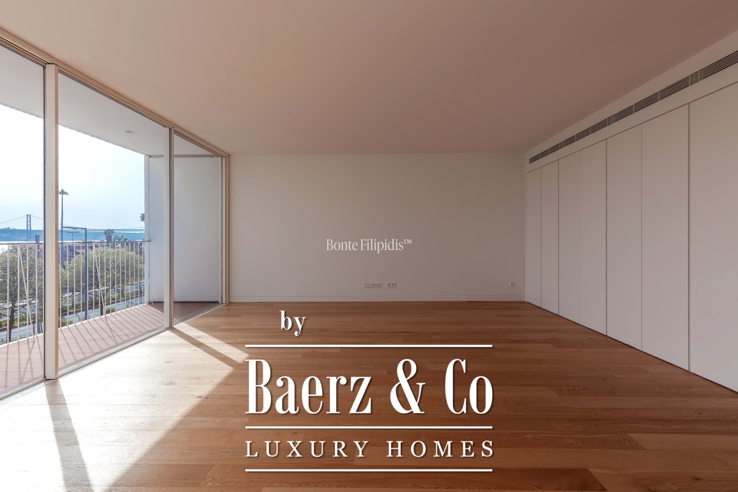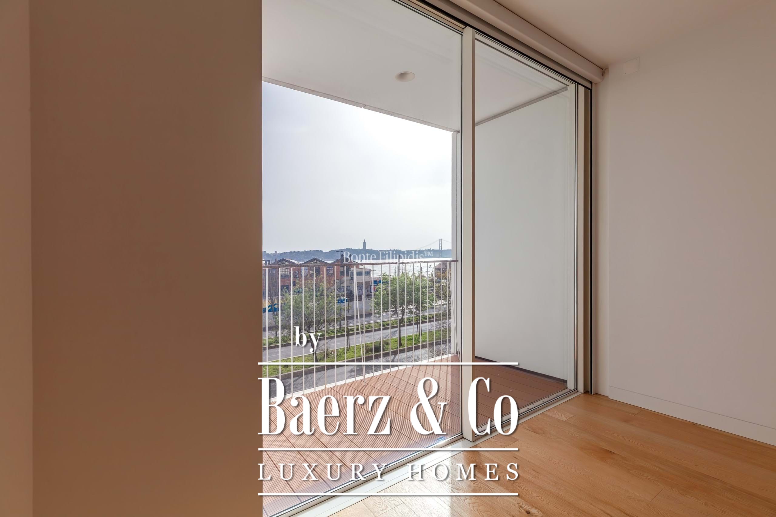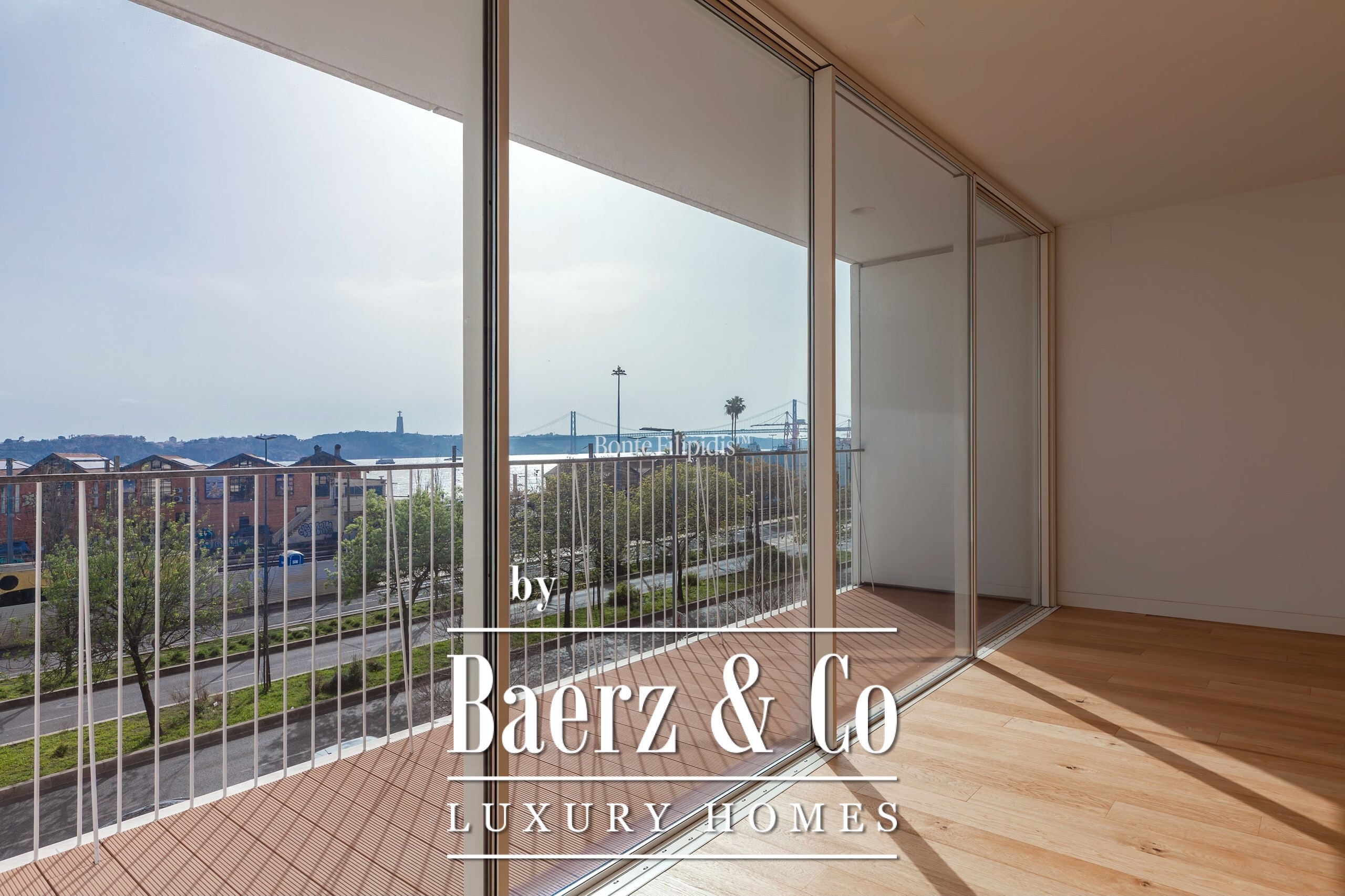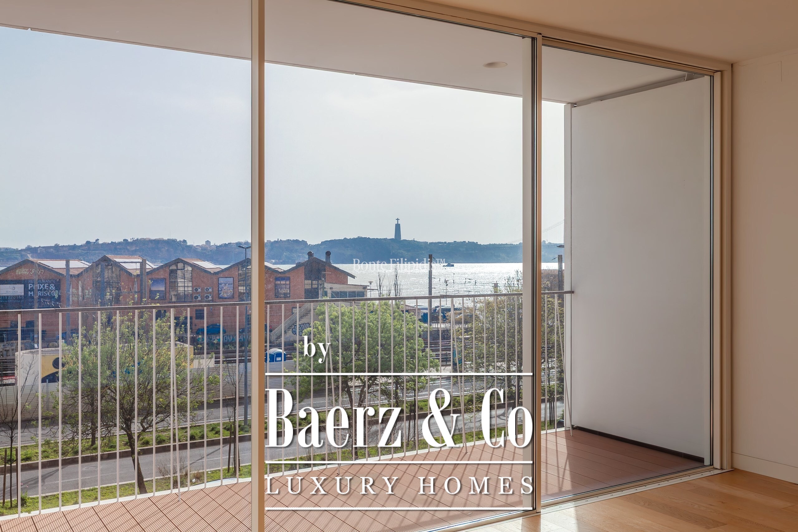 Apartment Misericórdia is set along Av. 24 de Julho, between Cais do Sodré and the Lisbon riverfront, offering an unbroken view across the Tagus and toward the 25 de Abril Bridge. This three-bedroom apartment, completed in 2023, occupies 183 m² of internal space within 244 m² gross area, defined by natural light and uninterrupted flow. The main living and dining space opens seamlessly to a 13.8 m² balcony, framing the daily rhythm of the river and city beyond.