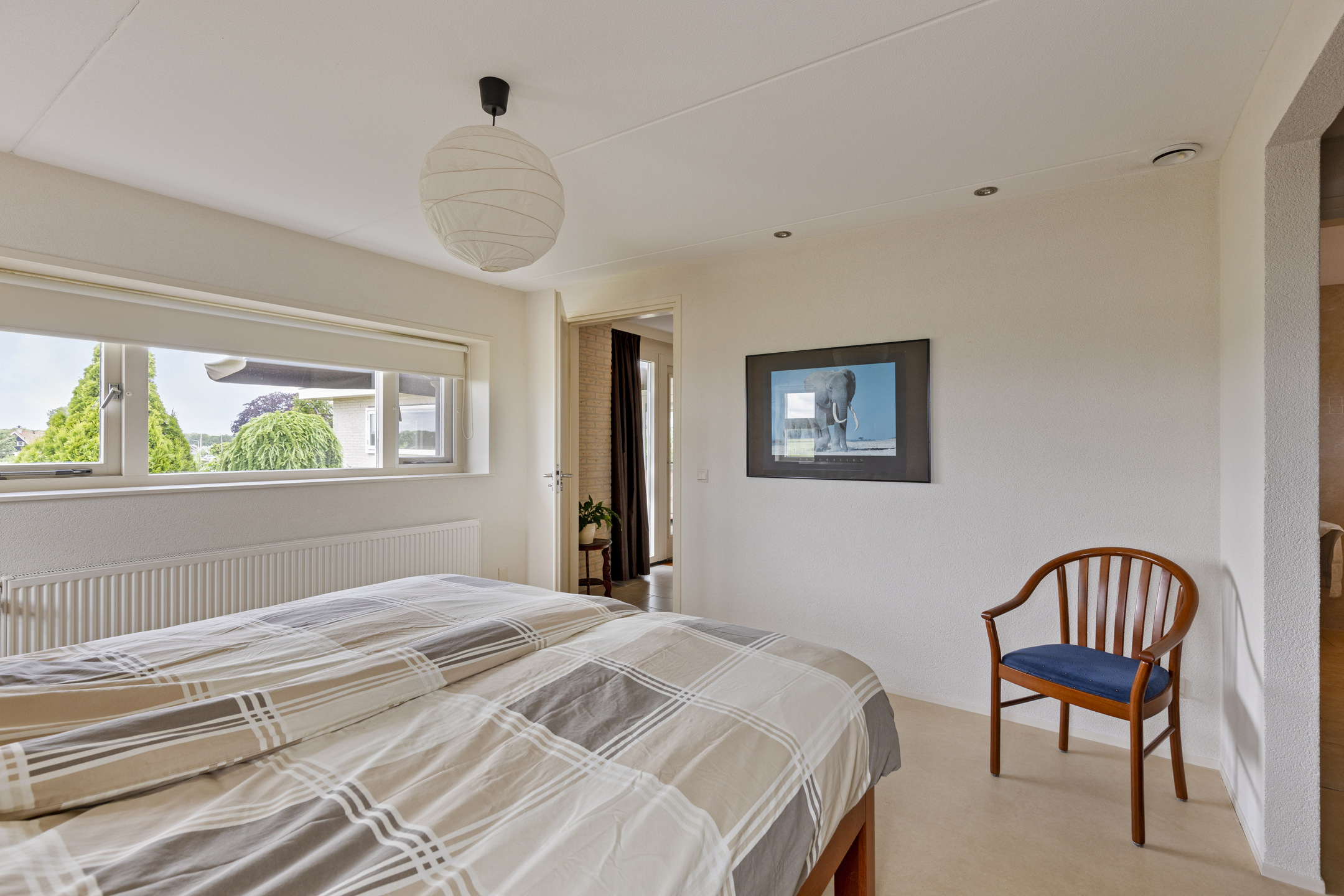 The master bedroom is at the head at the rear and has a beautiful view of the garden and the ash tree. Next to the room a large bathroom, complete with WC, double sinks, a shower with seat and a wonderful whirlpool. For your wardrobe there is a spacious walk-in closet.