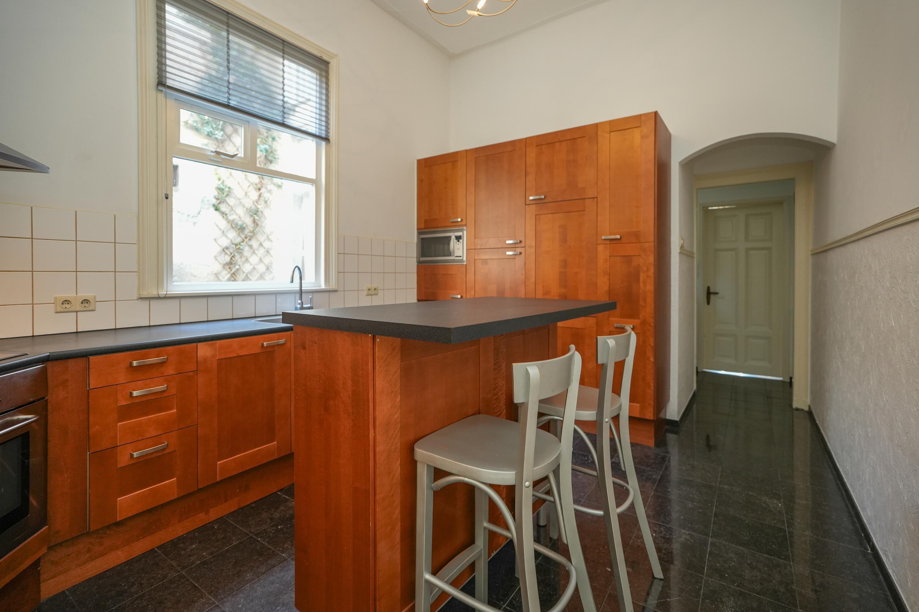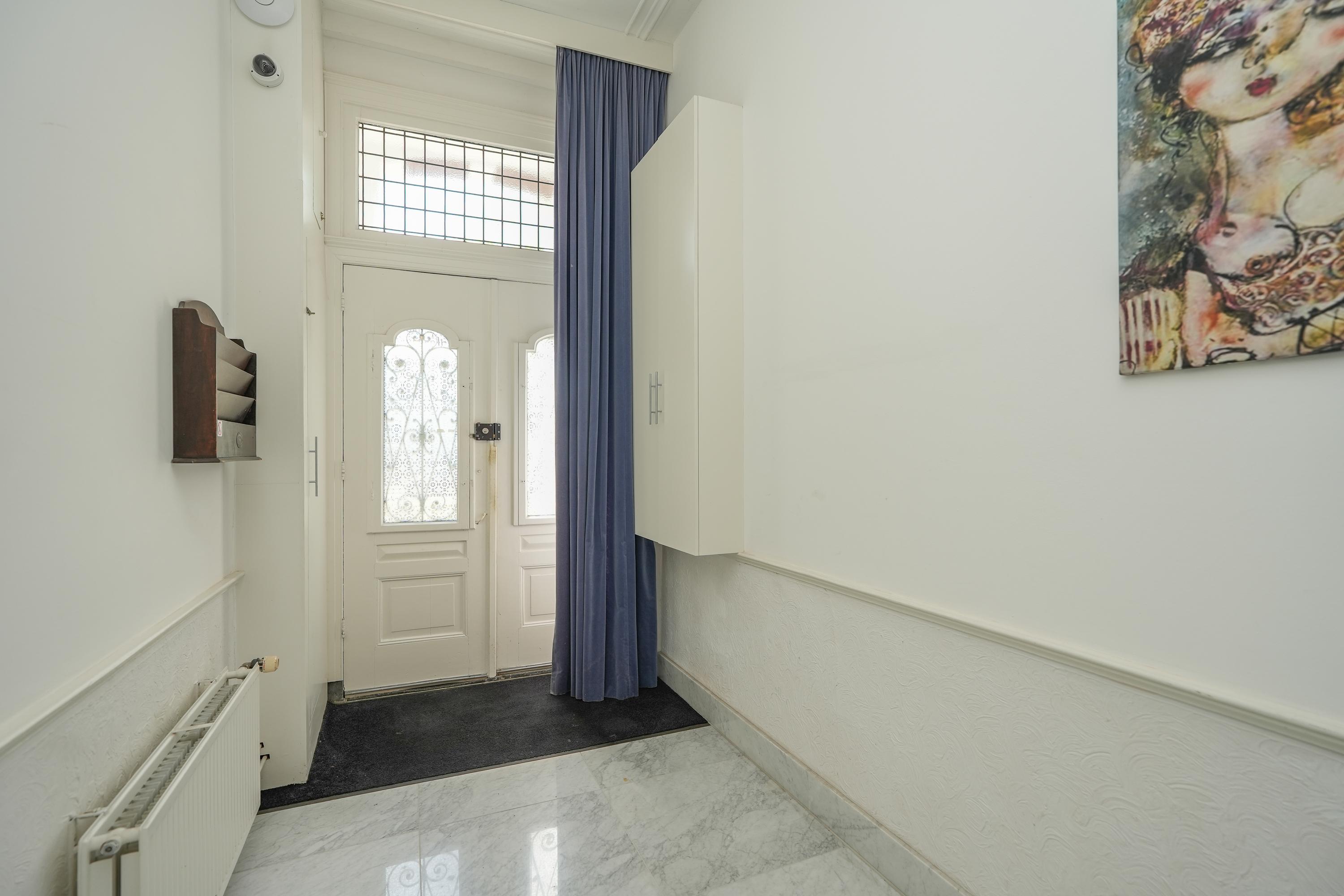 Statige hal/entree met meterkast en prachtig authentiek trappenhuis met marmeren vloeren, woonkamer en suite en eetkamer met schuifpui. In de kamer aan de voorzijde zijn de originele vensterbanken nog aanwezig, hier kan je lekker van de ochtendzon genieten. Via een tussenhal zijn het toilet, keuken en slaapkamer met badkamer bereikbaar. De sfeervolle binnentuin is toegankelijk zowel vanuit de eetkamer als de slaapkamer. De ruime keuken heeft een U-opstelling met inbouwapparatuur en een barretje.