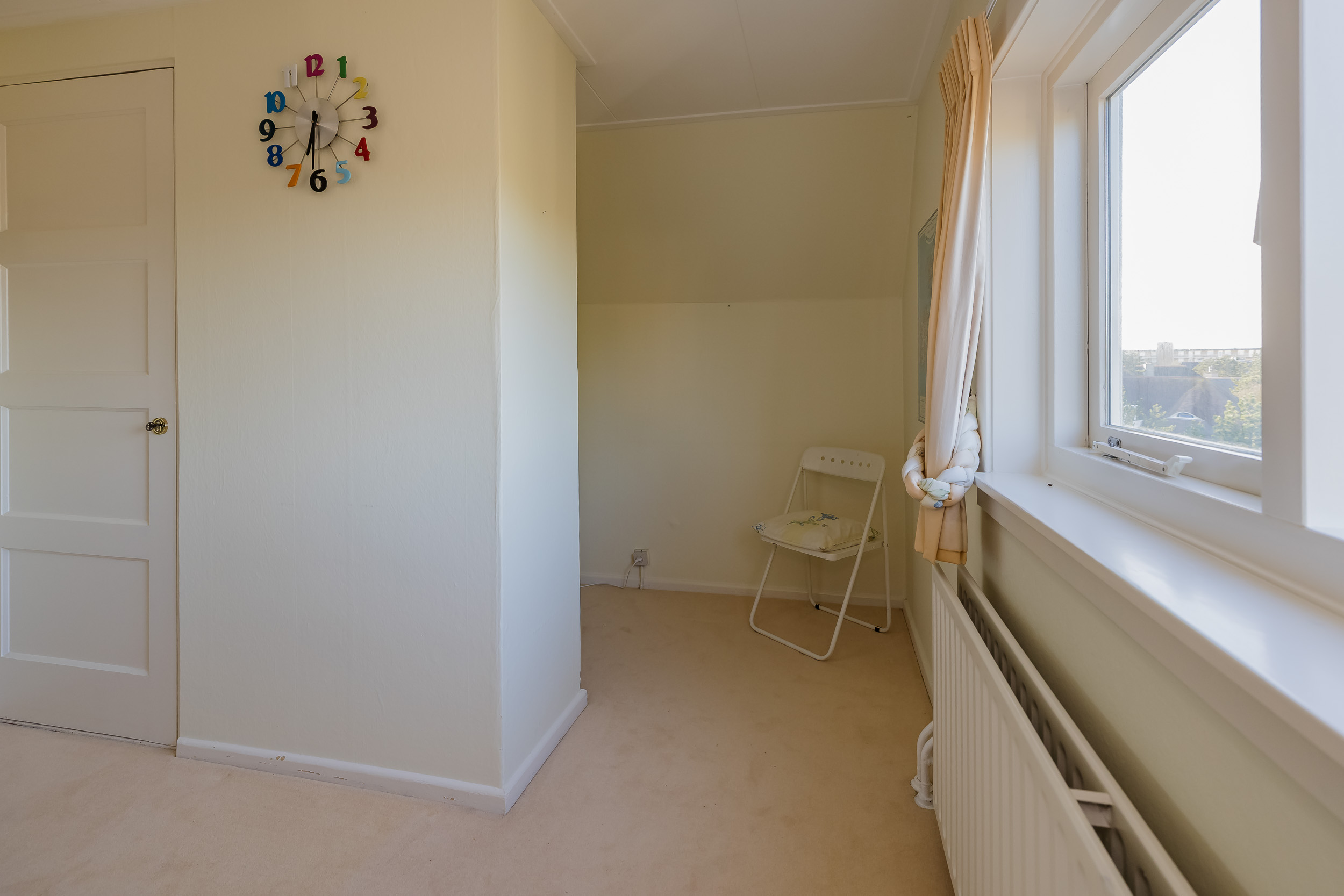 The staircase leads to a surprisingly spacious floor with a large landing/multifunctional room and a fifth bedroom with its own sink and deep closet. You will also find a darkroom here.
