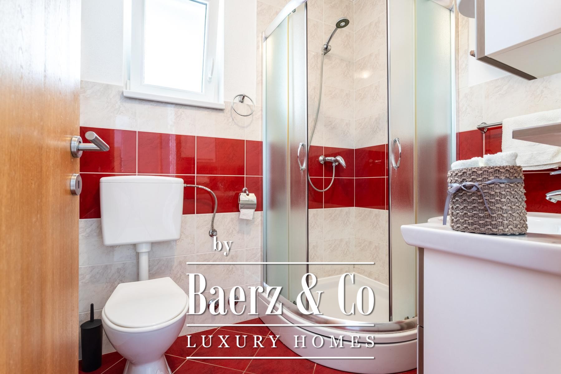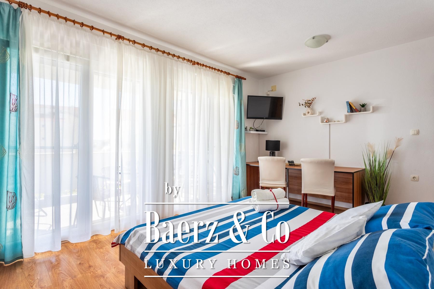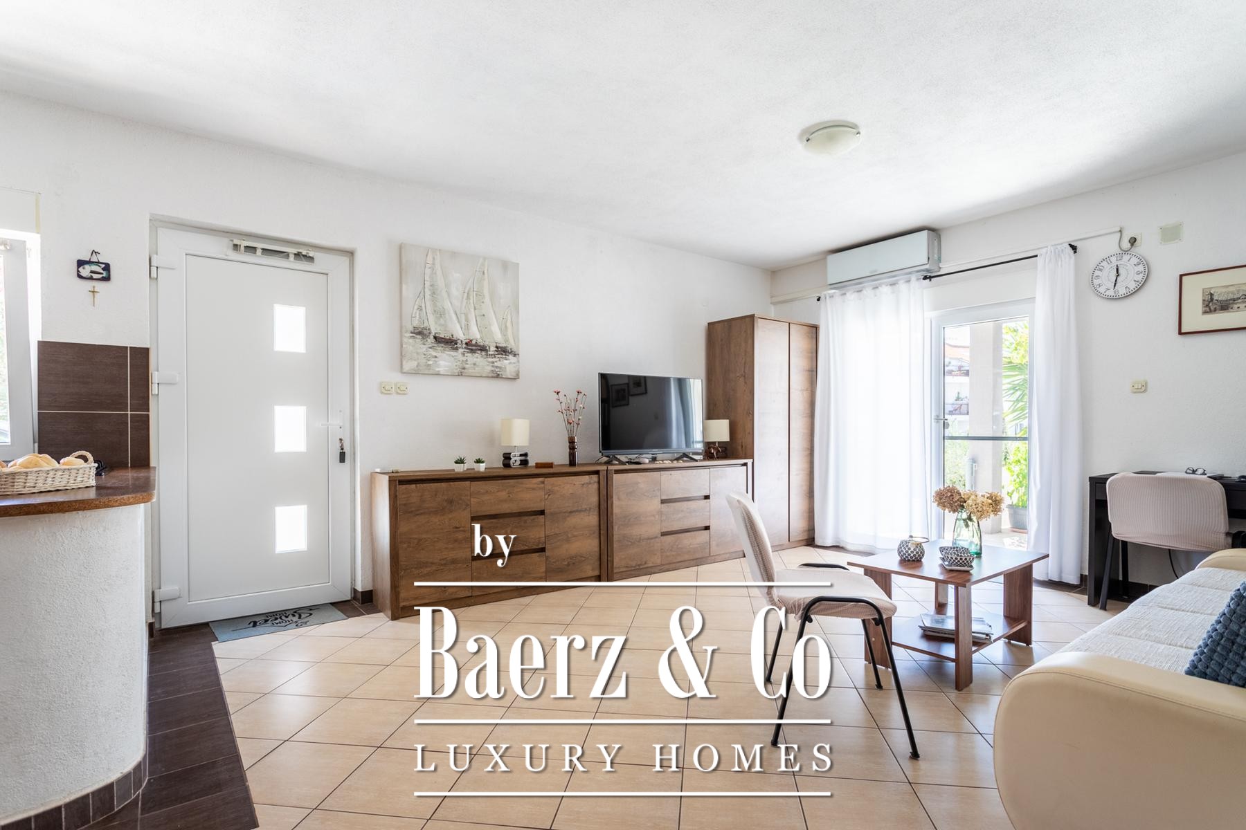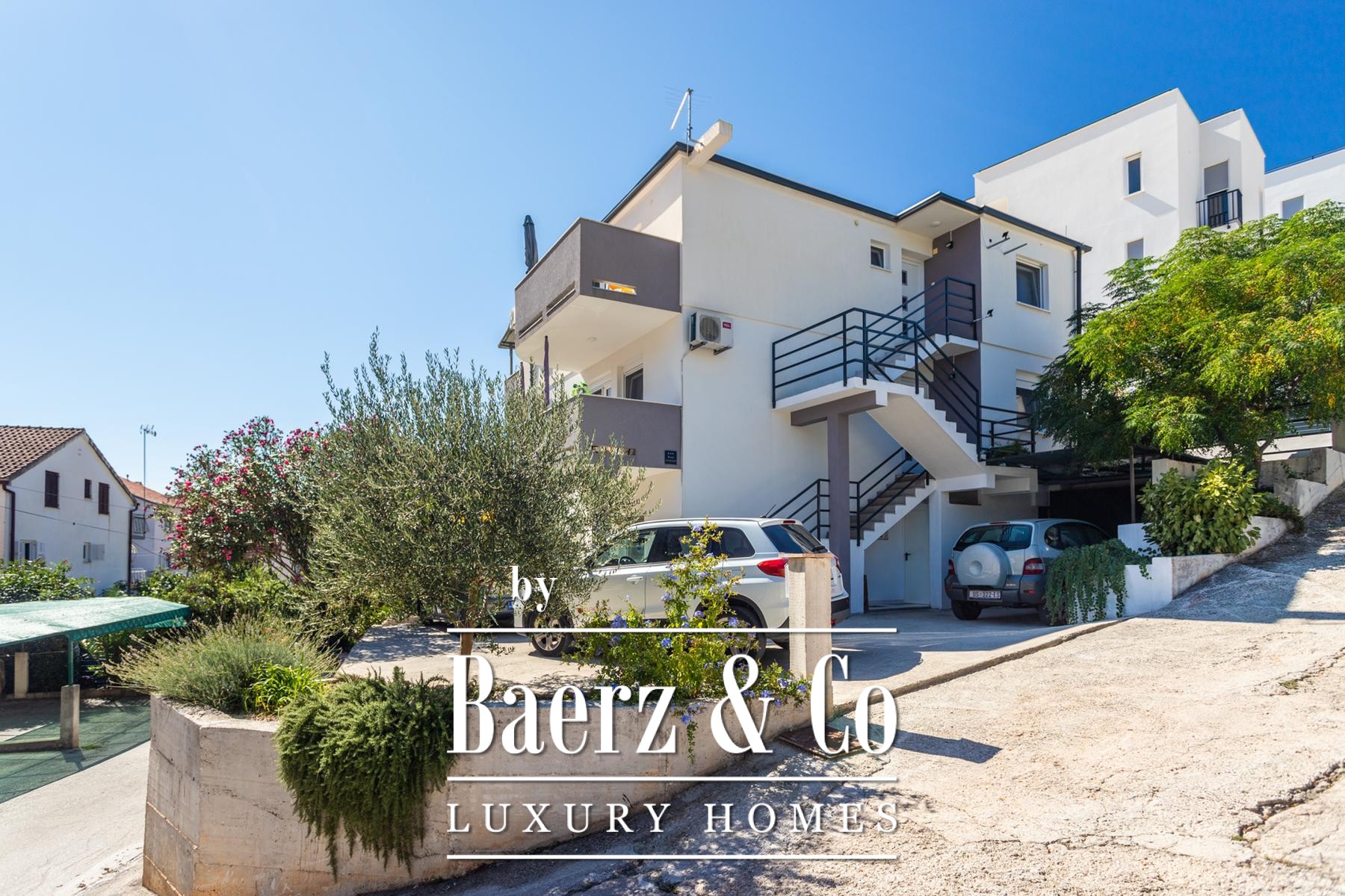 Townhouse Okrug sits on a 420 m² plot, only 80 metres from the sea, presenting a refined balance of privacy and proximity to the Adriatic. This property offers 300 m² of living space divided across four self-contained apartments, each thoughtfully arranged for clarity of function and comfort.