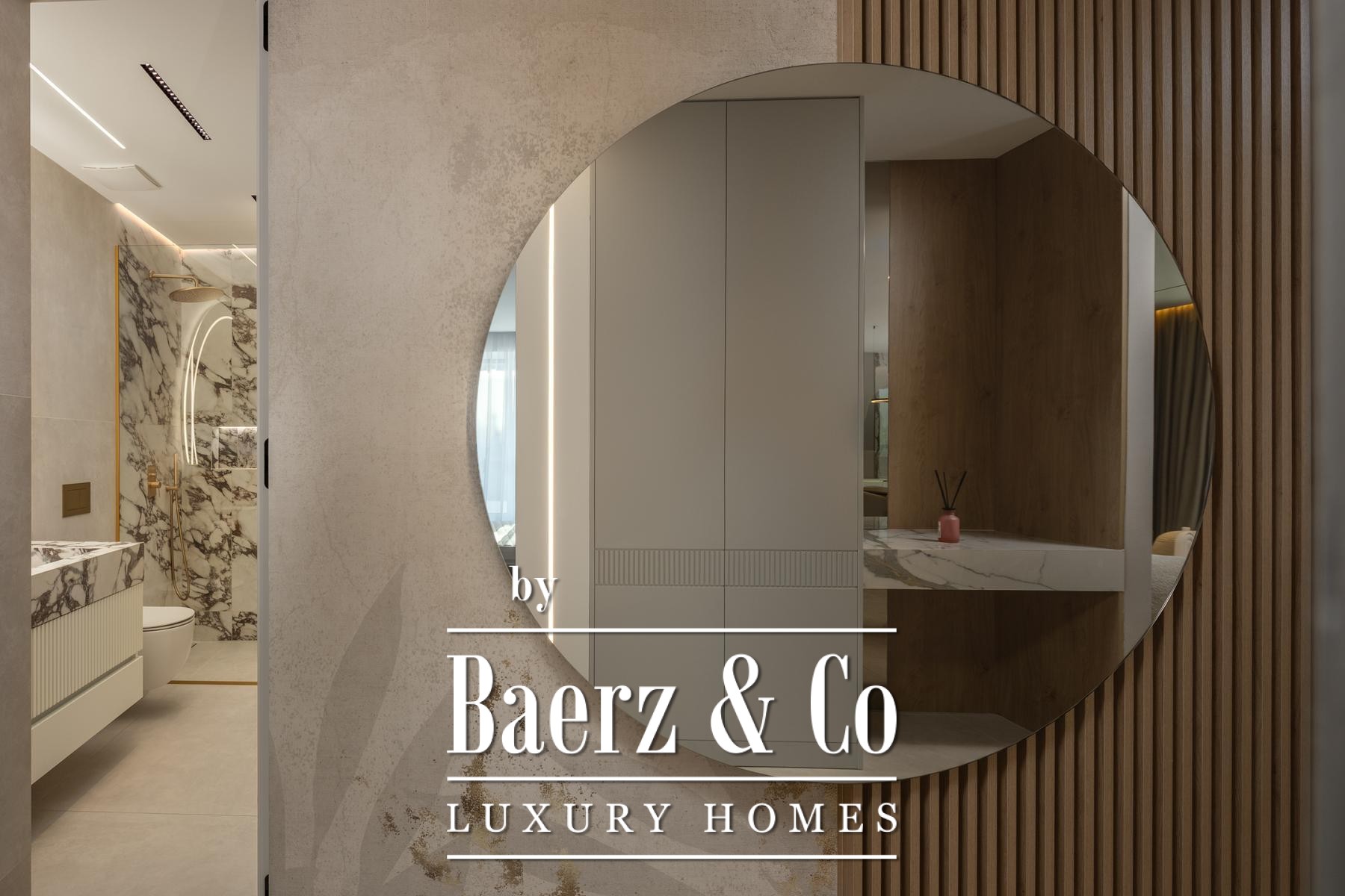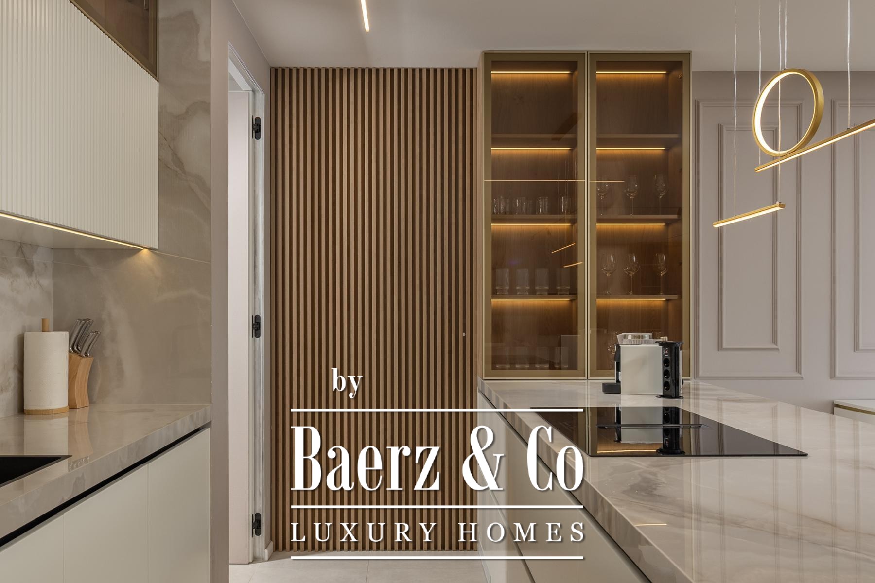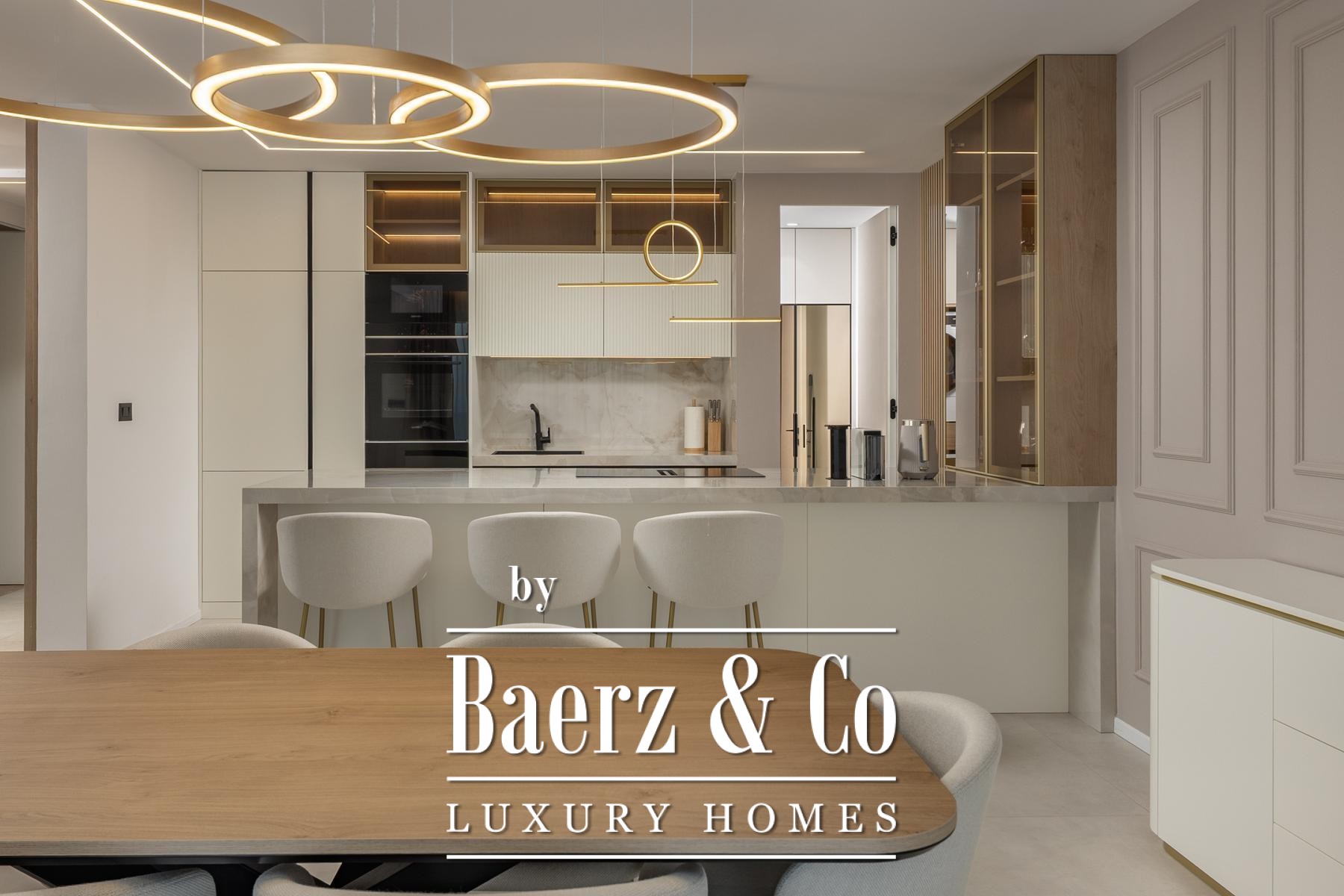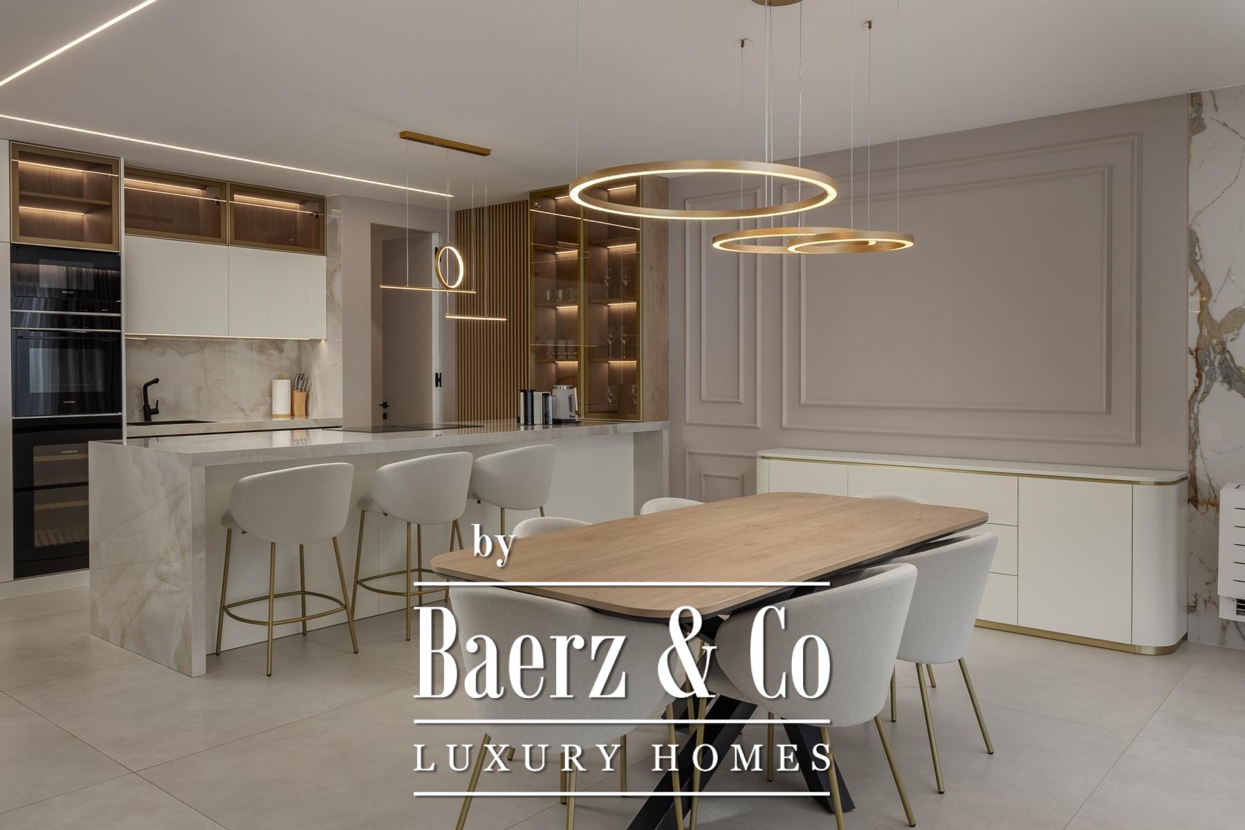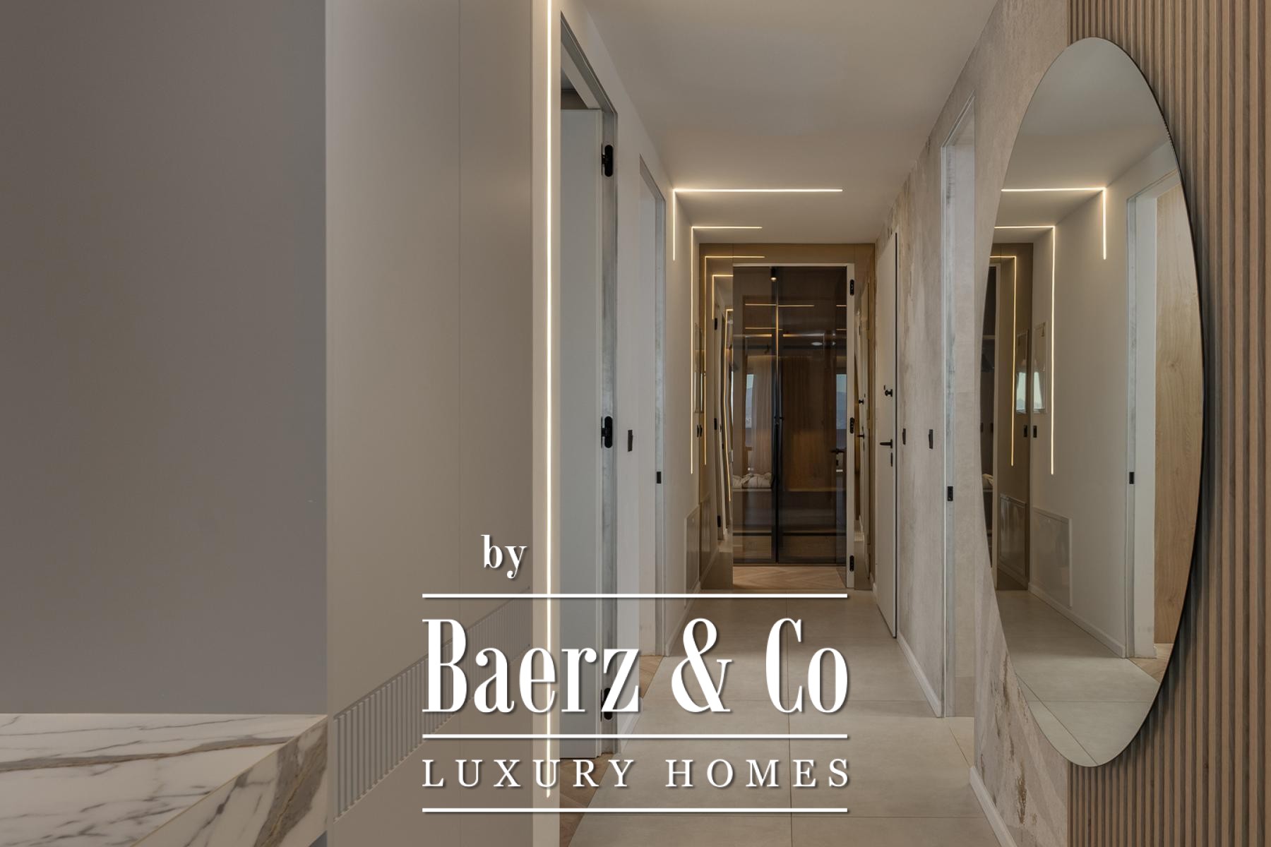 Modern materials and discreet detailing set the tone throughout, supported by a garage, two dedicated parking spaces, and additional storage to lend practical ease. The apartment is situated in a new building, providing contemporary infrastructure while inviting a sense of timelessness through curated furnishings and harmonious spaces.