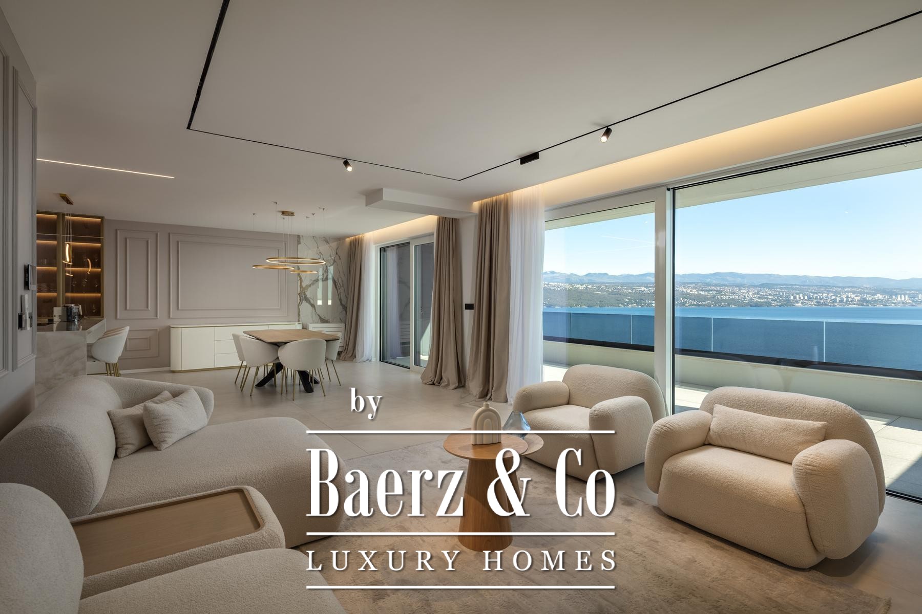 Apartment Opatija is a refined coastal residence set within 142 m², designed for those who seek clarity of space and an elevated Mediterranean perspective. This apartment unfolds across three bedrooms and three bathrooms, a generous open-plan kitchen, dining, and living area that leads to a terrace overlooking the Kvarner Gulf. The orientation offers luminous interiors, with abundant natural light filtering through large windows that frame the Adriatic and the gentle rhythm of passing ships.