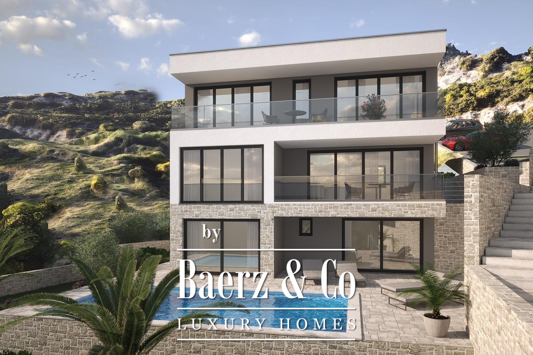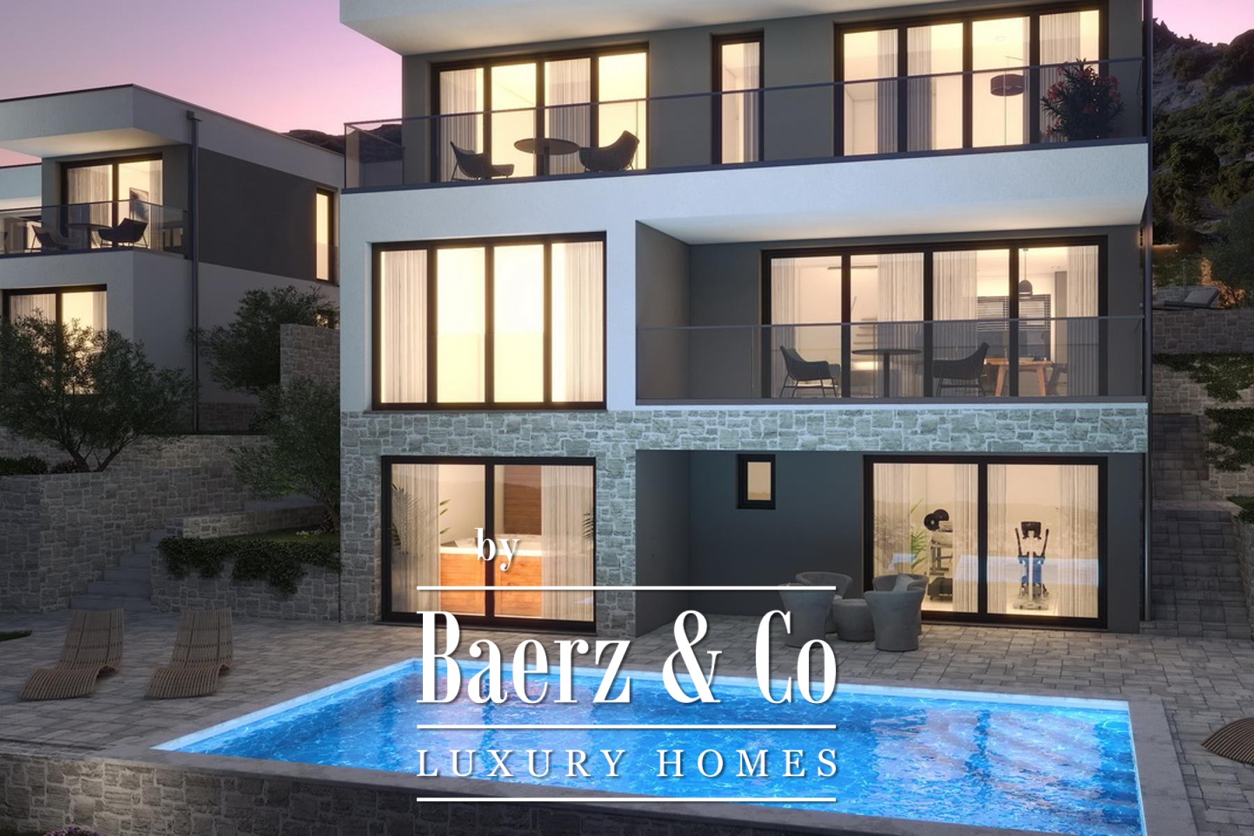 Outside, a private heated pool, Dalmatian stone grill, and a secluded landscaped garden with Mediterranean flora create an atmosphere of discretion. The villa integrates a full intelligent system controlled by mobile devices, reflecting a connected and effortless lifestyle. Scheduled for completion at the end of 2025, this luxury villa for sale in Orebić is a poised contemporary address for those who value privacy and panoramic sea views.