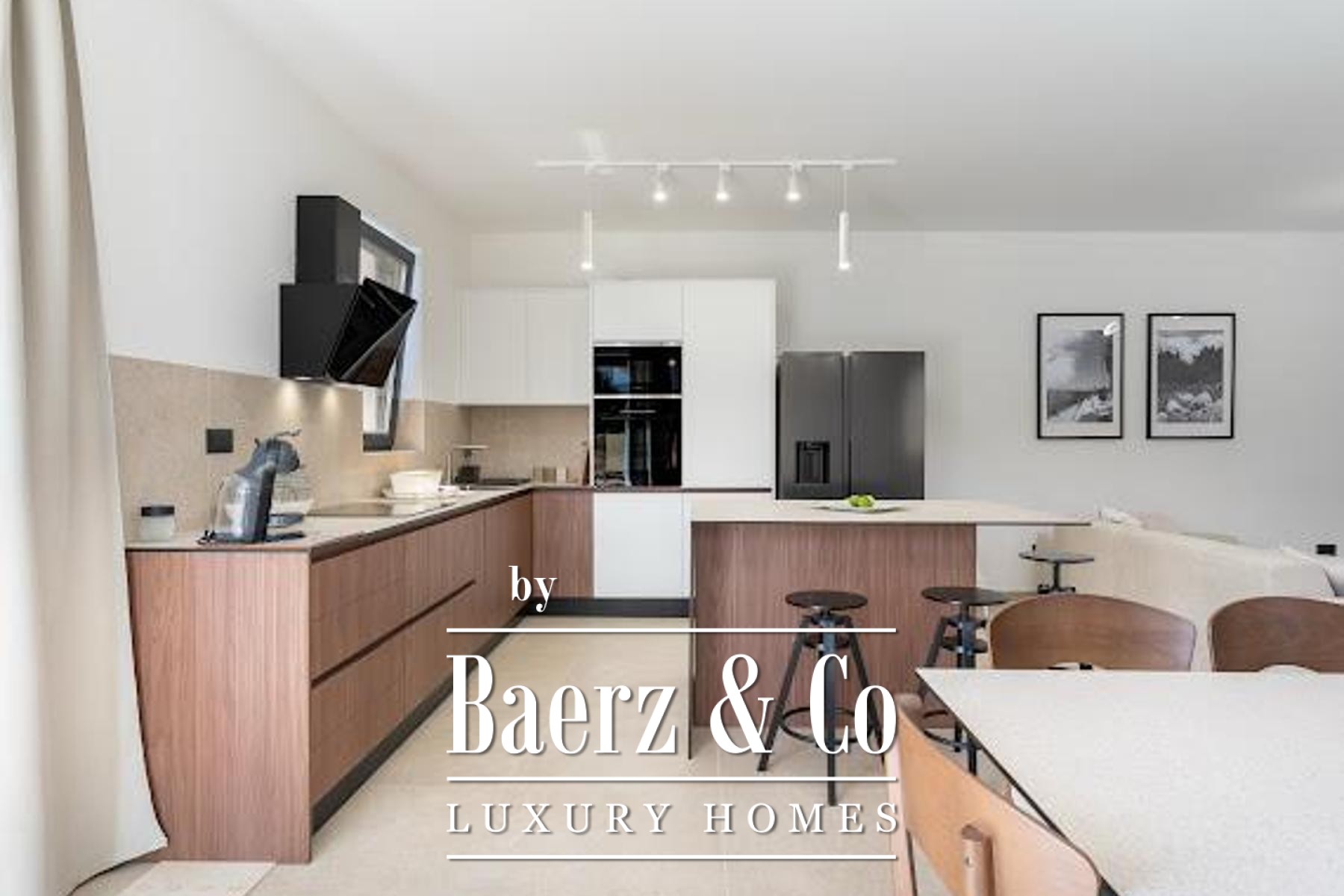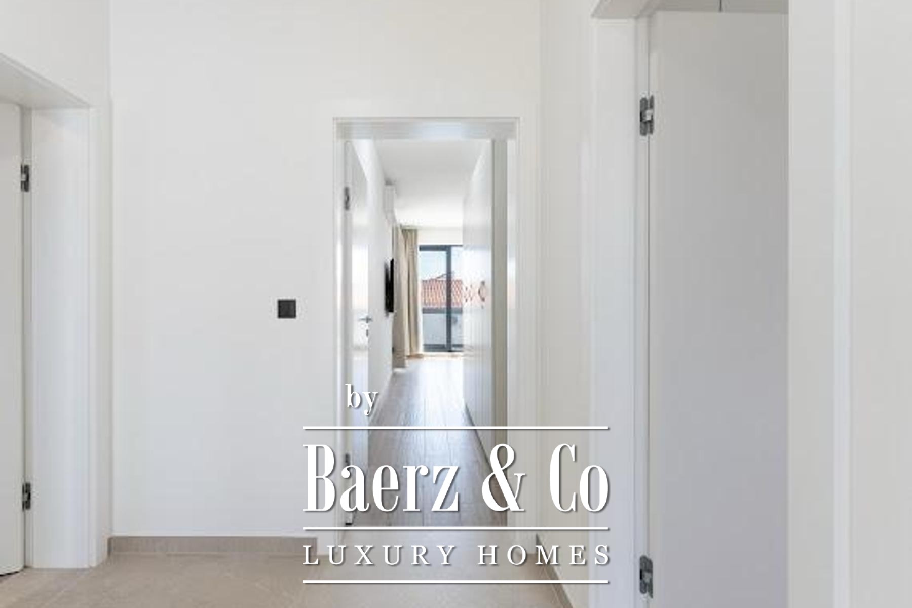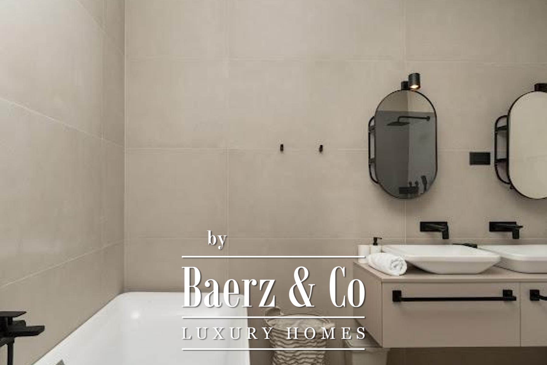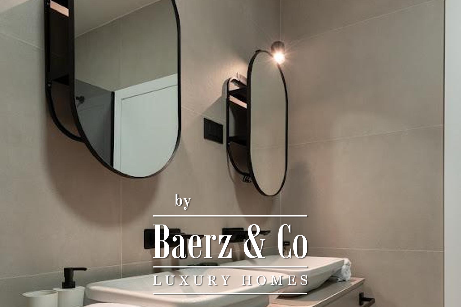 The ground floor’s open-concept kitchen, dining, and living spaces flow seamlessly, complemented by a bedroom with en-suite bath, a guest toilet, laundry, and storage. Ascending the internal stairs, the upper floor reveals an entrance hall, three additional bedrooms each with bathrooms, and a spacious terrace that invites outdoor living.