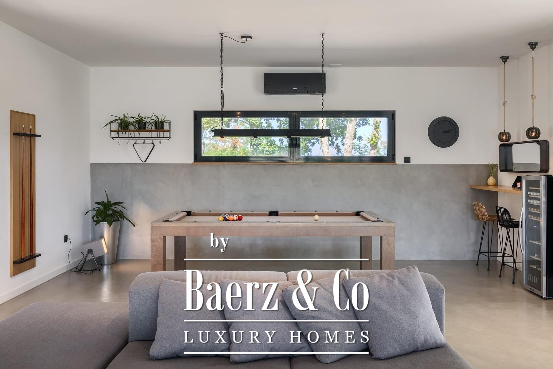 Each residence is characterized by precise detailing, quality materials, and uninterrupted light through generous glass surfaces. The primary villa includes 300 m² of refined living space, six bedrooms, and a 56 m² private heated saltwater pool on a 4,500 m² plot. The second villa, with 350 m² and six bedrooms, features an 18-metre heated infinity saltwater pool, private wellness with sauna and jacuzzi, and a billiard and cigar lounge. Manicured gardens, outdoor dining spaces, and dedicated children’s areas reinforce the sense of sanctuary, creating fluid options for generational living or exclusive rental.