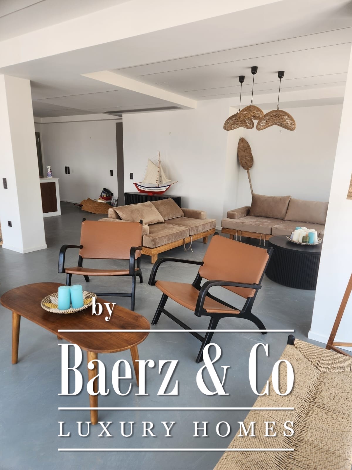 The villa features four master bedrooms, each designed for comfort and seclusion. Interiors are fully furnished with handmade Indonesian pieces, lending the space warmth and character, complemented by high end finishes and a contemporary aesthetic. Every detail, from the equipped kitchen to the carefully curated furnishings, is turnkey and ready for immediate enjoyment.