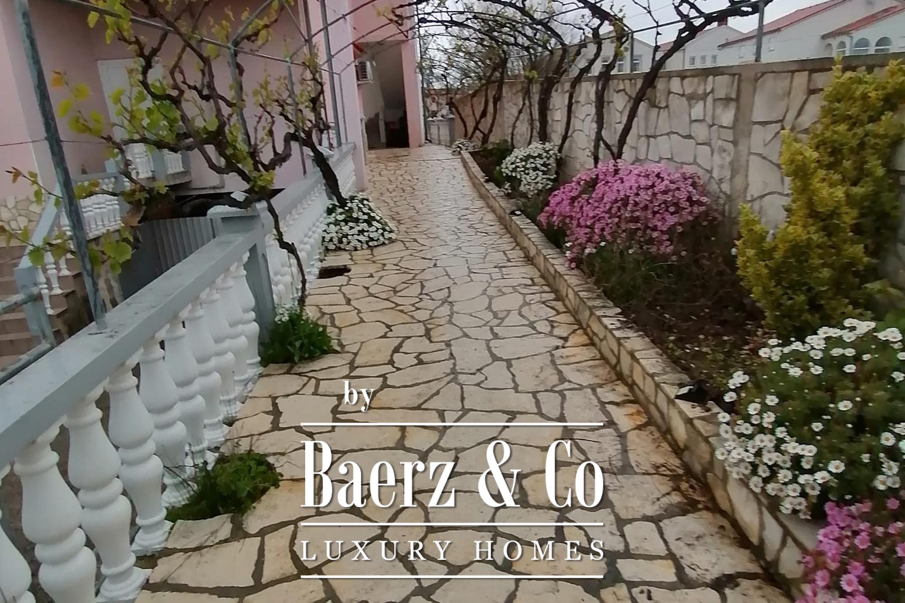 The attic space remains unfinished, leaving room for tailored expansion; a basement and storage area increase practicality and support for tourism or business. Outdoors, the property benefits from 12 parking spaces, a landscaped courtyard, and two garages, an uncommon asset in this high-traffic area. Set within a 711 m² plot in Rab, this house invites discerning investors or buyers seeking a multi-purpose asset with enduring appeal and convenient Adriatic access.