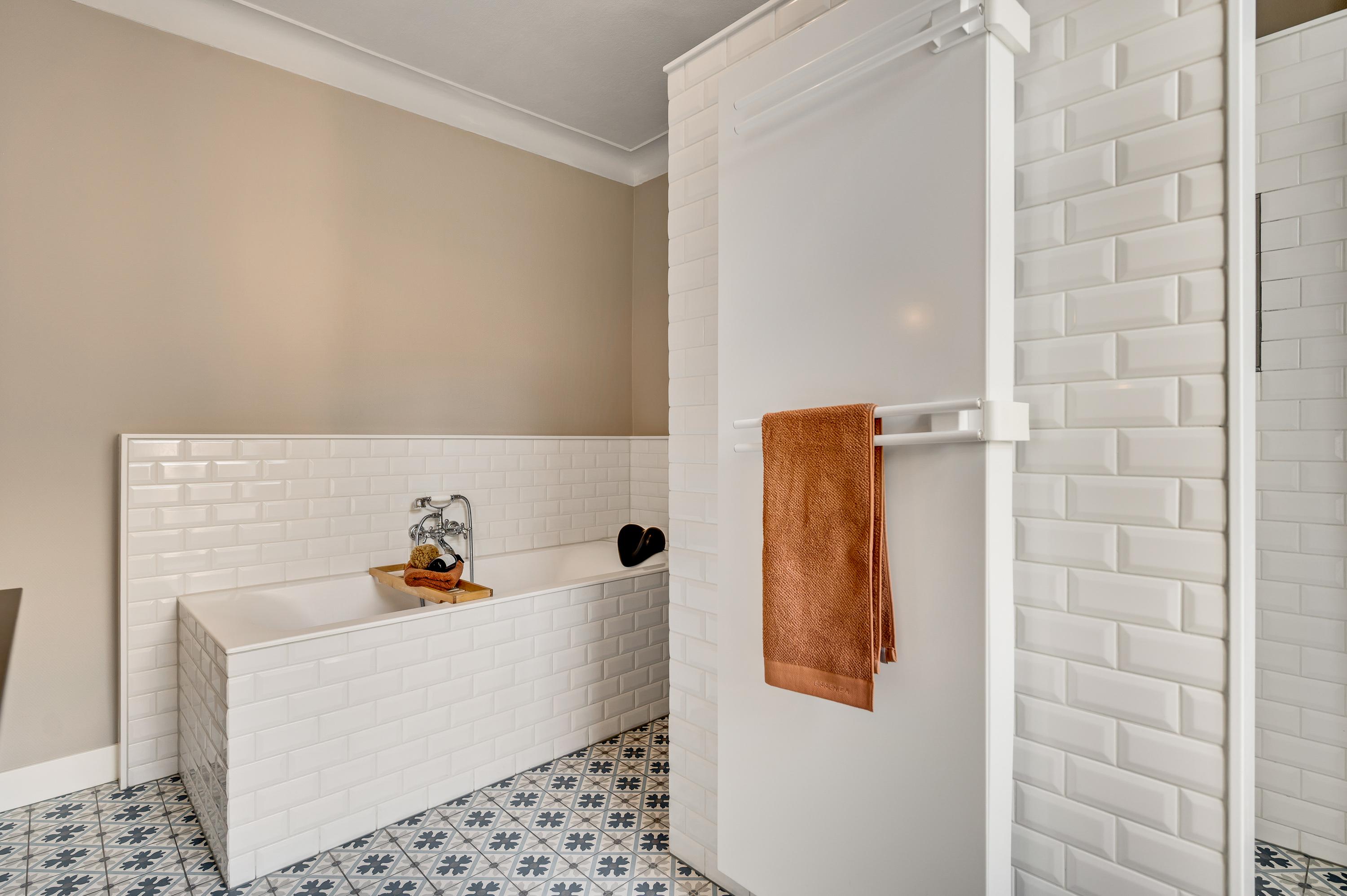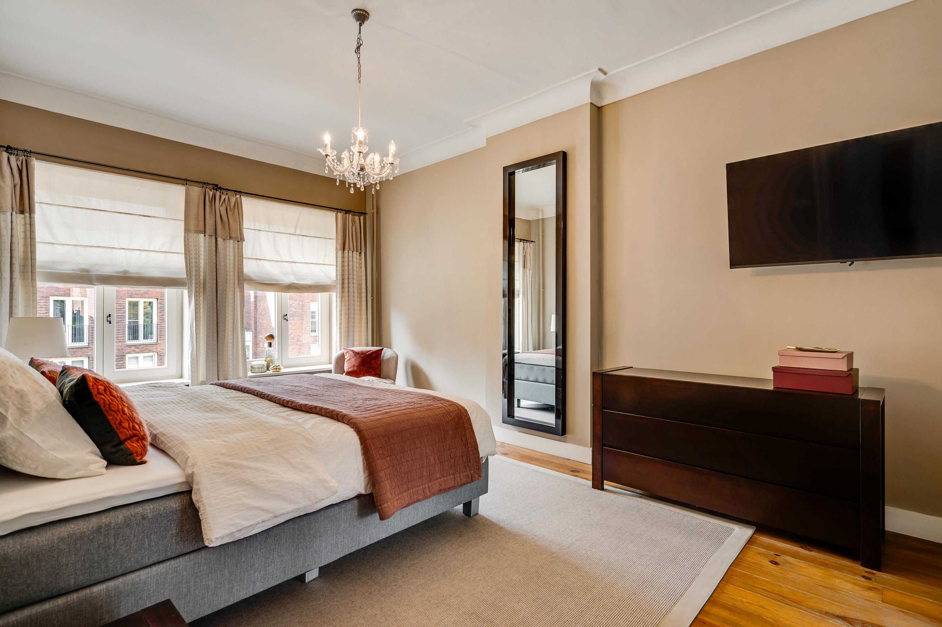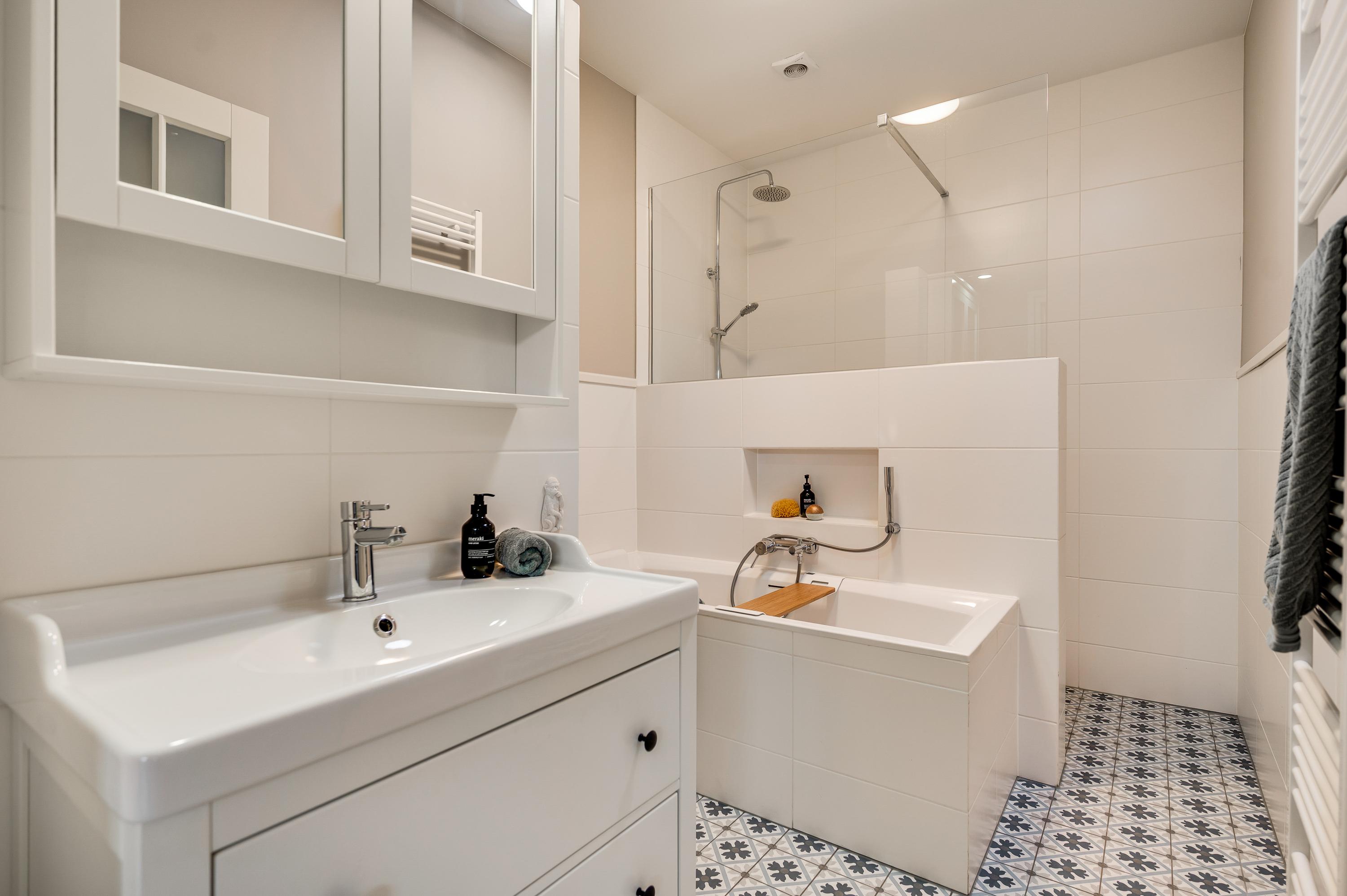 Here, too, the bedrooms are generously sized, and there's a luxurious bathroom with a bathtub, shower, and double sink, as well as a separate toilet.
