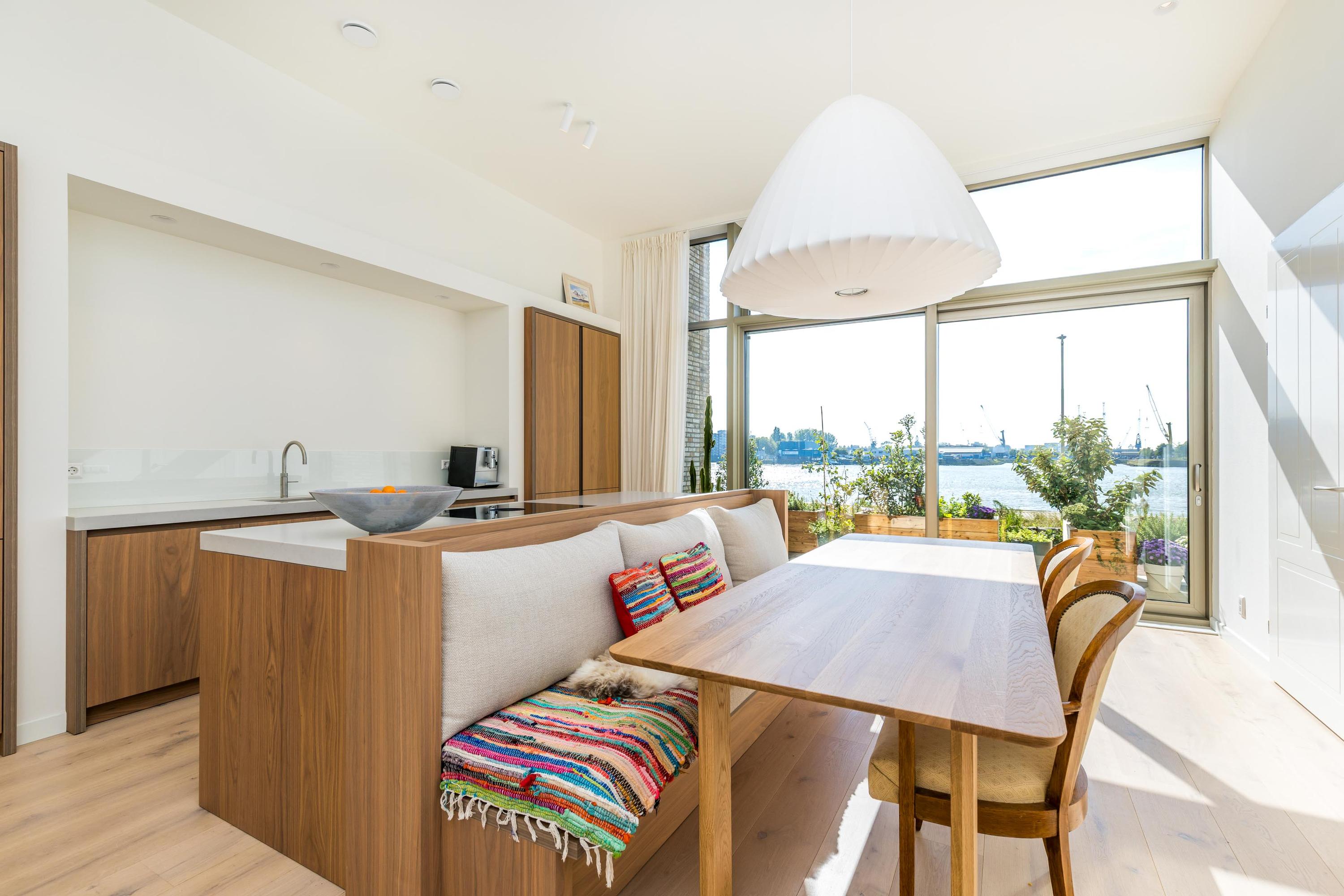 You enter the apartment via your own veranda/sun terrace on the ground floor (facing the sunny south and overlooking the Maas River). Here you'll find the luxurious kitchen/diner, fully equipped and designed for enjoyment, whether you're hosting an intimate dinner or preparing a lavish meal for friends and family. Directly adjacent is a spacious indoor storage room, ideal for extra storage.